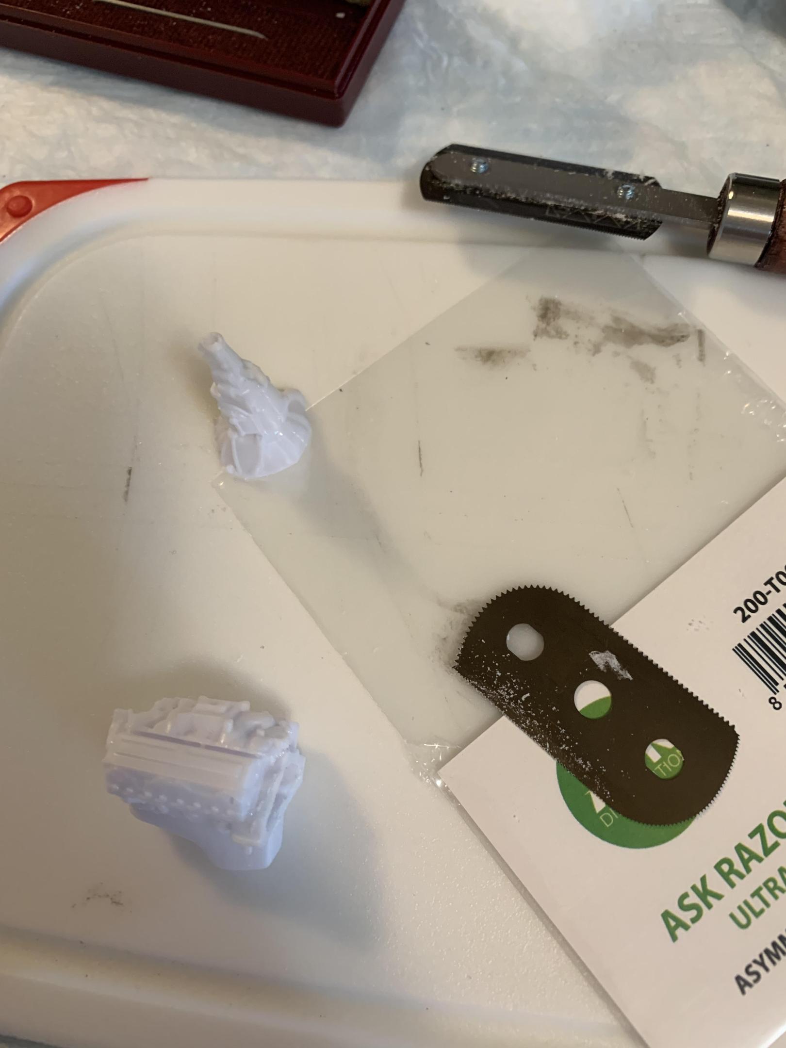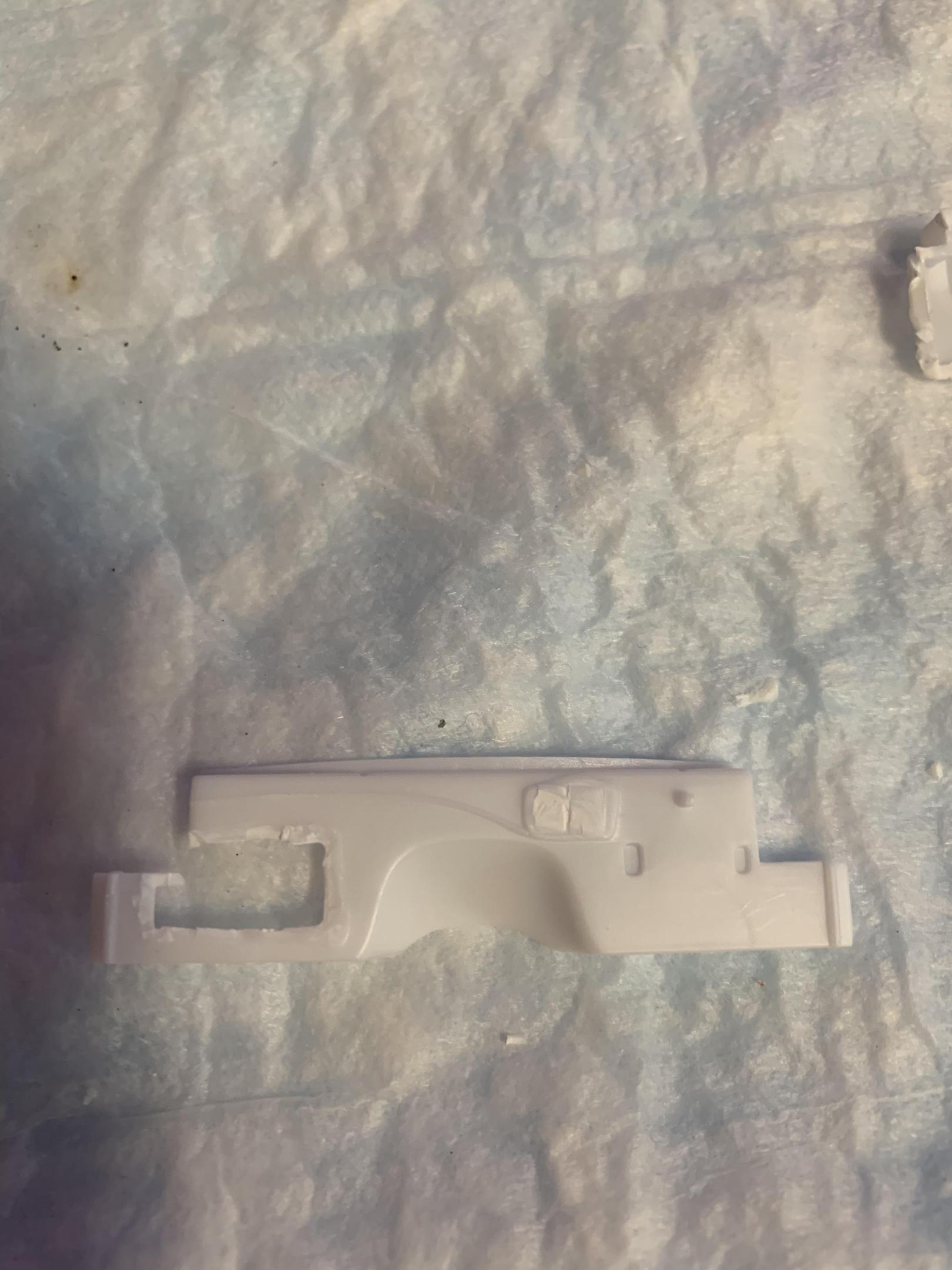 Some hood work. Too wide and tapered inconsistent so couldn’t sand flat. Also removed tang on bottom with my nippers and built up tapers at the rear with 1/16” square stock. -