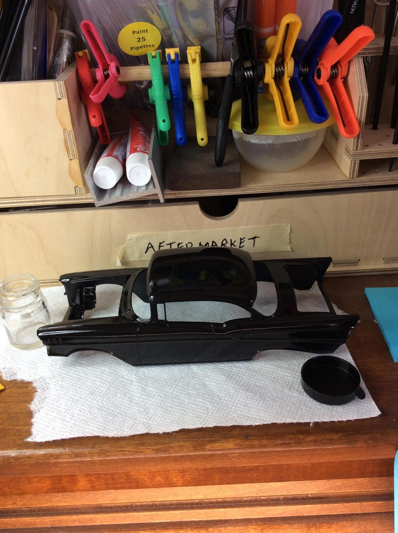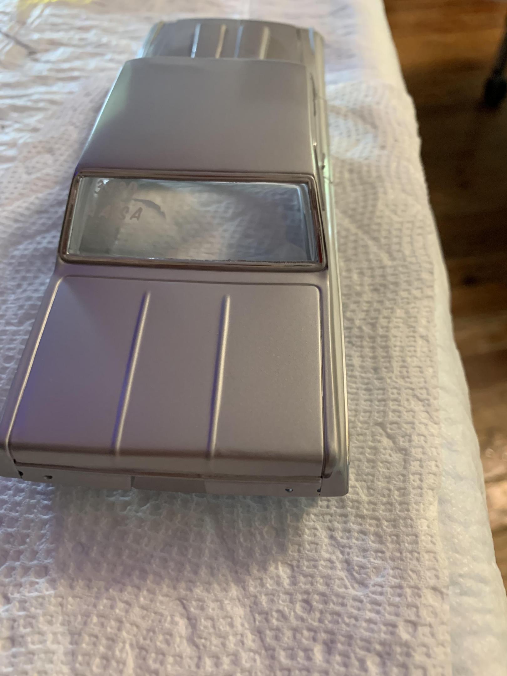 9. During my forensic examination and racking my brain for what might have went wrong with the color coat not adhering properly, I can only come up with 1 possible explanation: I may have used alcohol wipes to clean the body before painting the color coat and that softened the paint (only in spots where there was a thicker coat of paint such as builds up around the trim and high points). This kept the color coat from adhering properly in certain spots. Anyway, it is soaking in 91% alcohol and I will try again, but this time using detergent to clean with.