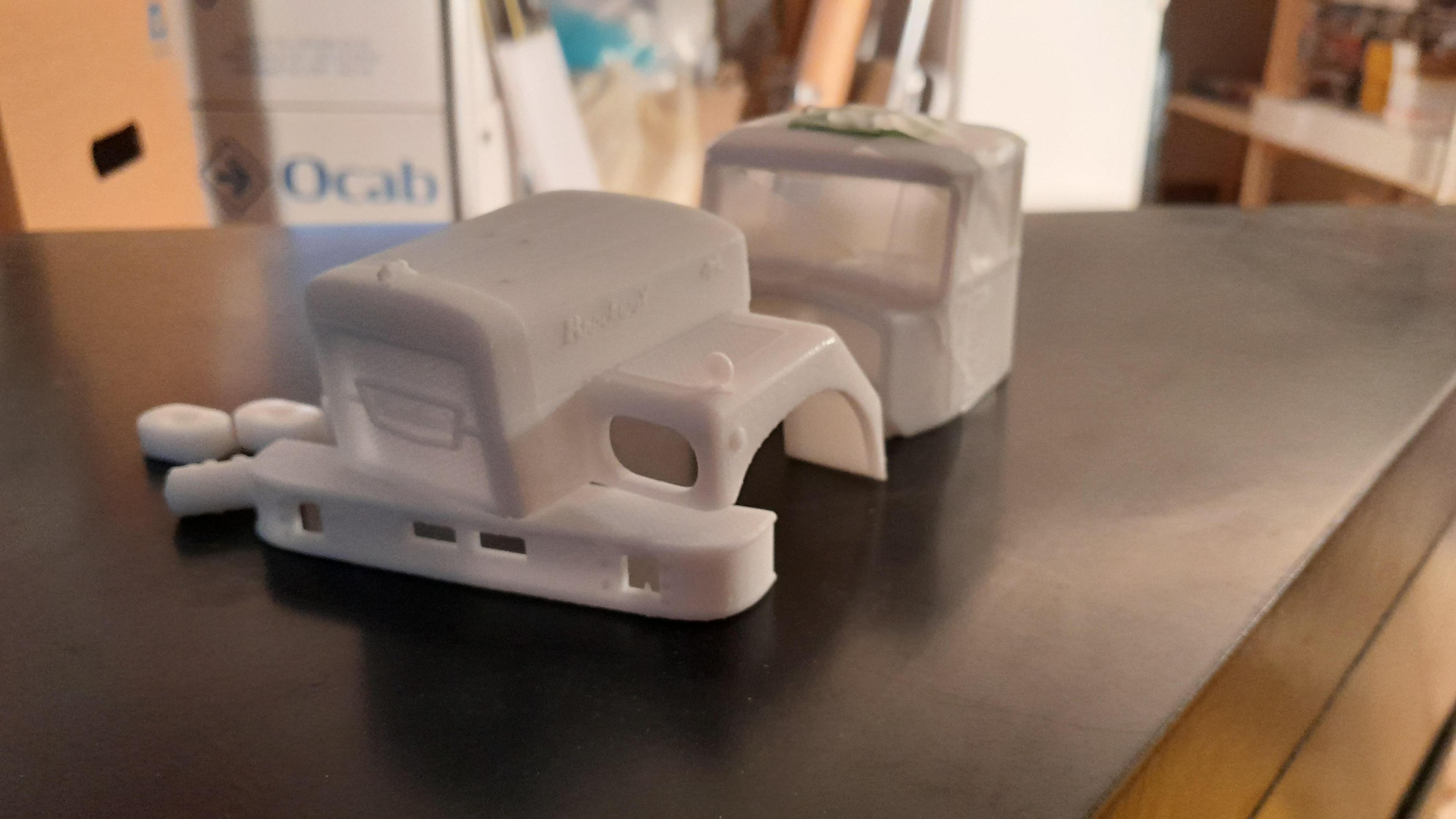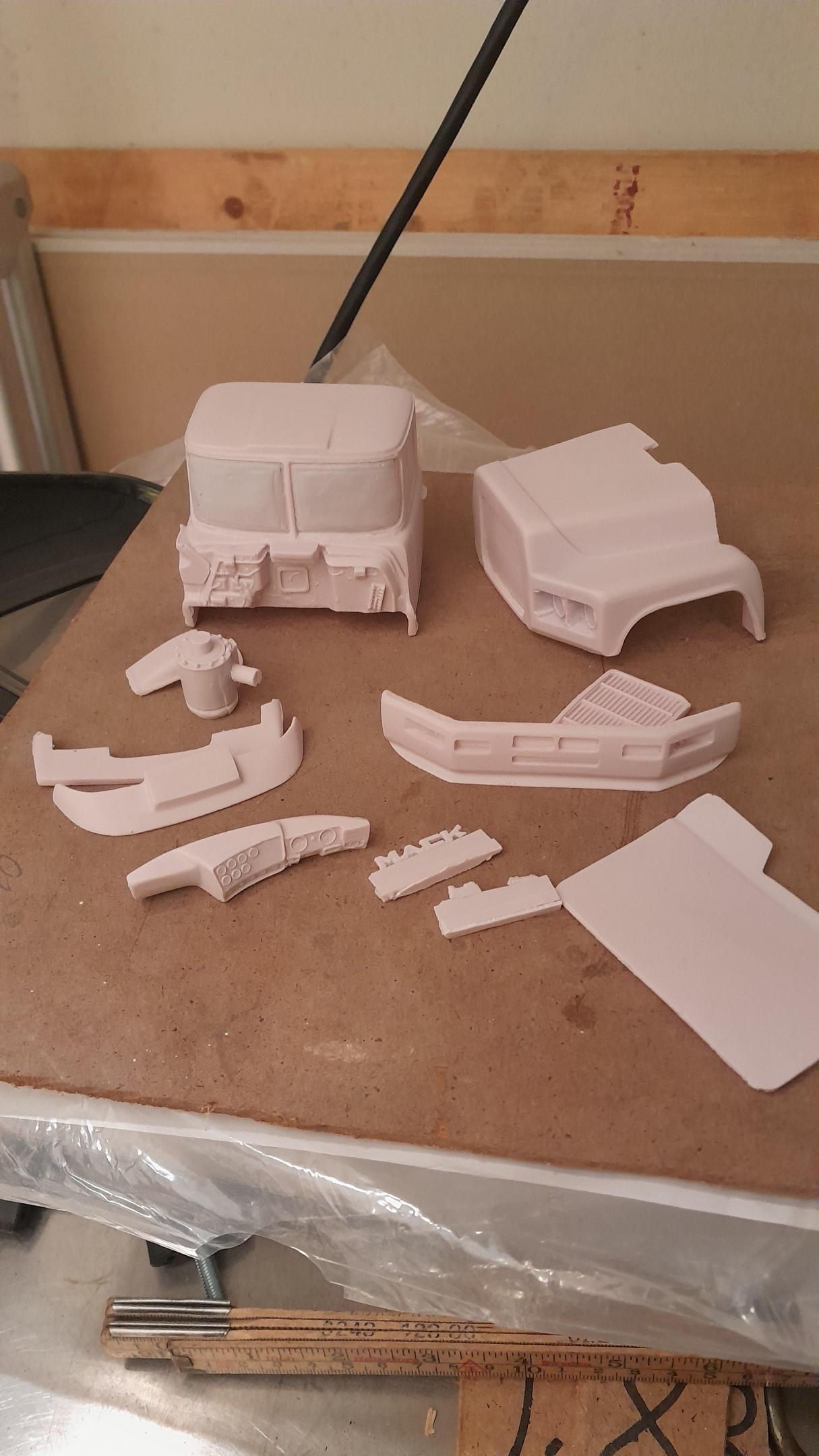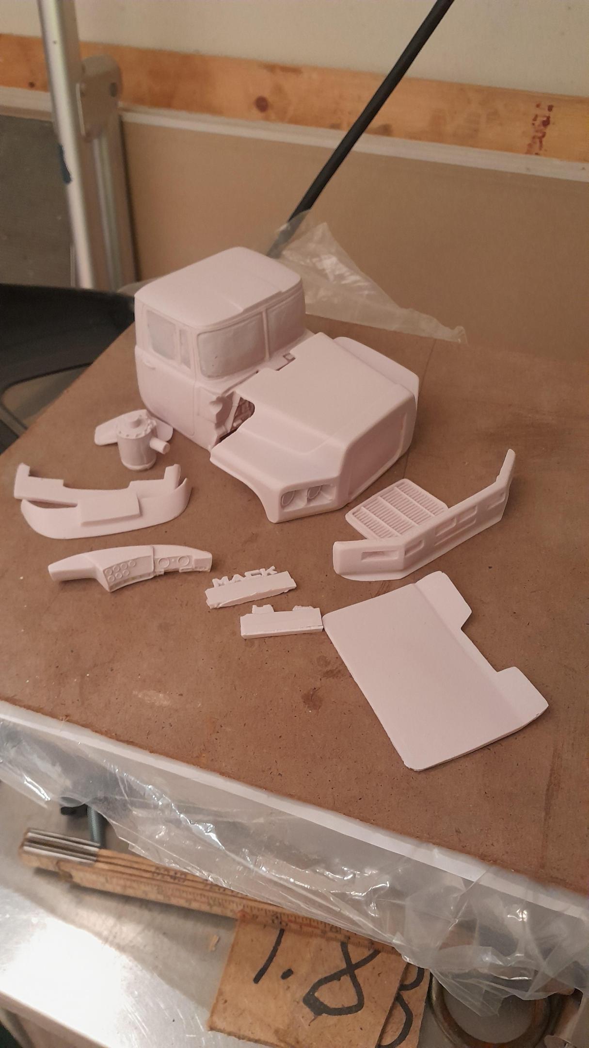 Got a Mack valueliner 6cylinder conversion kit, already have the v8 valueliner conversion from auslowe so now i can build both verisons of the valueliner. The difference i can see in them is that the v8 has a sloping hood and complete wheelarches as the 6cyl version has a more straight hood a bit shorter and seperate wheelarches for the right side where the aircleaner are, the 6cylinder conversion also comes with 2 different sunvisors.