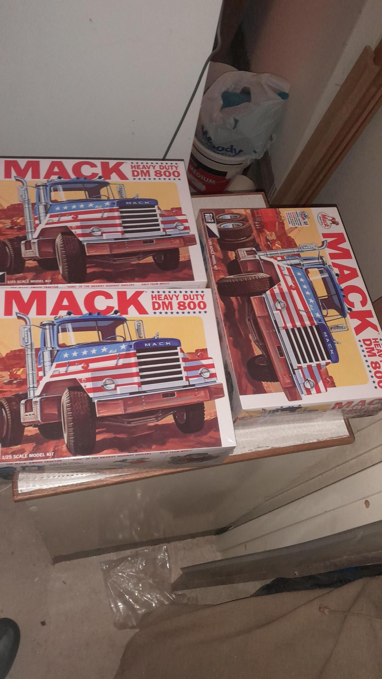 Got these 3 Mack DM800 to use for some transkits i have. 1 is going to be a Mack B81 V8, 1 is going to be a Brockway 351 and the last will be a "flintstone" Mack (dm800 without offset cab) Also found out that the DM800 kit is no longer in production so for those that have been thinking about buying one, now is the time to do it.