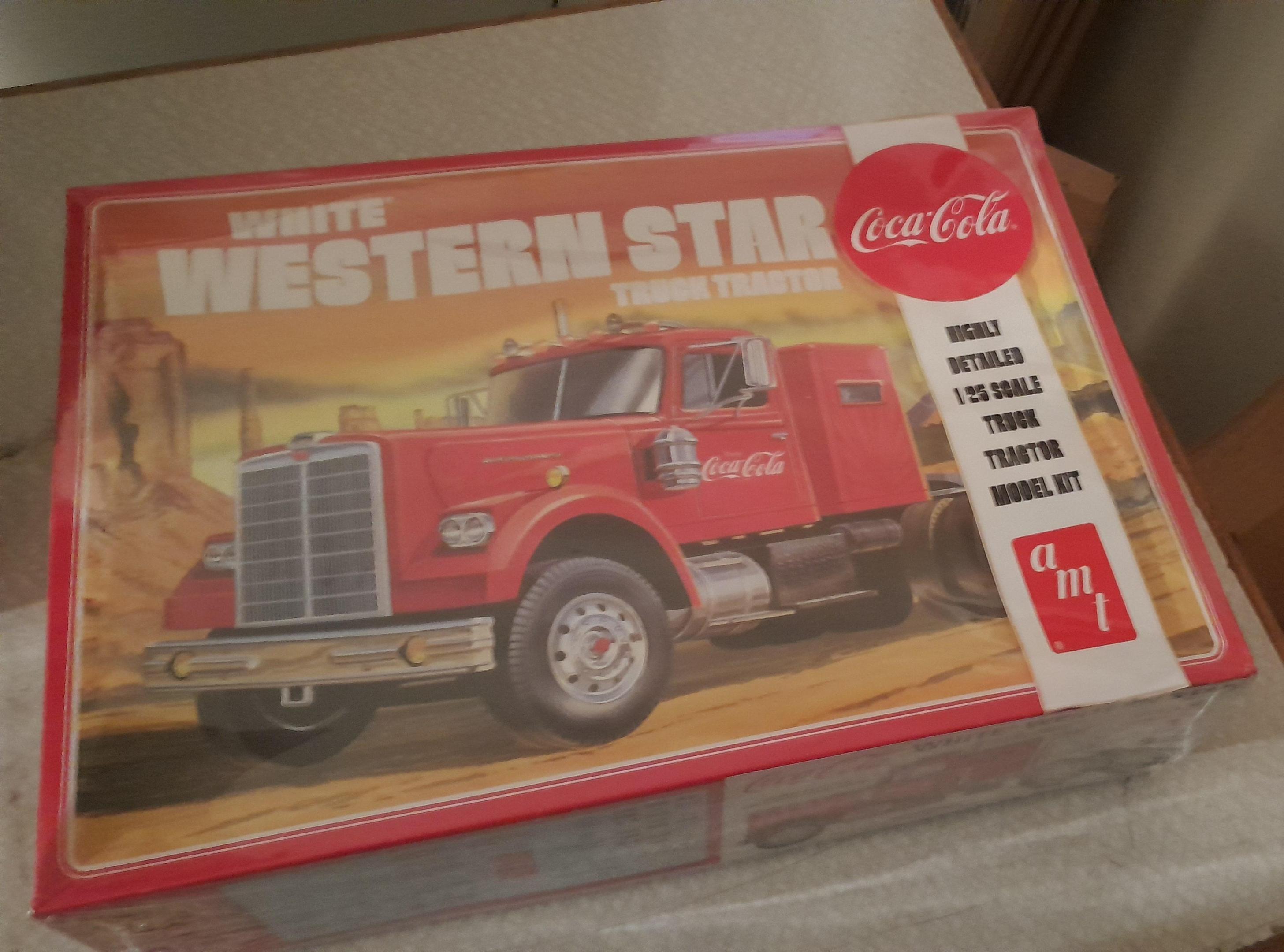 Got these 2. The Scania i thought of building it out of the box but as I left the shop i bought it from a real one passed by that had dual rear axles so I am going to add one axle to it so it is more like a scandinavian truck. The western star is probably going to end up donating its chassie and driveline to end up as a Dodge Bighorn, I already have the non Coca-Cola version of the Western star in my stash