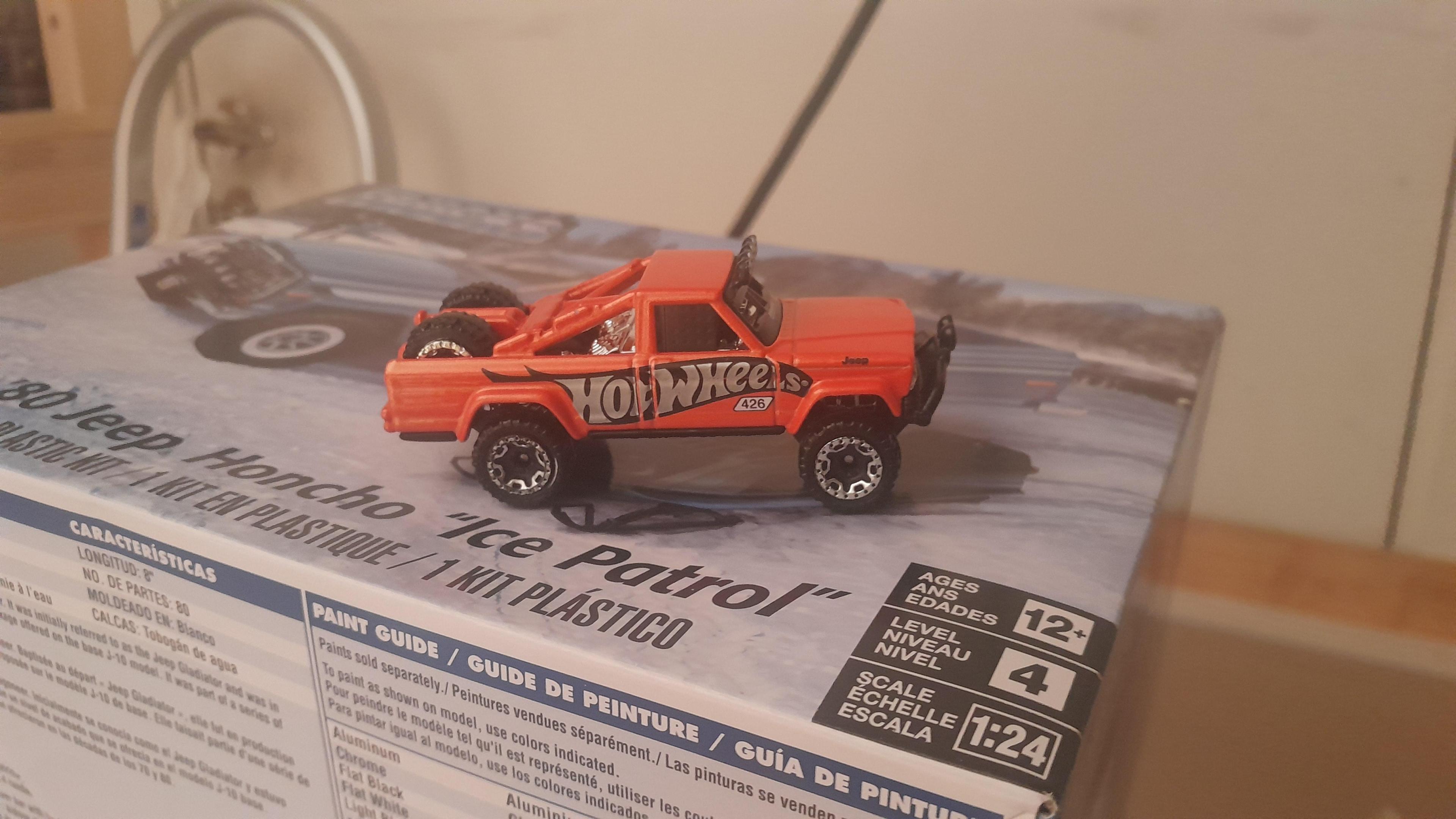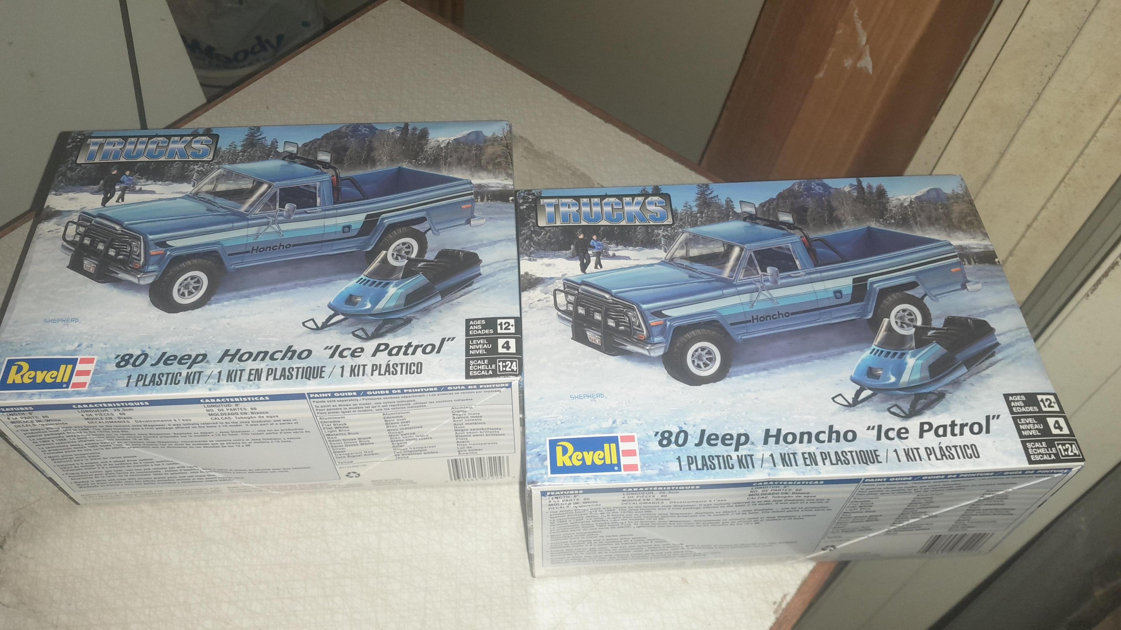 Got these 2 jeep j10 kits. One is going to be box stock and the other is going to be a racetruck inspired by my sons hot wheel jeep j10. The snowmobile i think I am going to let him build in a few years from now.