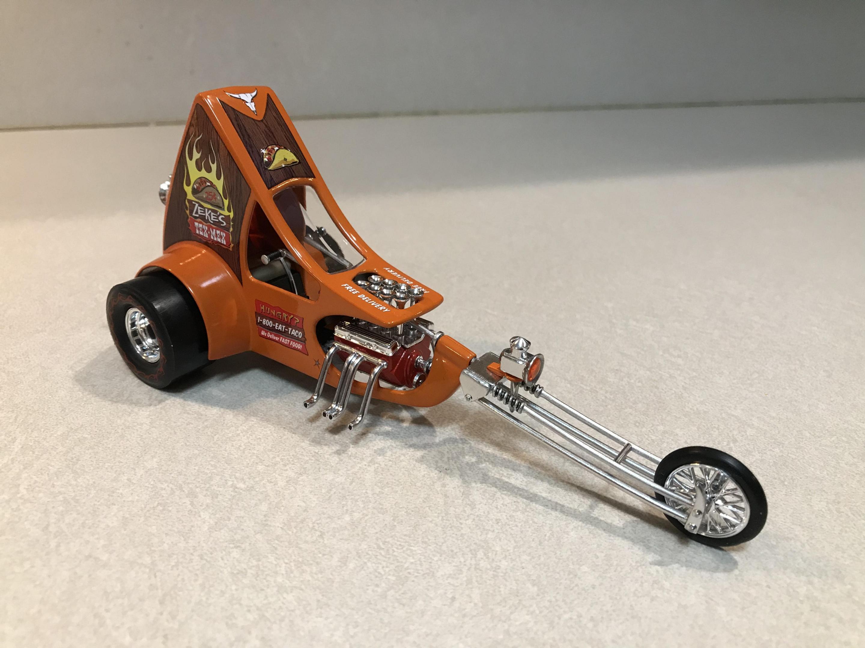 Finished up my MPC Taco Trike. Final assembly went pretty well, and I’m happy with it! Just a fun, quick build that was something wacky and different. If you get in a rut with your usual subject matter builds, throw something like this in the mix for a fun break! There’s a few WIP pics in that section. As always, thanks for looking!