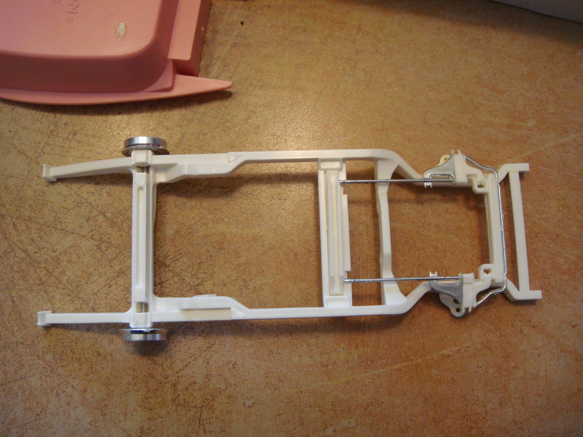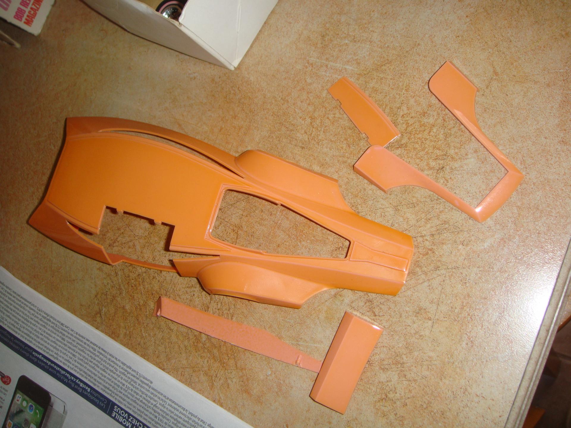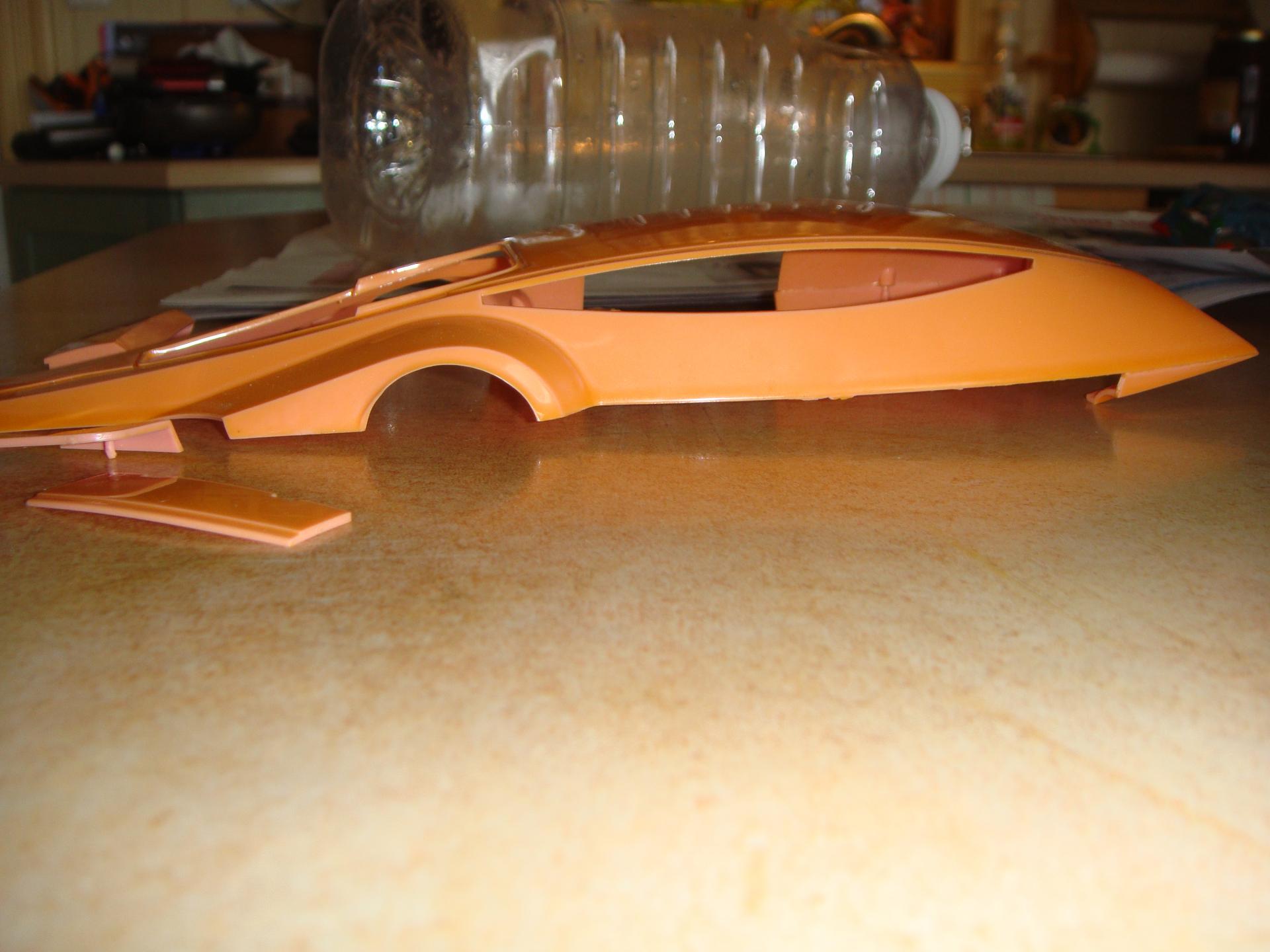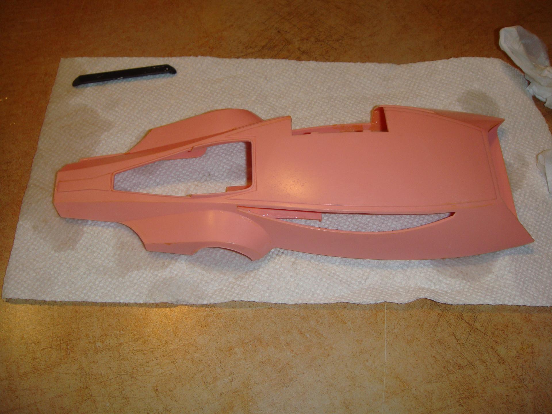 5. My first post as a new member....I dug out my old collection that seems to have suffered from being (over 45 years) stored away....The Pink Panther was sprayed with clear which has yellowed. It looks peach colored. I began by stripping that off and was happy to see her all pink again!! The frame seems lacking in detail but after some research it is pretty close to the Oldsmobile Toronado which it is based on. What you see is basically it with the motor in front.. I have rebuilt the engine, have to work on the drivetrain but will add exhausts and the shock absorbers for the rear suspension to add some detail...and a stearing wheel..yup it didn't come with one... and I realise an anomoly in the plastic (show later)..I don't think I will spray clear it again maybe read up on how to polish the plastic... I am actually working on about a half dozen resurrections and I had forgotten how much pleasure it was to build...