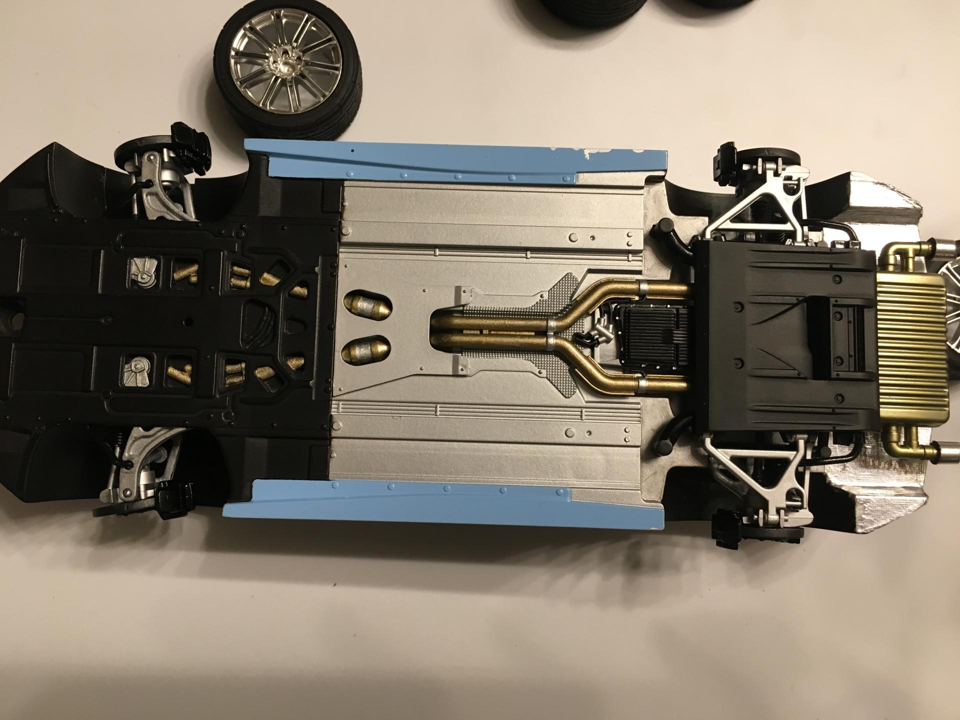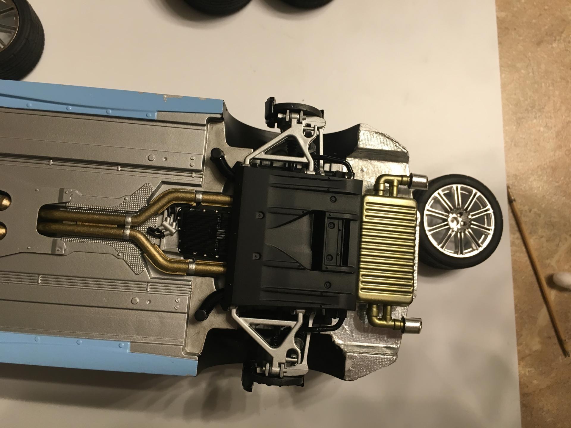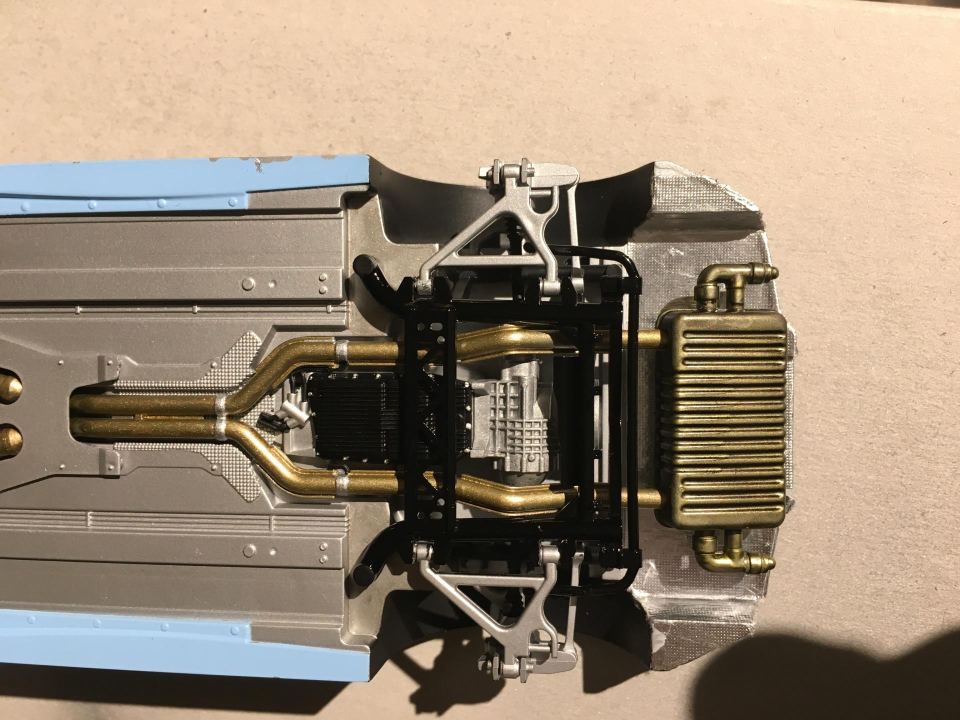 Here is the chassis, it needs some minor touch ups, but it came together pretty well. The heat shield under the exhaust is cigarette foil saved from my smoking days.
