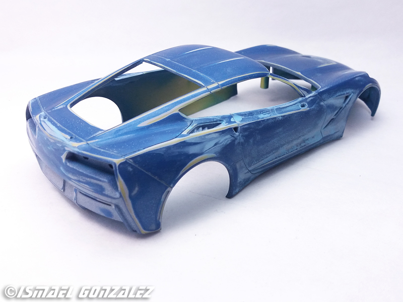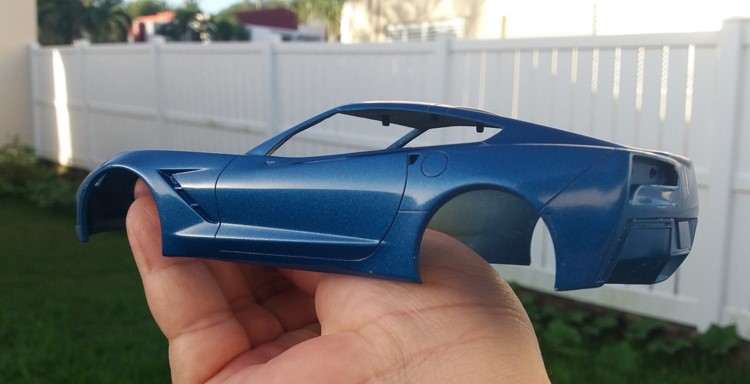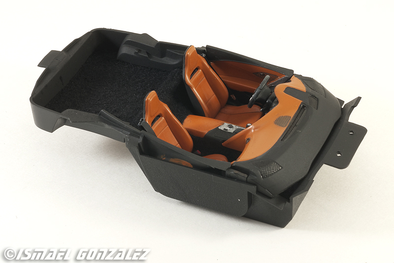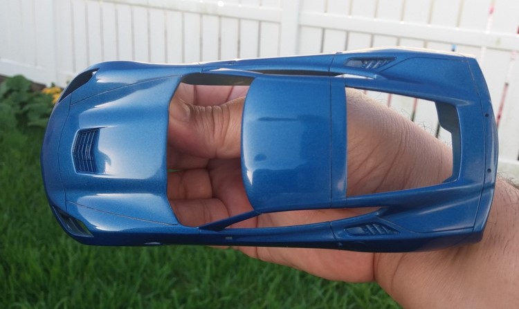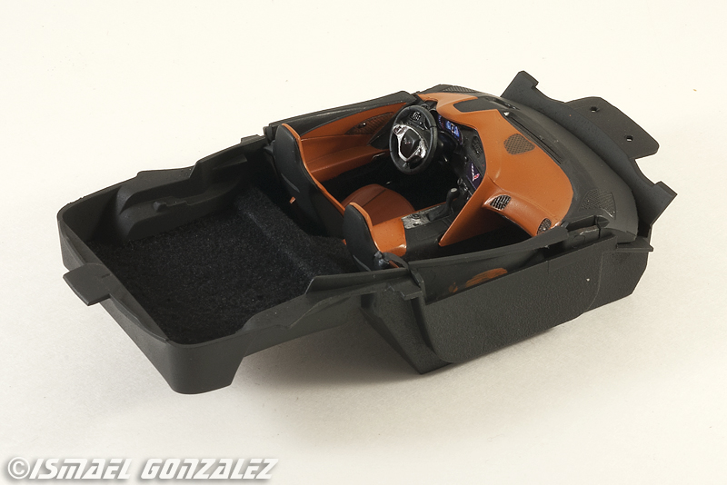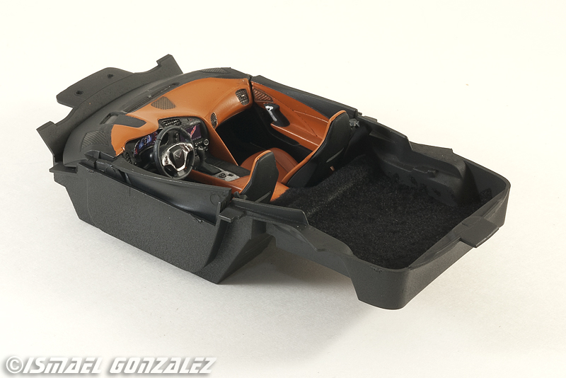 18. Hello, Still dealing with the aftermath of the hurricane. Some areas are still in "emergency" mode and the road ahead is long and steep. But I'm trying to get some sense of "normalcy" back. I still have no internet service at home. so doing this from the phone is a major PAIN. In the past few days, I've been working a bit on the snap 2014 C7 Corvette. This kit is a snapper on the cheap end of the spectrum. So there is not much to be expected. Details and molding are disappointing even for a snapper. The chassis is all one piece. Not much can be done with the holes for the screws. I detail paint it mostly with craft acrylics. Moving into the interior, the details and engraving are even more disappointing. I found an acrylic craft paint color called "Pueblo" which resembles the C7 Kalahari option I wanted. This was my first time airbrushing acrylic craft paint and it was harder than I thought. There is a very fine line between too dry, too wet and disastrous. The instrument cluster and the screen logo were home printed in photo paper and trimmed. I really like this interior color combo. This scheme resembles a 3LT interior option (leather covered dash, door panels etc. and suede covered steering wheel which was drybrushed with gray). Still pending are the seat belts to put together the otherwise box stock interior. The tub has black flocking. Anyways, nothing extraordinary, but it feels good to be back. Thanks,