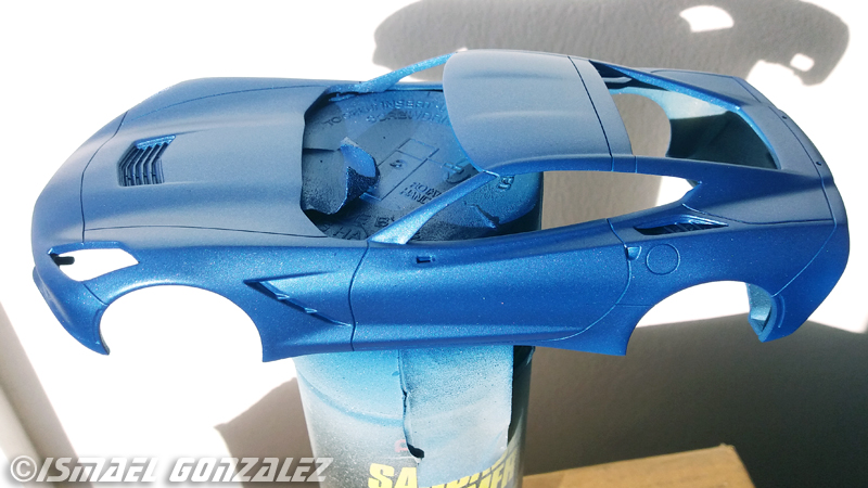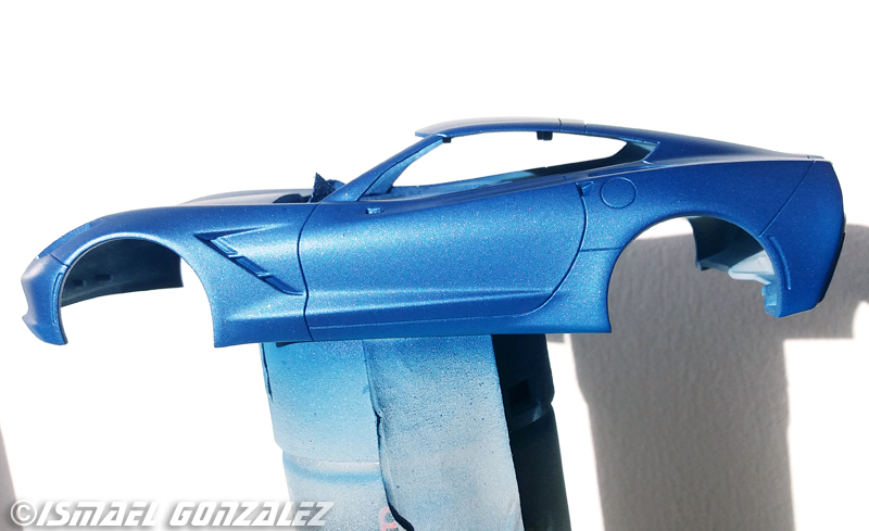 9. Hello, Laguna Blue Paint job, take two, in progress. This is after 2 light coats and one medium-wet coat. So far so good. Will let it sit for careful inspection before one final wet coat and eventual clear. Thanks,