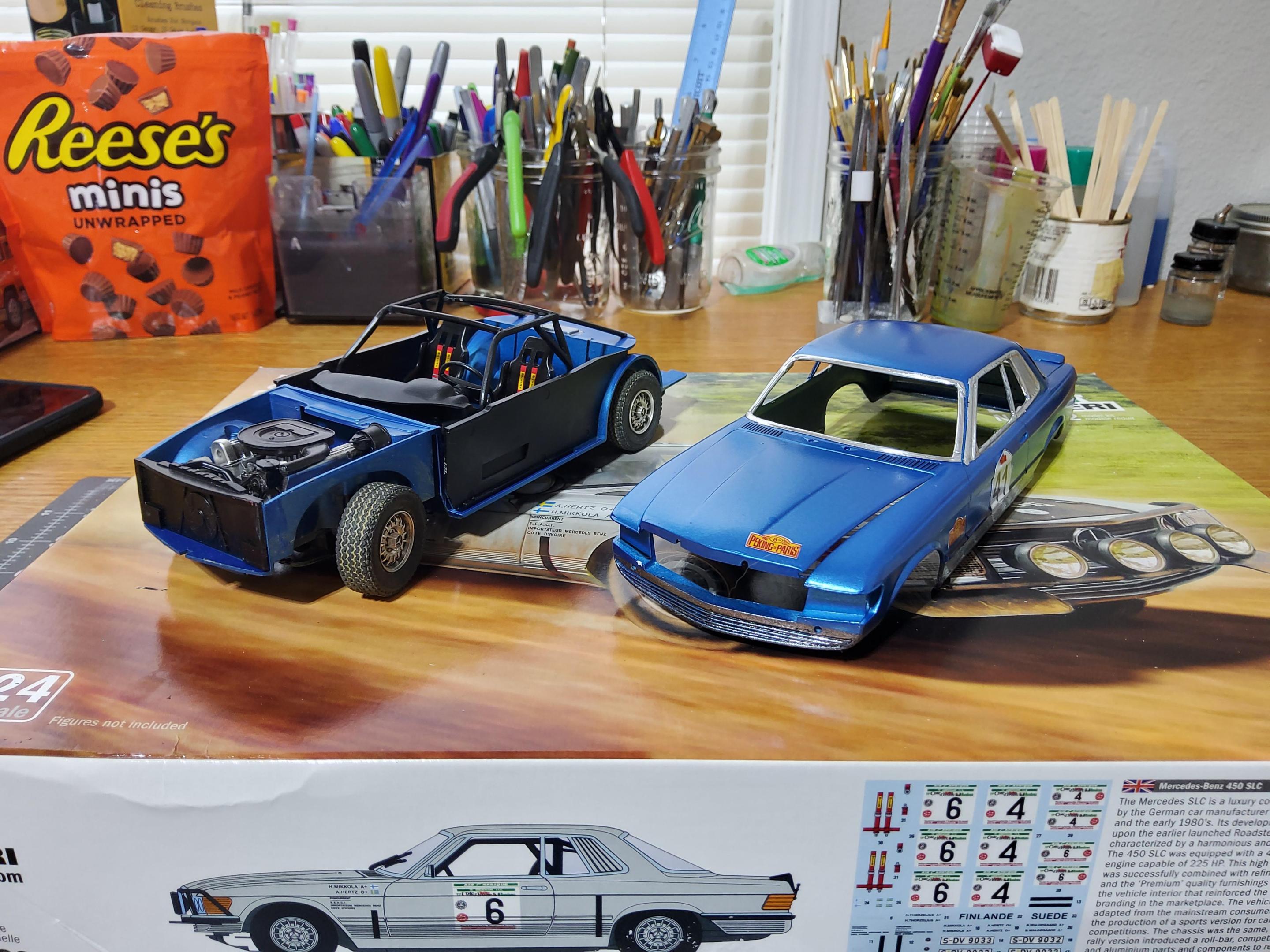 Well, the kit I ordered for this buid showed up Friday. I started it Satuurday and was able to make good progress. This is not the greatest kit. The wheels need to be modified because thy stick out way too far, the hood has no hinge, you just cut it all but the a small part and that makes the hinge. There are a lot of other issues. However it goes together good fo the most part. I fought with my BMF and had to change over to HVAC tape and that dd not go well either.