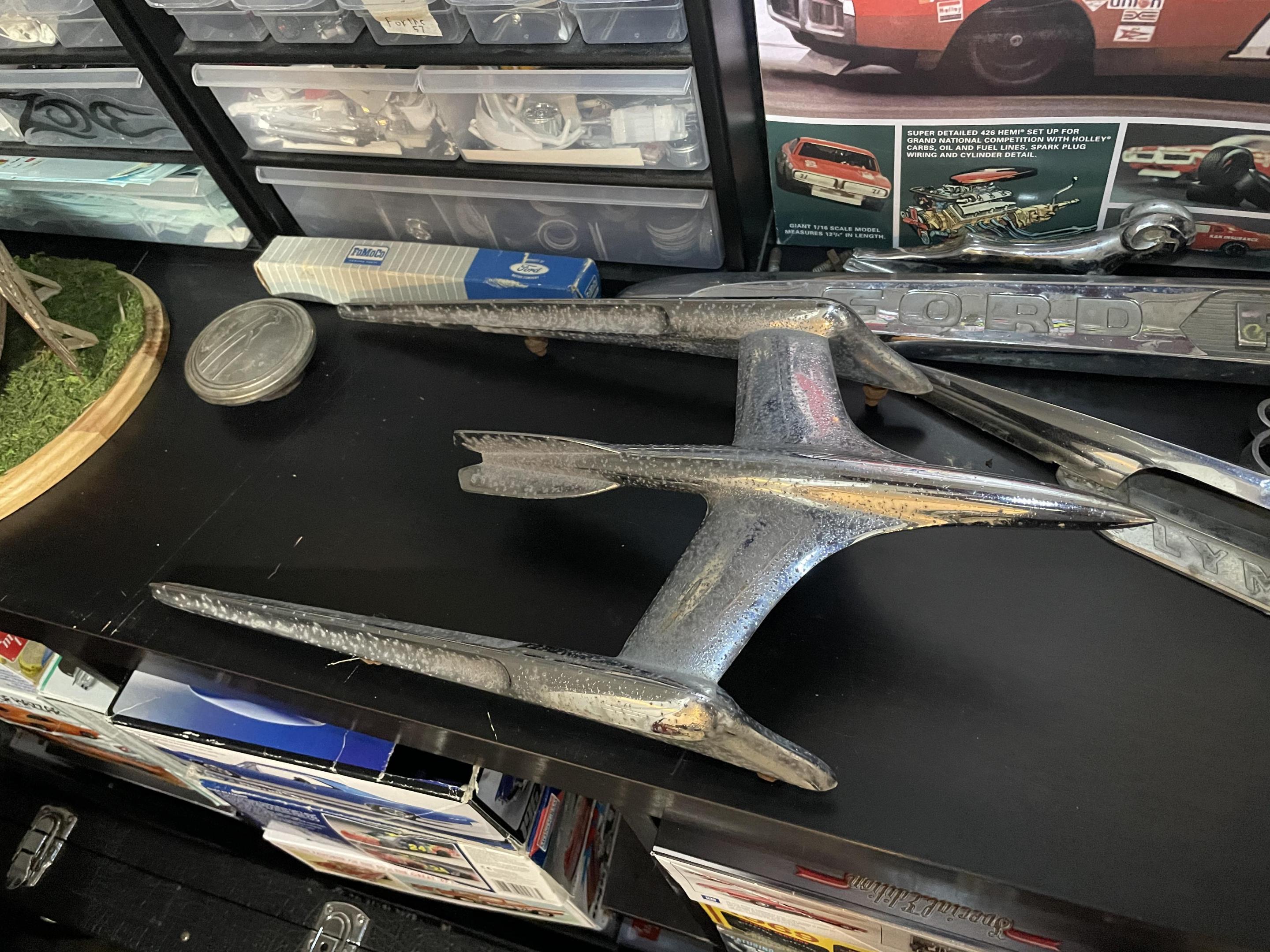 22. Well after doing some cleanup I came across a couple of hood ornaments that I forgot I had and now the curiosity is getting to me as I have never known what they are originally from. This one was on a 1963 dodge d300 gin pole truck that I bought but I know that that’s not what it’s originally from although it will be going back on my 1964 dodge d/w100.