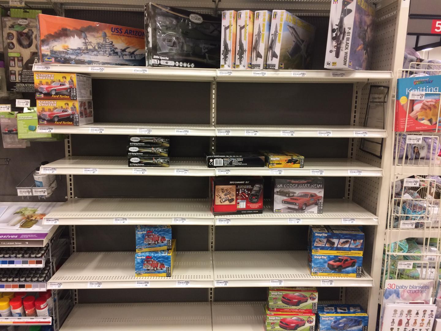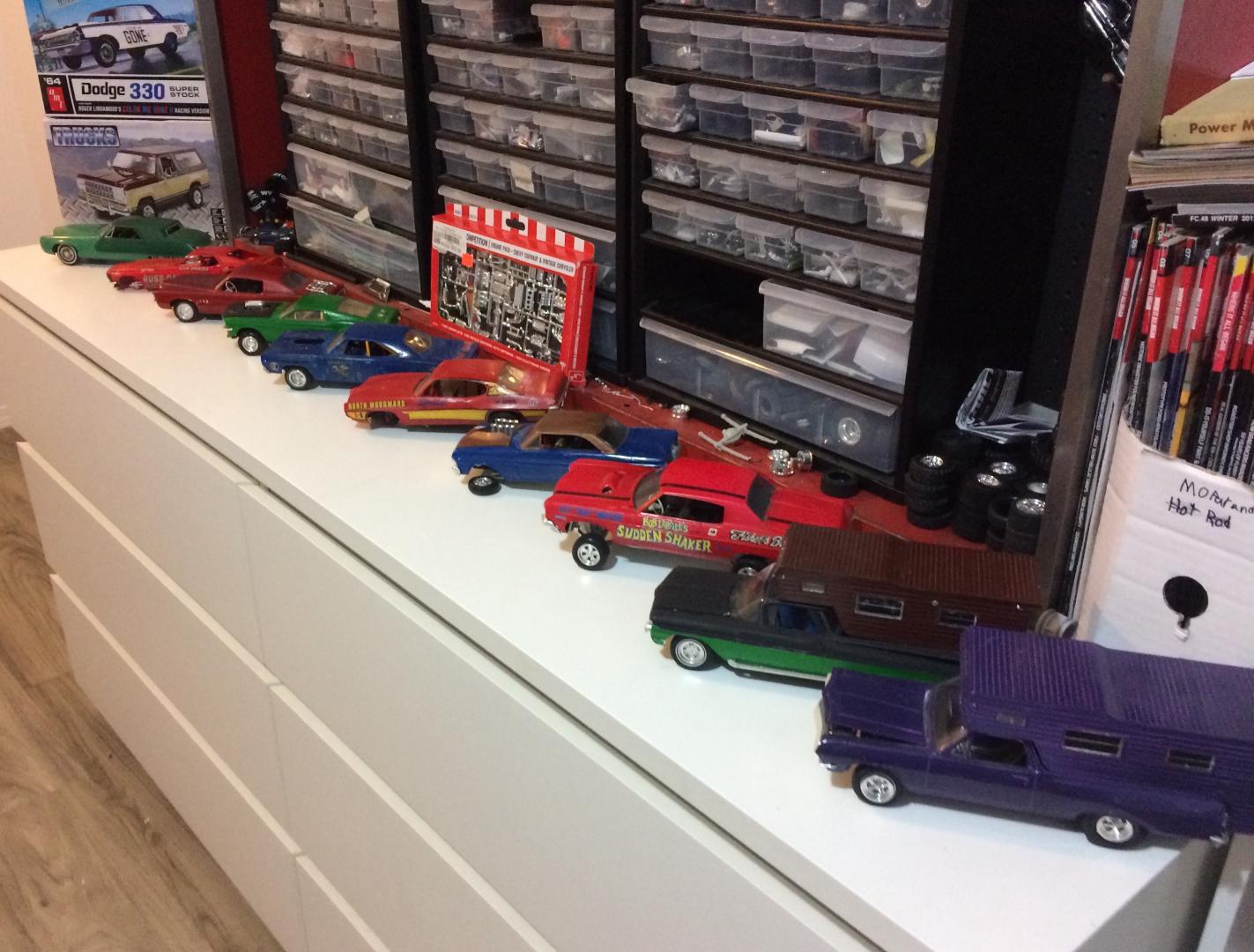 17. This was the shelf at Micah’s today. There was only 4 glue together model cars. About 2 years ago the shelf was twice as big and full of models.
