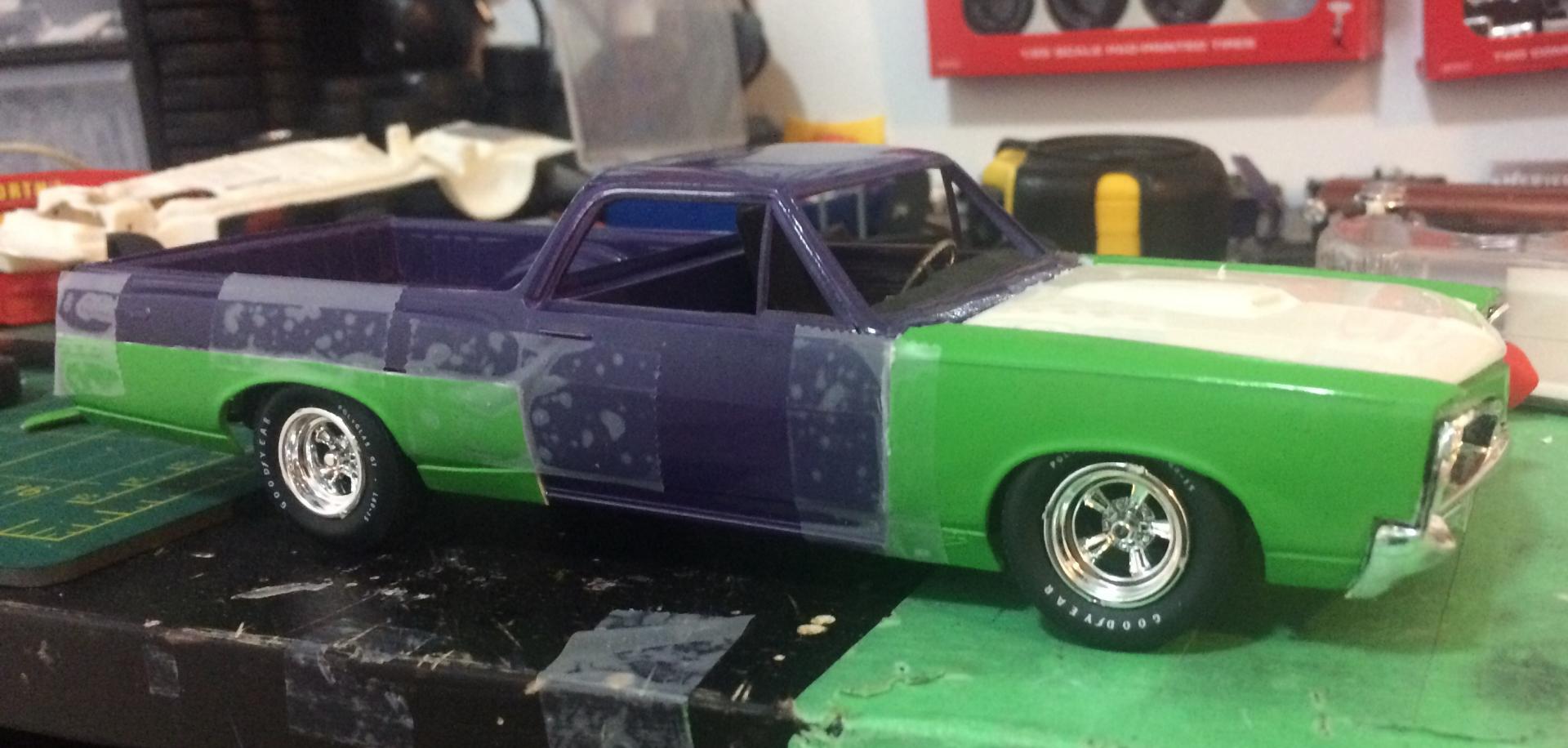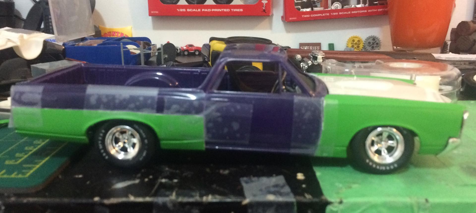 9. In case you didn’t already know this biuld is inspired by the 65 Goat-A-Mino that was posted in the General forum by Mike999. http://www.modelcarsmag.com/forums/forum/1-general/ I started with an old biult amt 66 ish El-Camino and a 1/2 biult mpc 67 gto. I’m not a big fan of the original frame on the El-Camino and I have already used the gto frame on a different project so I found an amt 69 Chevell frame that I will modify a bit to be more detailed. The motor will be a revell 69 gto 400ci. here are some mock up pics. Comments welcome