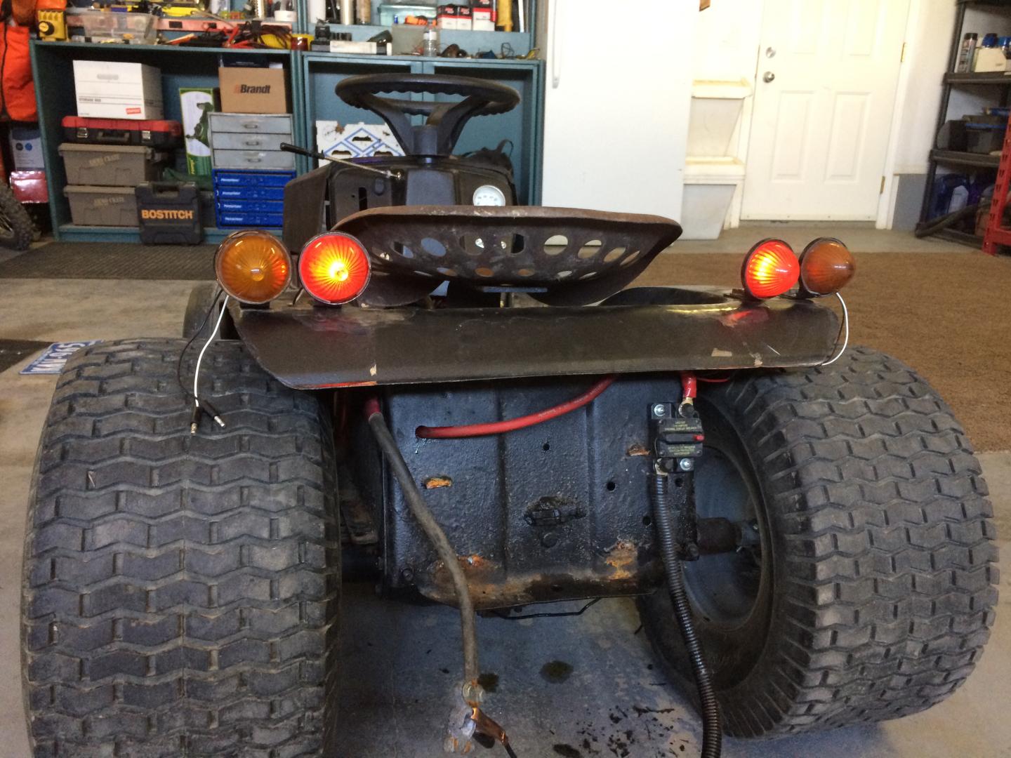 Today I started un-painting my lawnmower, wiring in brake lights and finishing up my steering. Next step is working signal lights. I also fixed my mig welder.