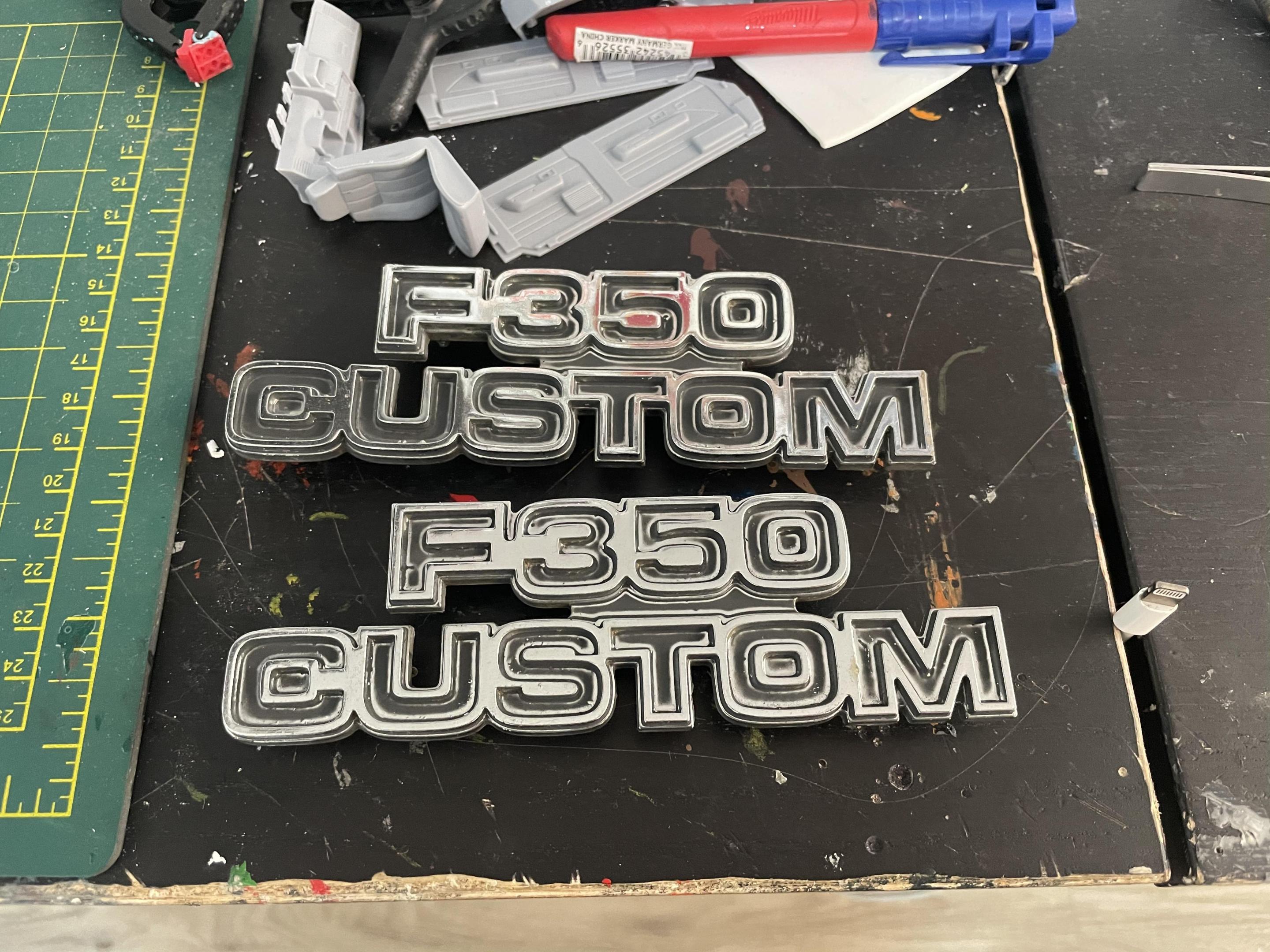 Was able to clean up and re spray a set of f350 emblems off of a 77 Ford for my 06 super duty. and also got a lot of assembly done on the rest of the truck.
