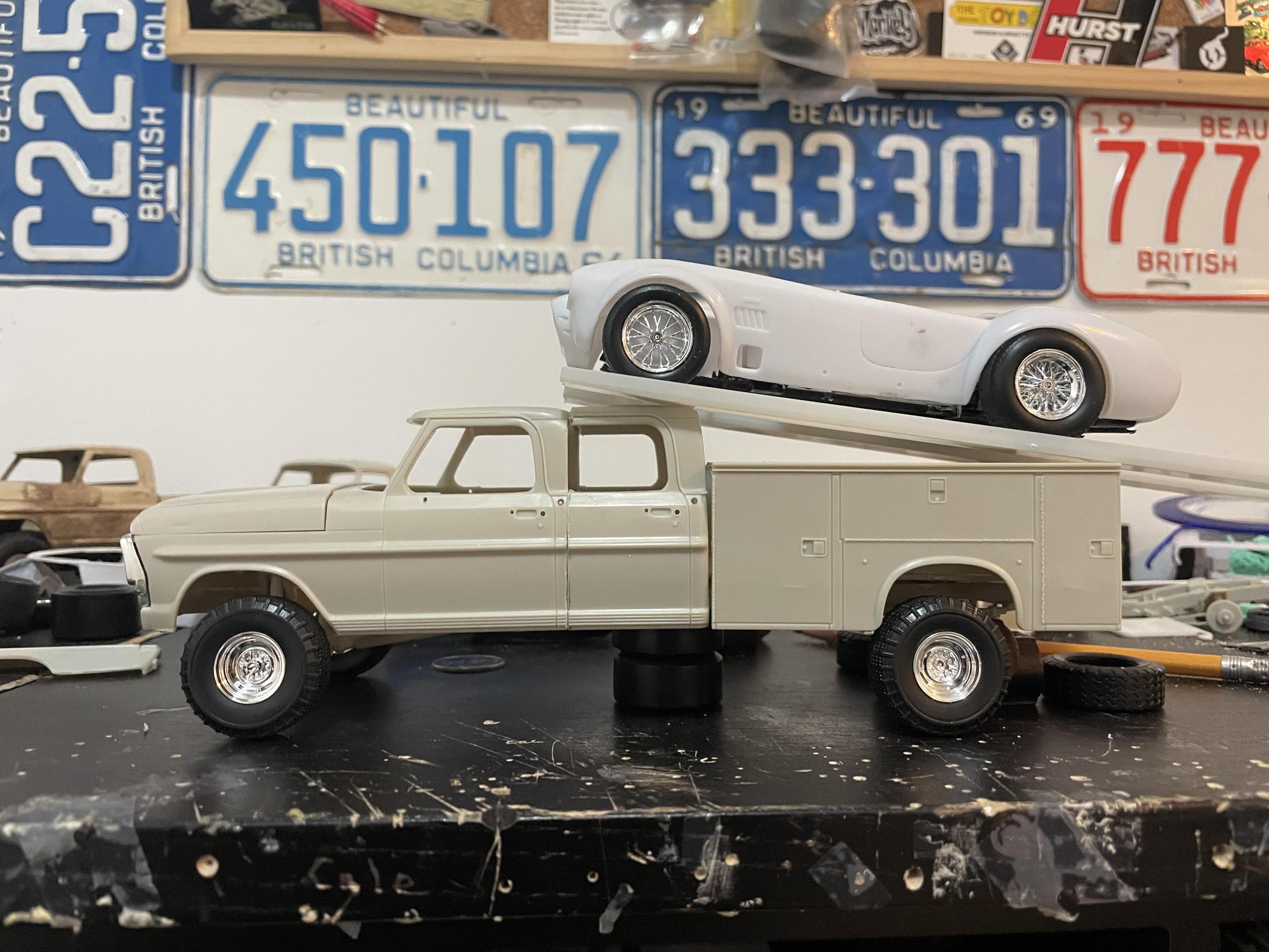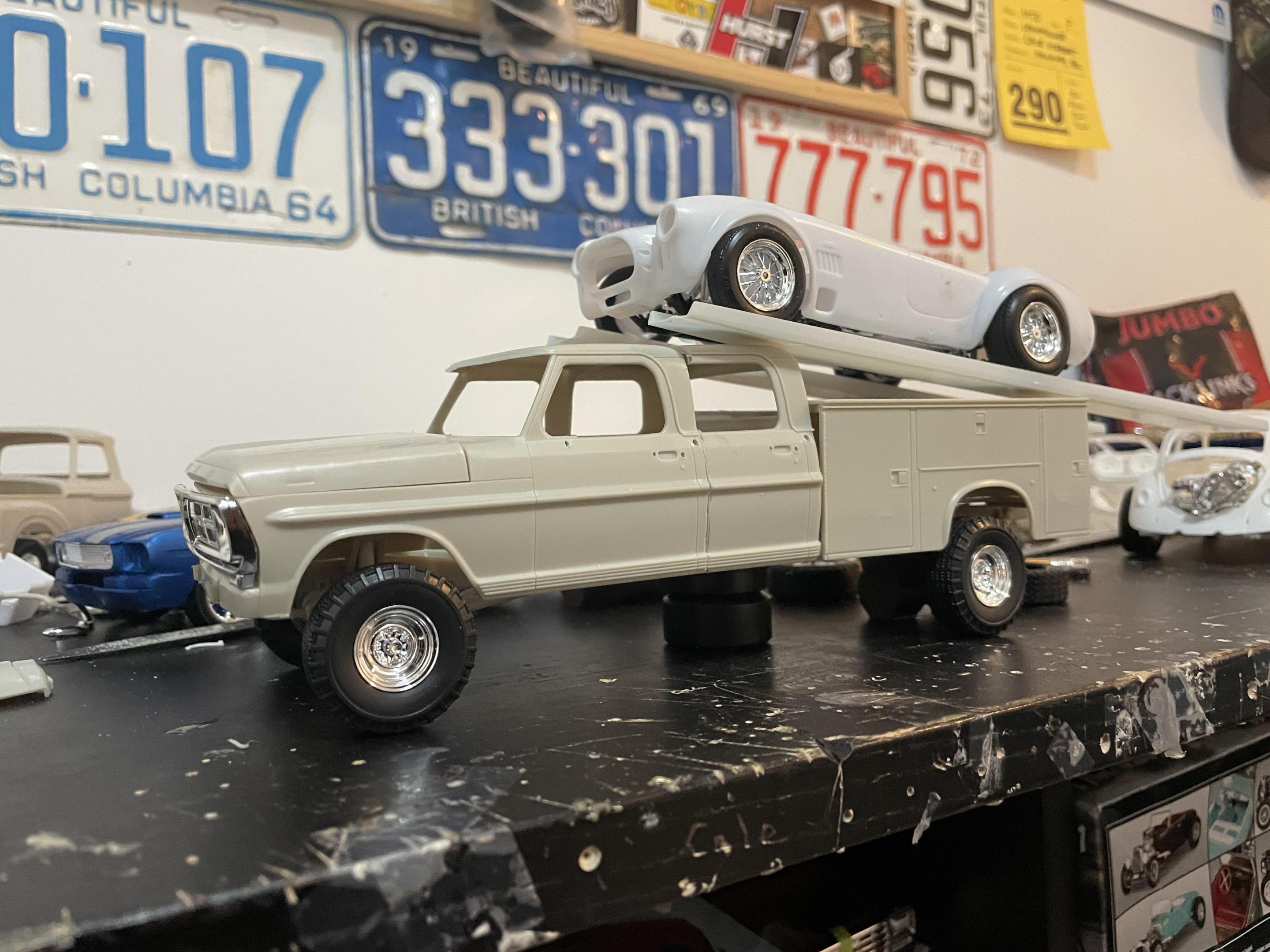 Just finished cutting up this on and had to throw it together for a quick mock up. I’m thinking of doing it up as a sketchy old race car hauler with the cobra on a ramp system on top of the mechanics box and it might even pull a trailer with a second race car on the back. -