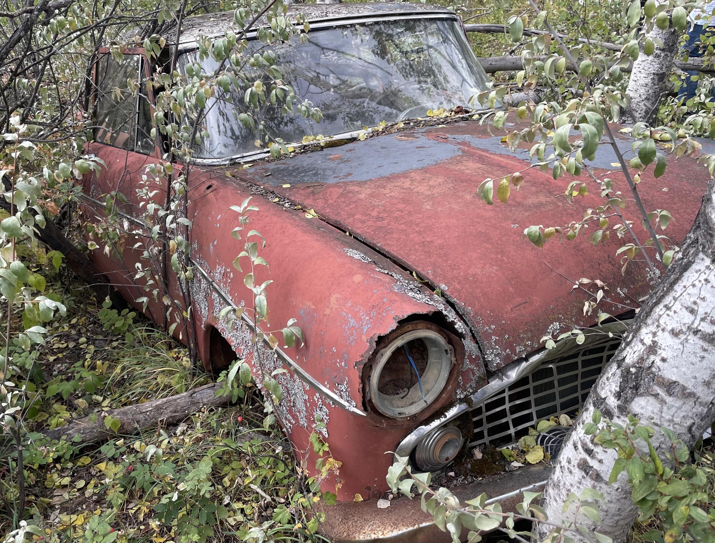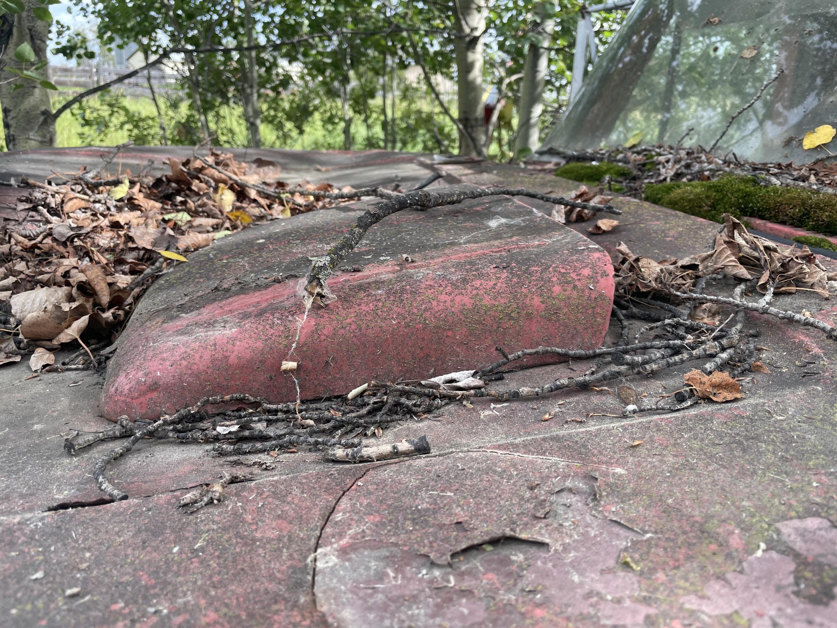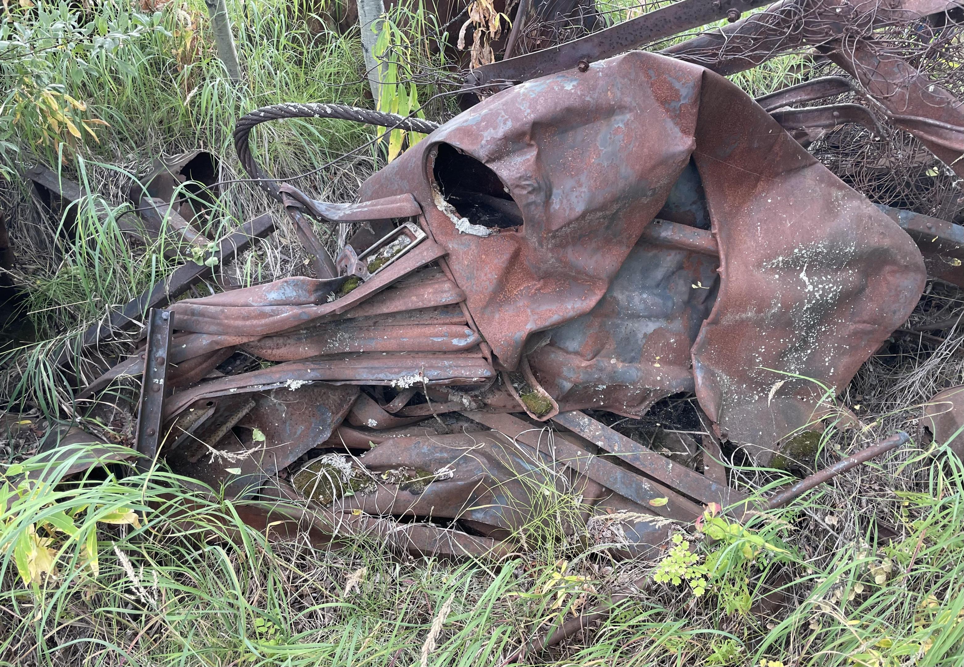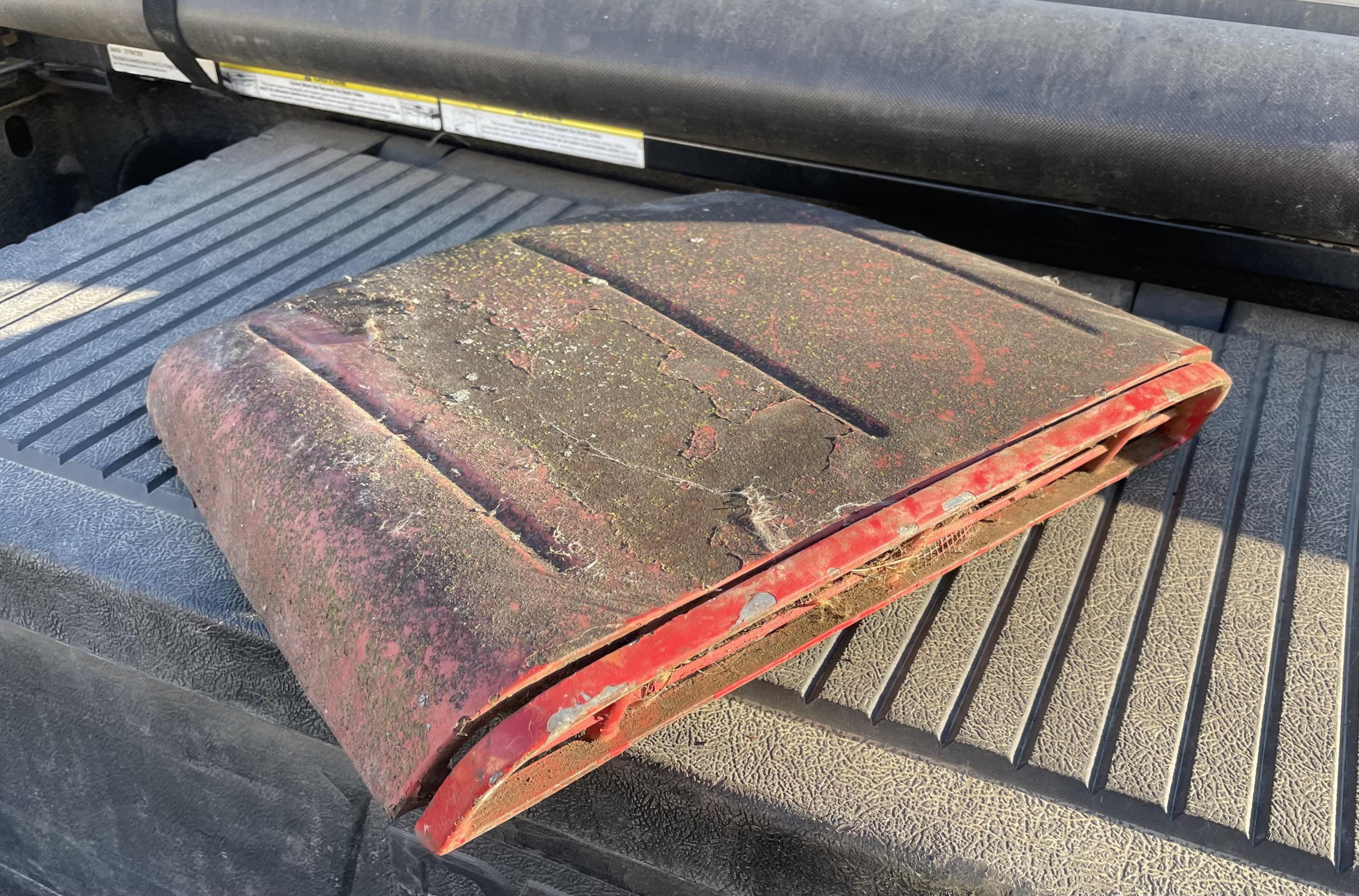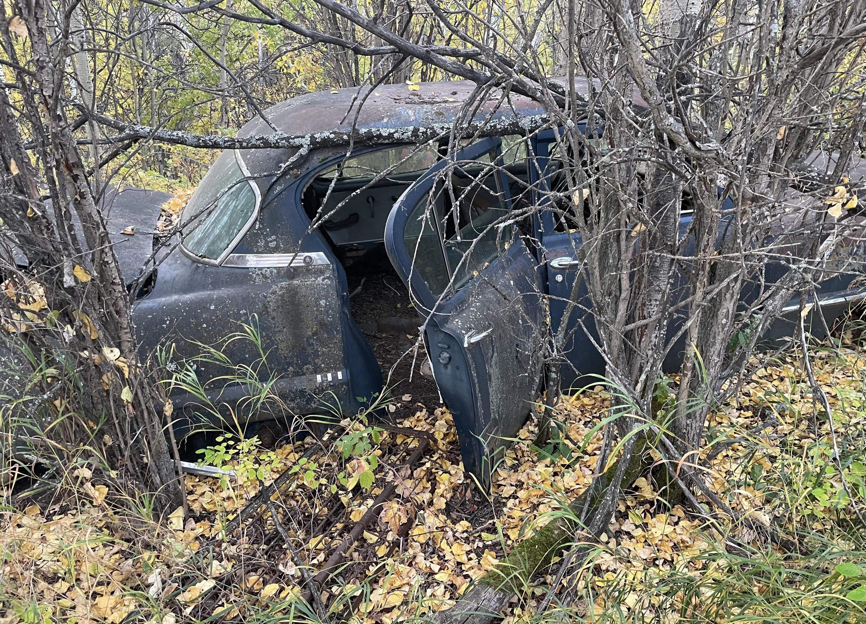 I spent the day adventuring through my great grandparents farm today looking for some cool stuff, do it every time I go there and always find something new. this time I found a handful of vehicles I never seen before on the banks of a small creek. Im not sure on the year of this one but it appears to be a 50s Plymouth and right beside it was something i have never even heard of before, a simca vedette made in France with a flathead V8 that looked a lot like a Ford Flathead (I didn’t get a picture of the engine) as well as a 50s Chevy cab that looked to be in pretty good shape I found the other parts of the truck in a steel pile quite a ways away in very bad shape. And then way off the edge of the valley there was a 50s Fargo cab that looked like it was rolled down the hill but in very good shape, the box and front clip were closer to the top in good shape as well. the best find though was a mint Ford super duty hood scoop (the same ones used on Pontiac super duty cars) off of an old mercury truck cab that I was able to get. It was missing the cast grill peace but after digging through the cab someone actually took and left it behind the seat. I am going to do my best to rescue all of the vehicles and more from the bushes and some old buildings that are full of stuff either this fall or next summer.