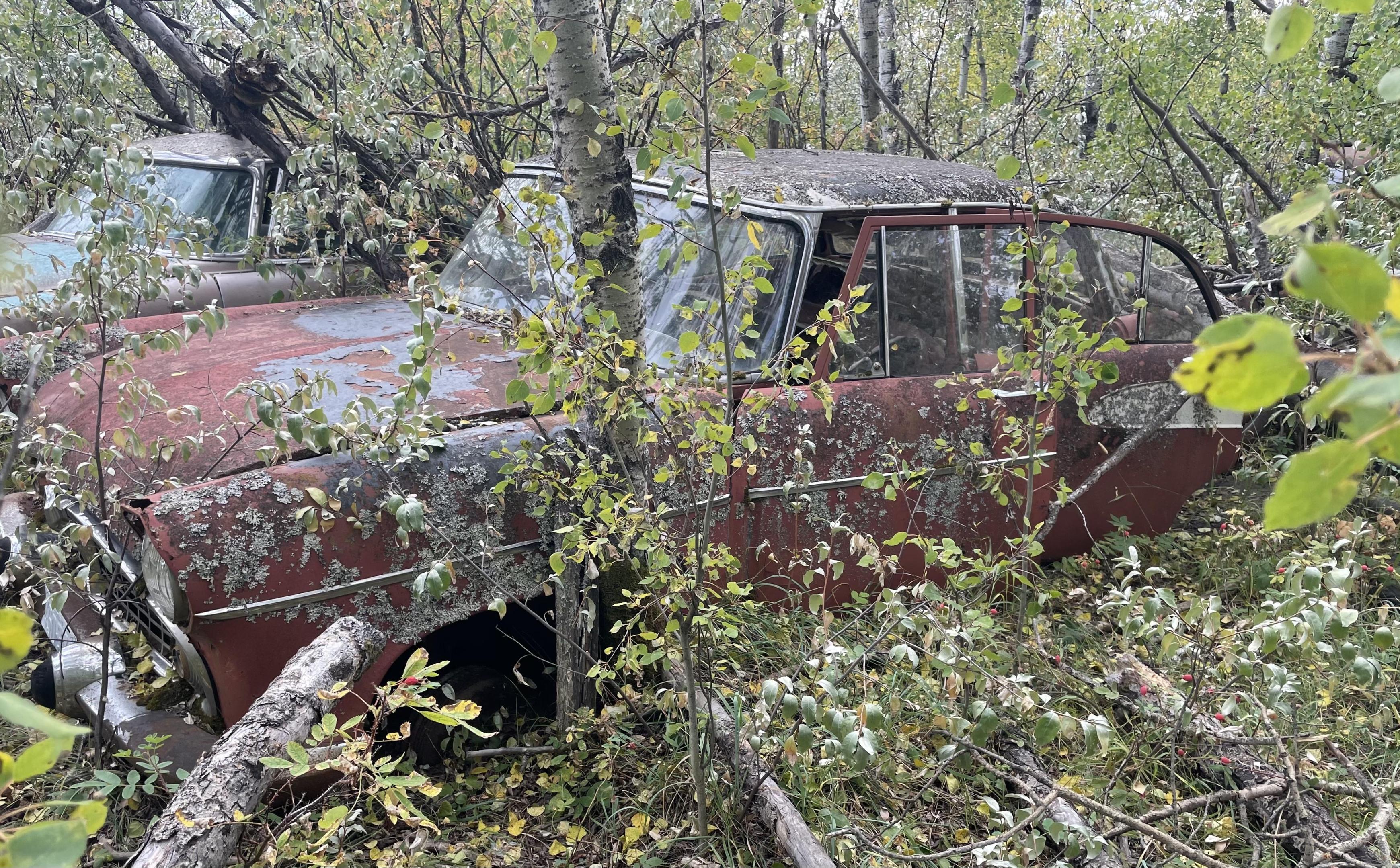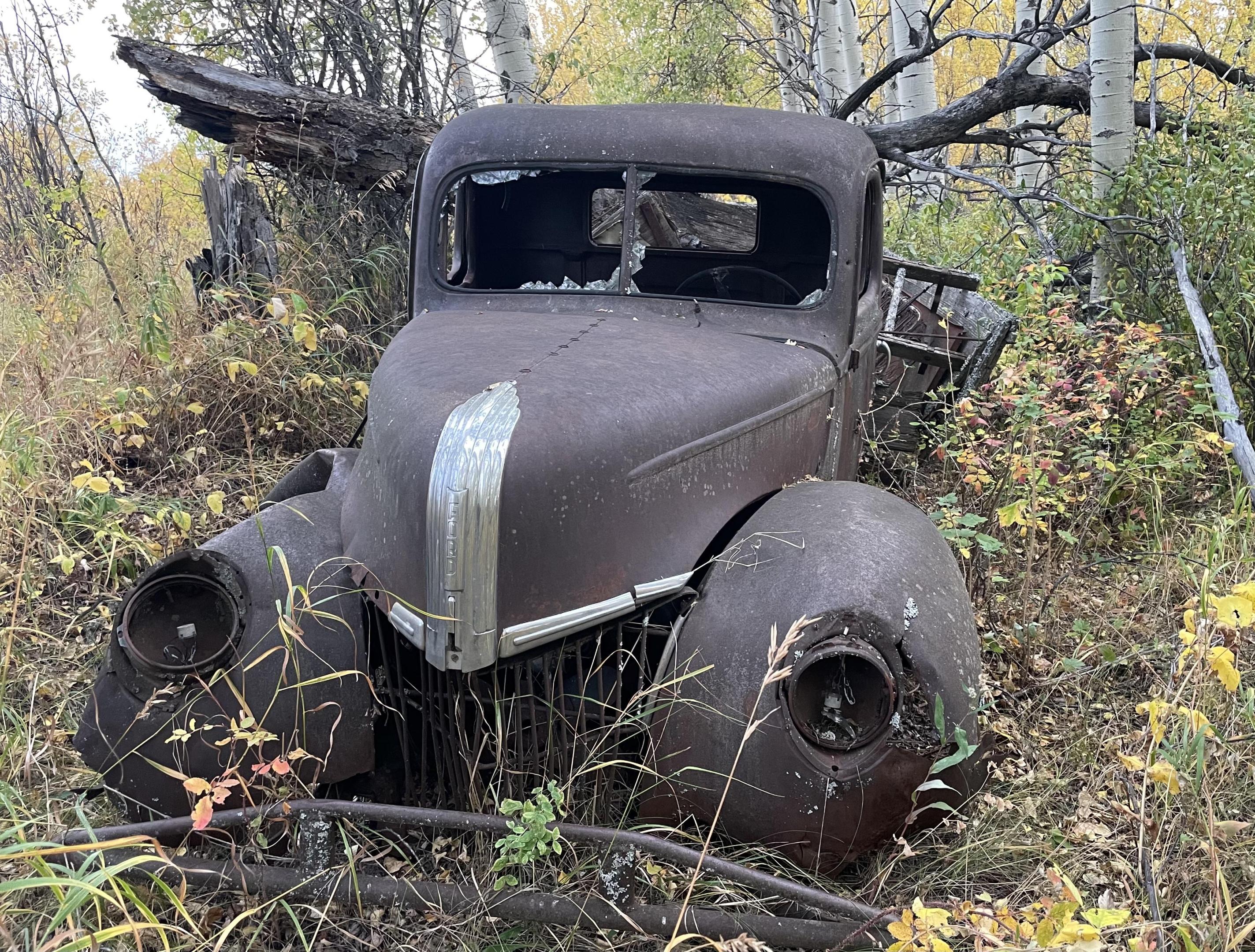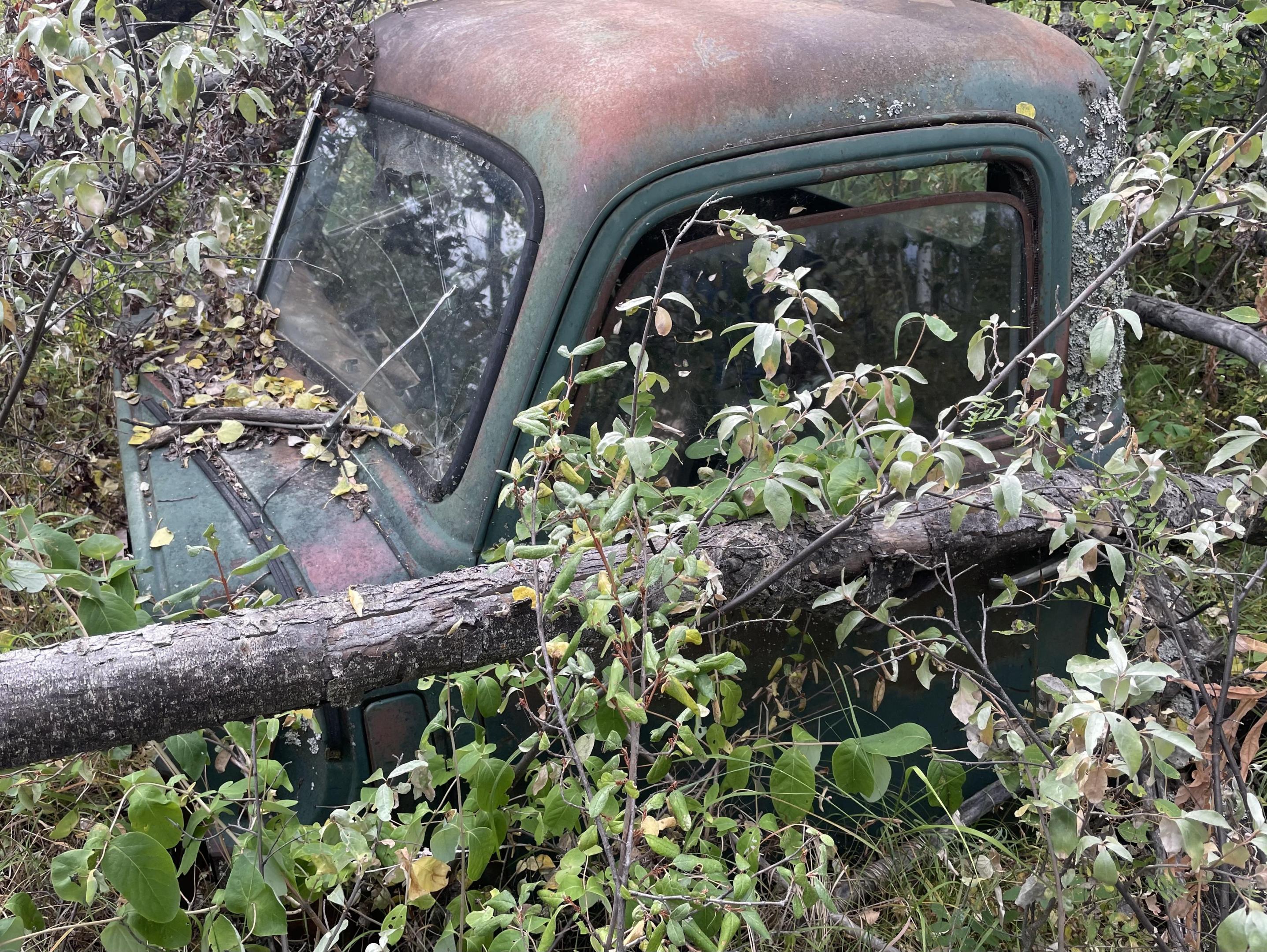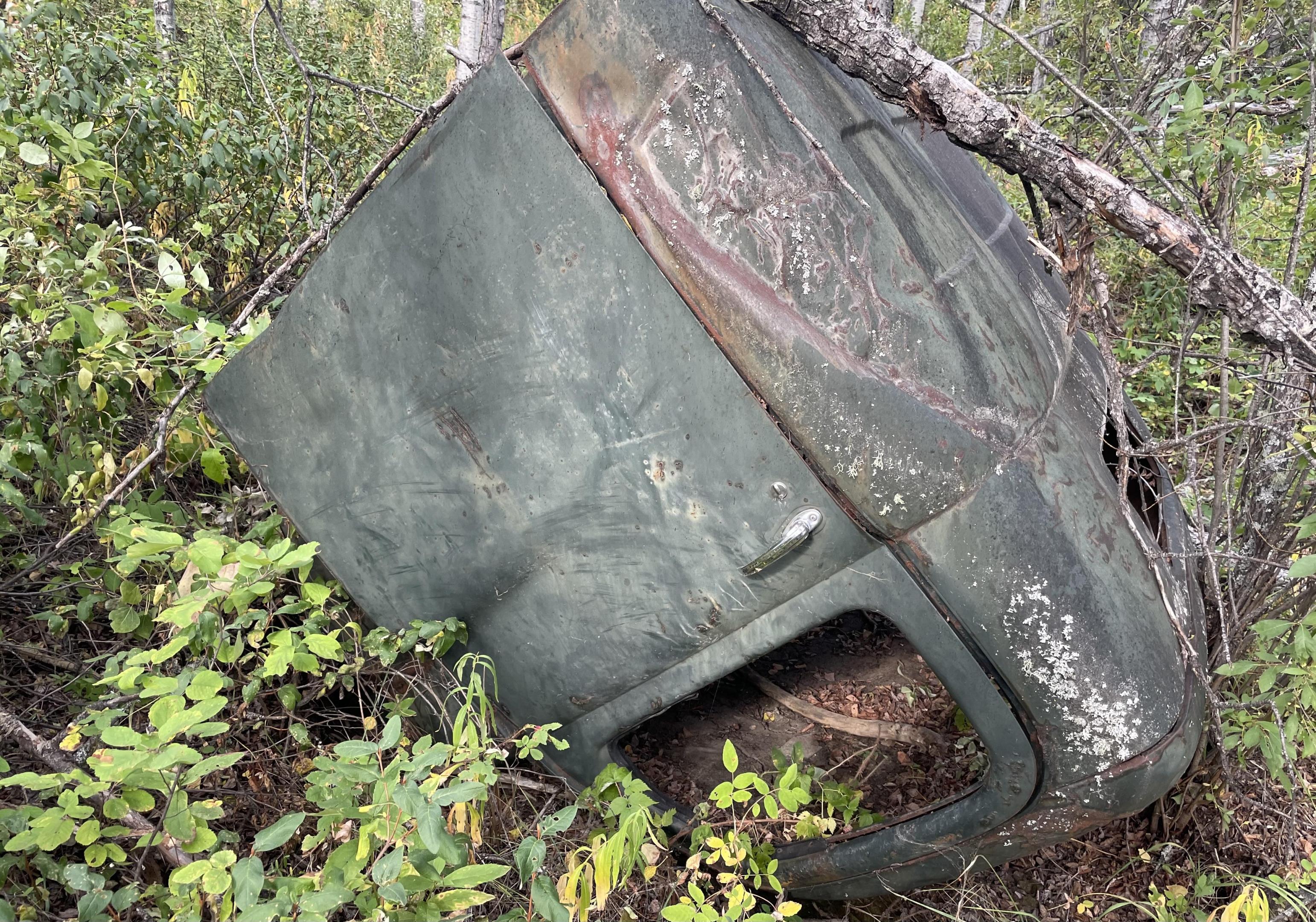 I spent the day adventuring through my great grandparents farm today looking for some cool stuff, do it every time I go there and always find something new. this time I found a handful of vehicles I never seen before on the banks of a small creek. Im not sure on the year of this one but it appears to be a 50s Plymouth and right beside it was something i have never even heard of before, a simca vedette made in France with a flathead V8 that looked a lot like a Ford Flathead (I didn’t get a picture of the engine) as well as a 50s Chevy cab that looked to be in pretty good shape I found the other parts of the truck in a steel pile quite a ways away in very bad shape. And then way off the edge of the valley there was a 50s Fargo cab that looked like it was rolled down the hill but in very good shape, the box and front clip were closer to the top in good shape as well. the best find though was a mint Ford super duty hood scoop (the same ones used on Pontiac super duty cars) off of an old mercury truck cab that I was able to get. It was missing the cast grill peace but after digging through the cab someone actually took and left it behind the seat. I am going to do my best to rescue all of the vehicles and more from the bushes and some old buildings that are full of stuff either this fall or next summer.