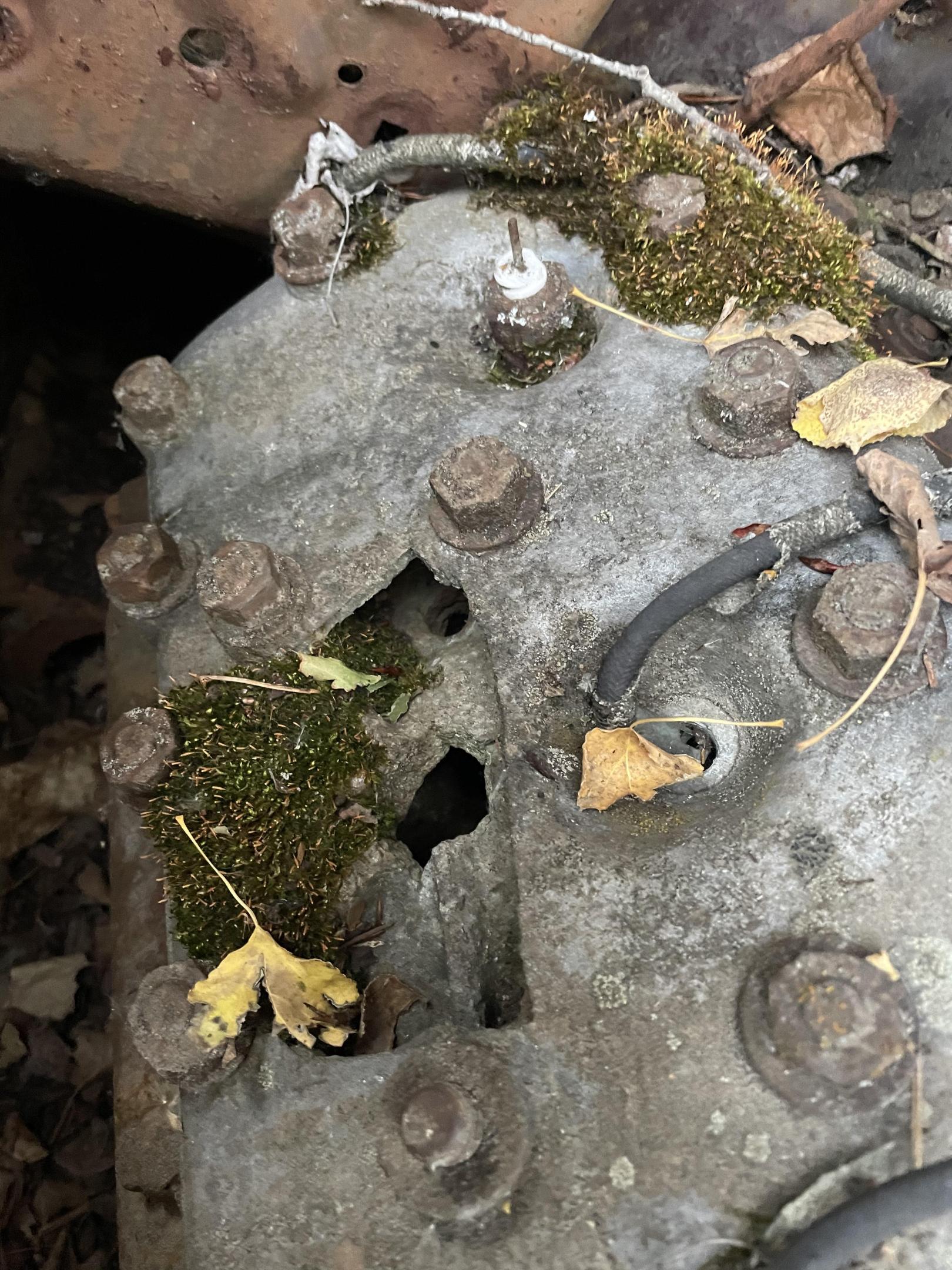 Found these not quite on the road. First I found what looks to be an early 50s Plymouth Right beside it was an old McCormick-deering tractor but the coolest find was a 1941 Ford f100 with flathead v8 that had a good sized hole in the head right above #5 cylinder. -
