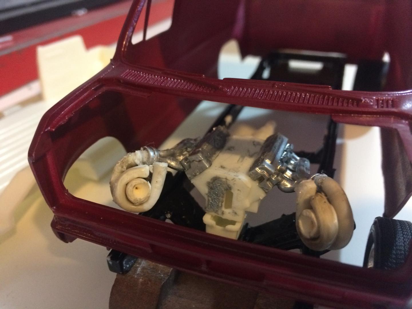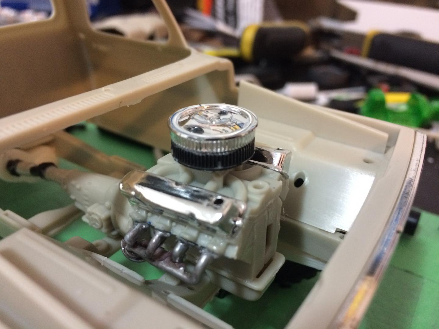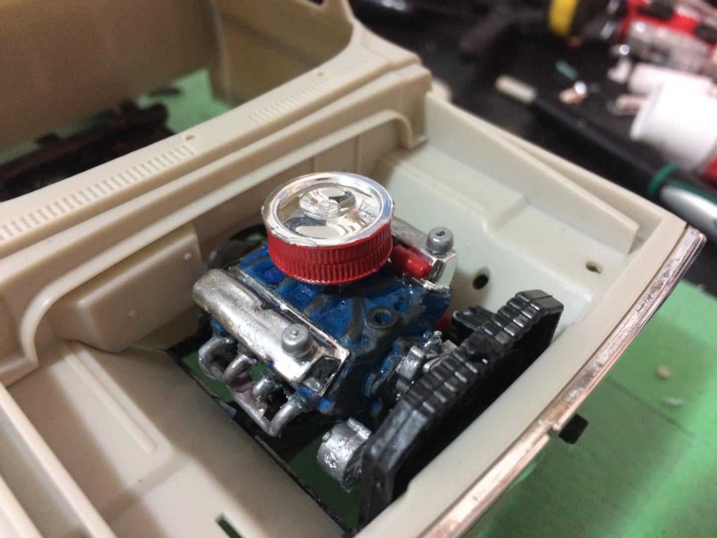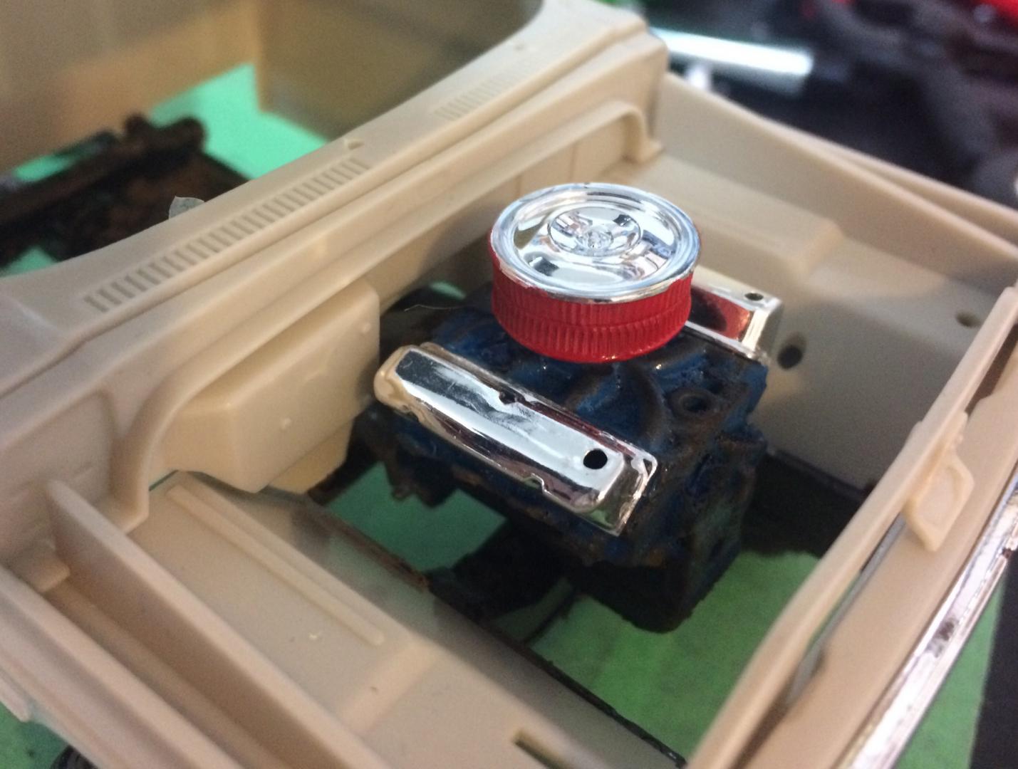Thanks. I mocked up the 390 with a homemade air cleaner, short headers from a revell mustang and 427 valve covers. The only problem is that the air cleaner is a little tall and hits the hood so I will make some shims so the hood will close more like this. I think the unaligned hood will help give it the old farm truck look.