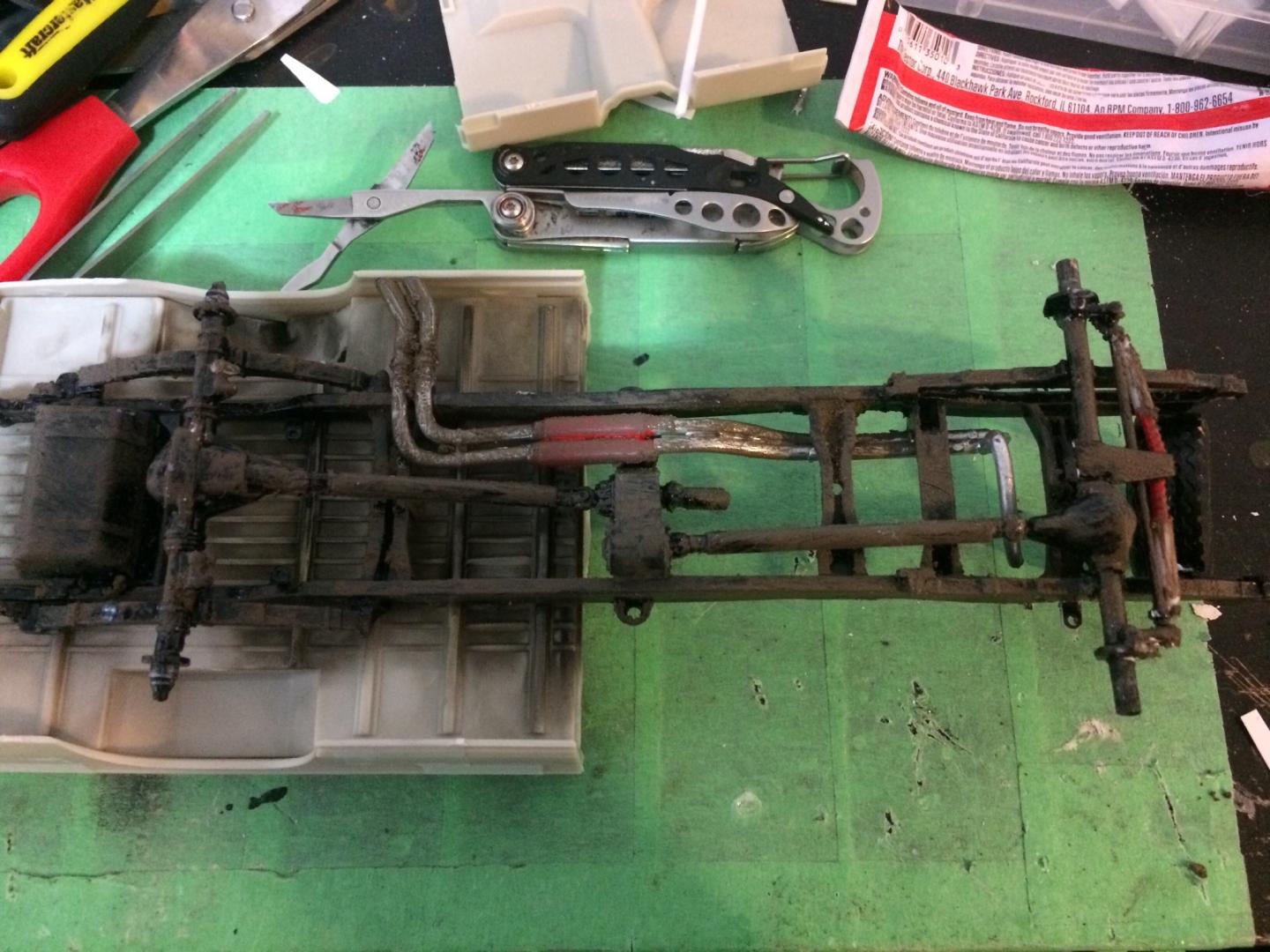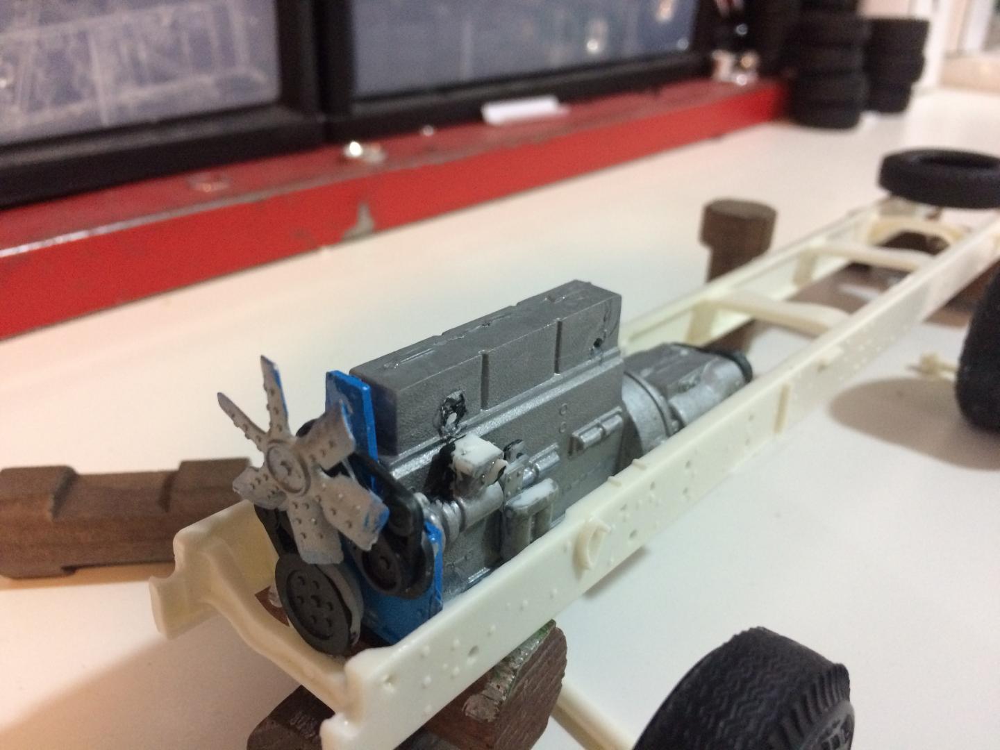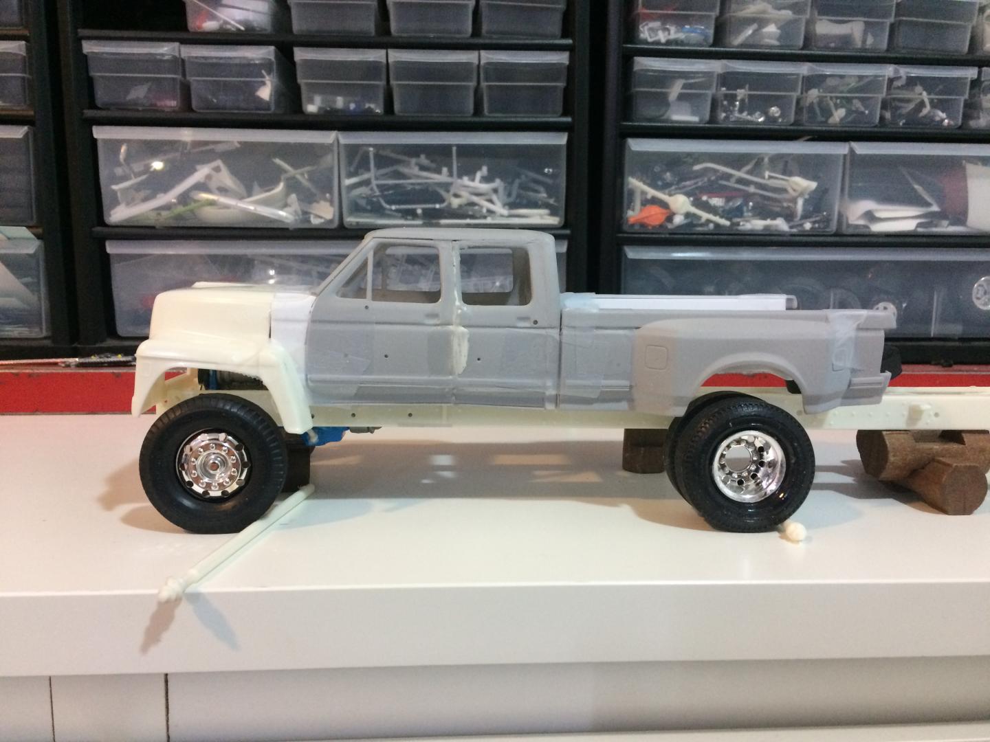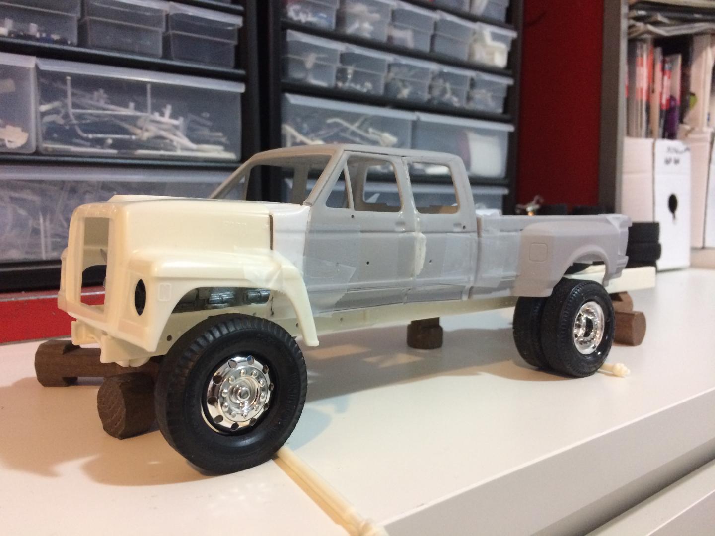 It is a revell 1991 Ford dually that I extended into a crew cab and the front end is from an amt Ford LN 8000 and I will be using a motor from an amt white freightliner