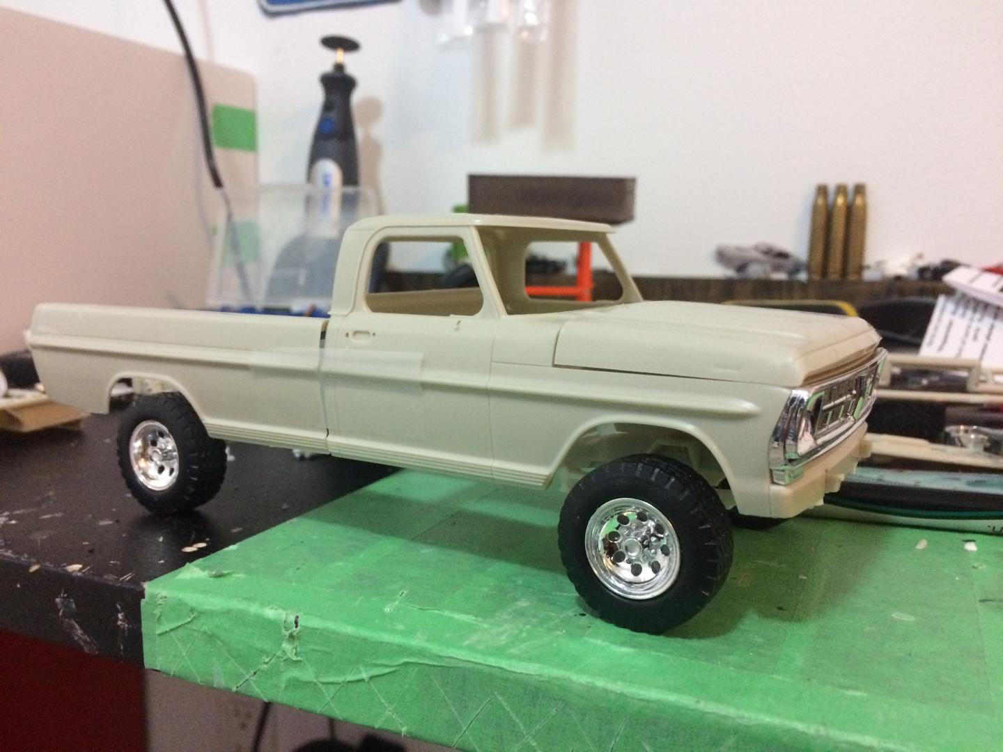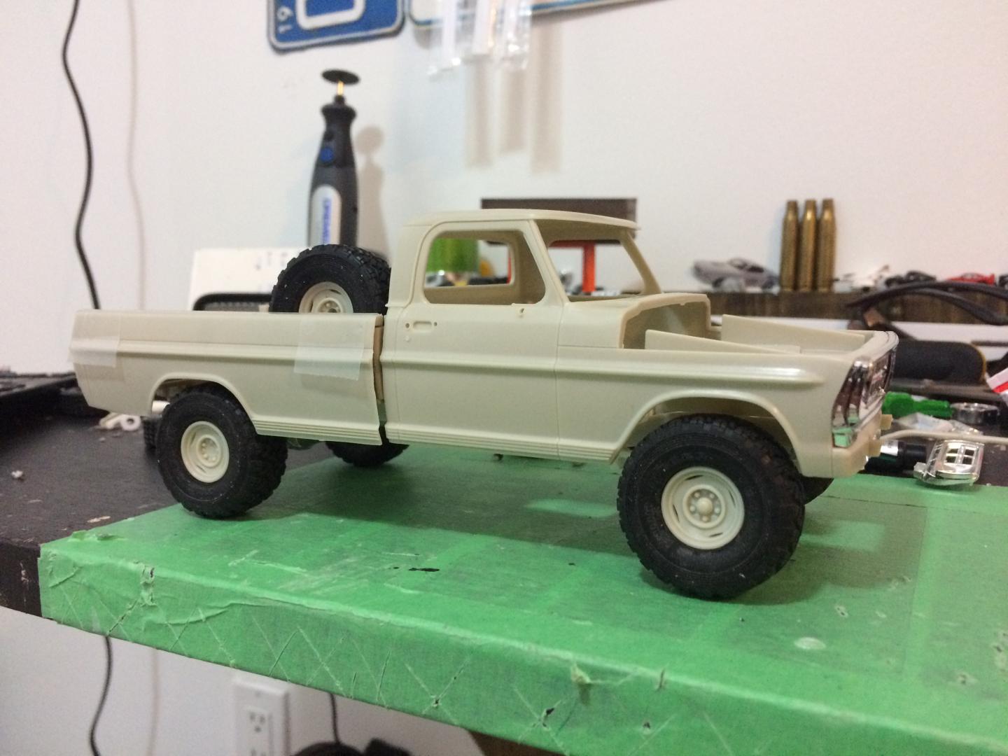 I will be building a moebius 1971 Ford that I converted to an F-250 4x4. My truck will be affordable off-roader (something a teenage like myself could afford and have some fun with)