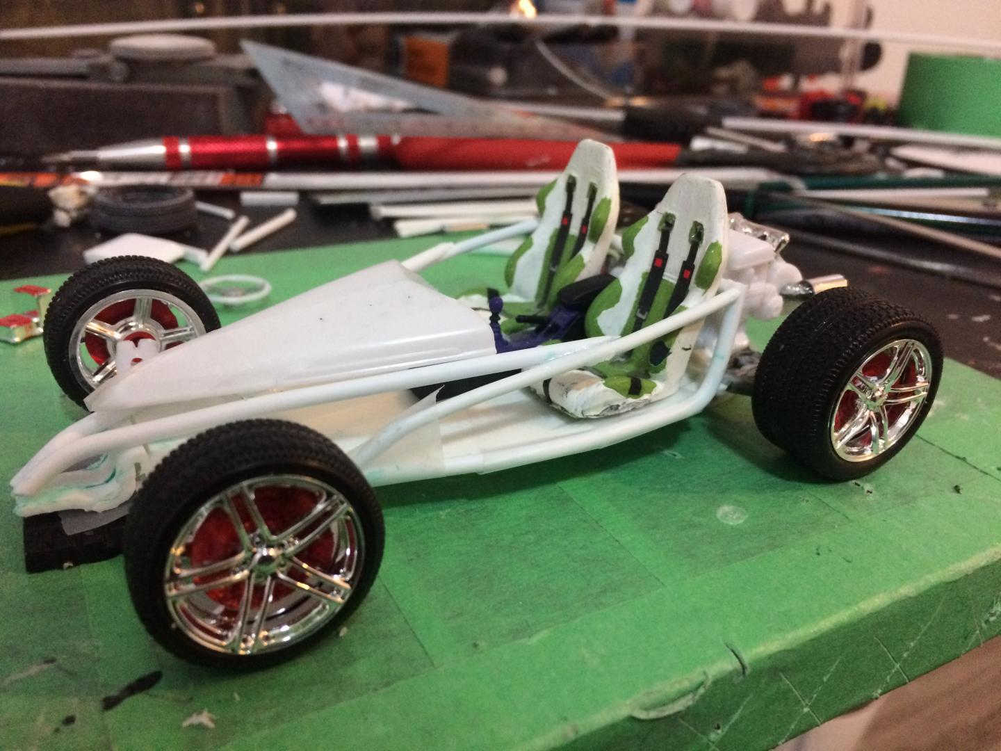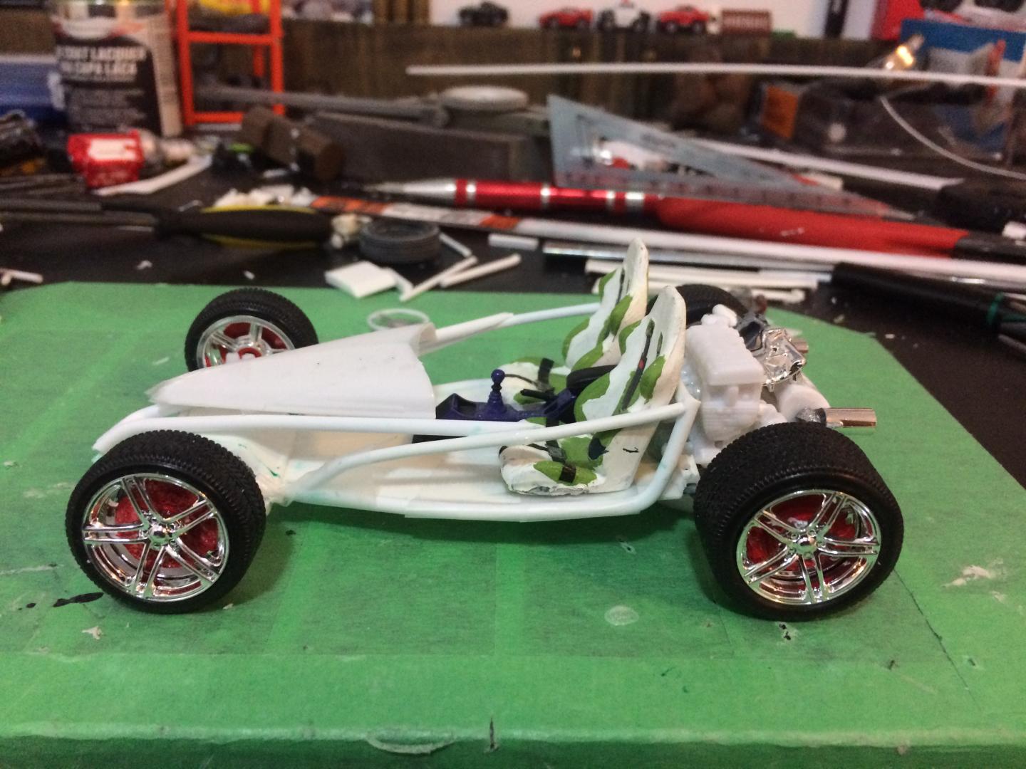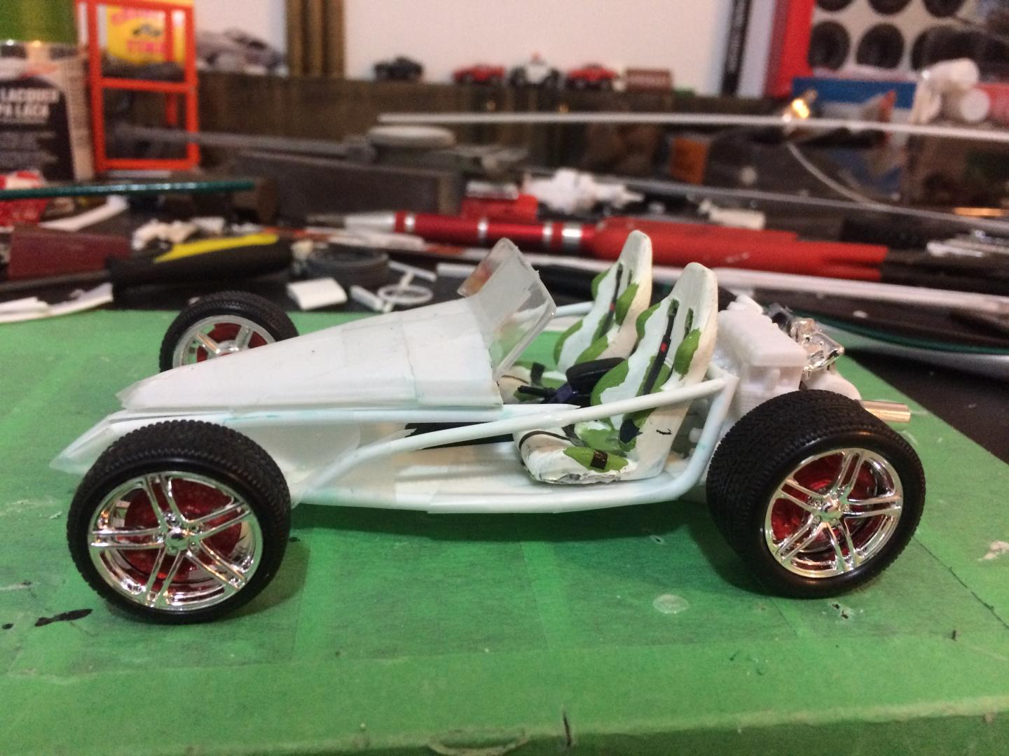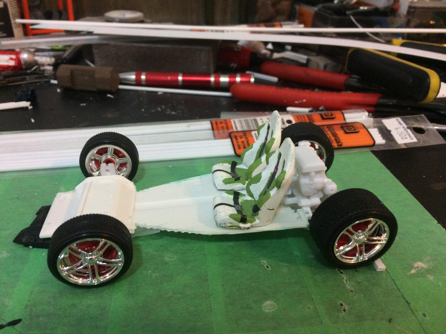 No I have not picked a colour yet. The front wheels and tires came from the monogram slingster dragster.