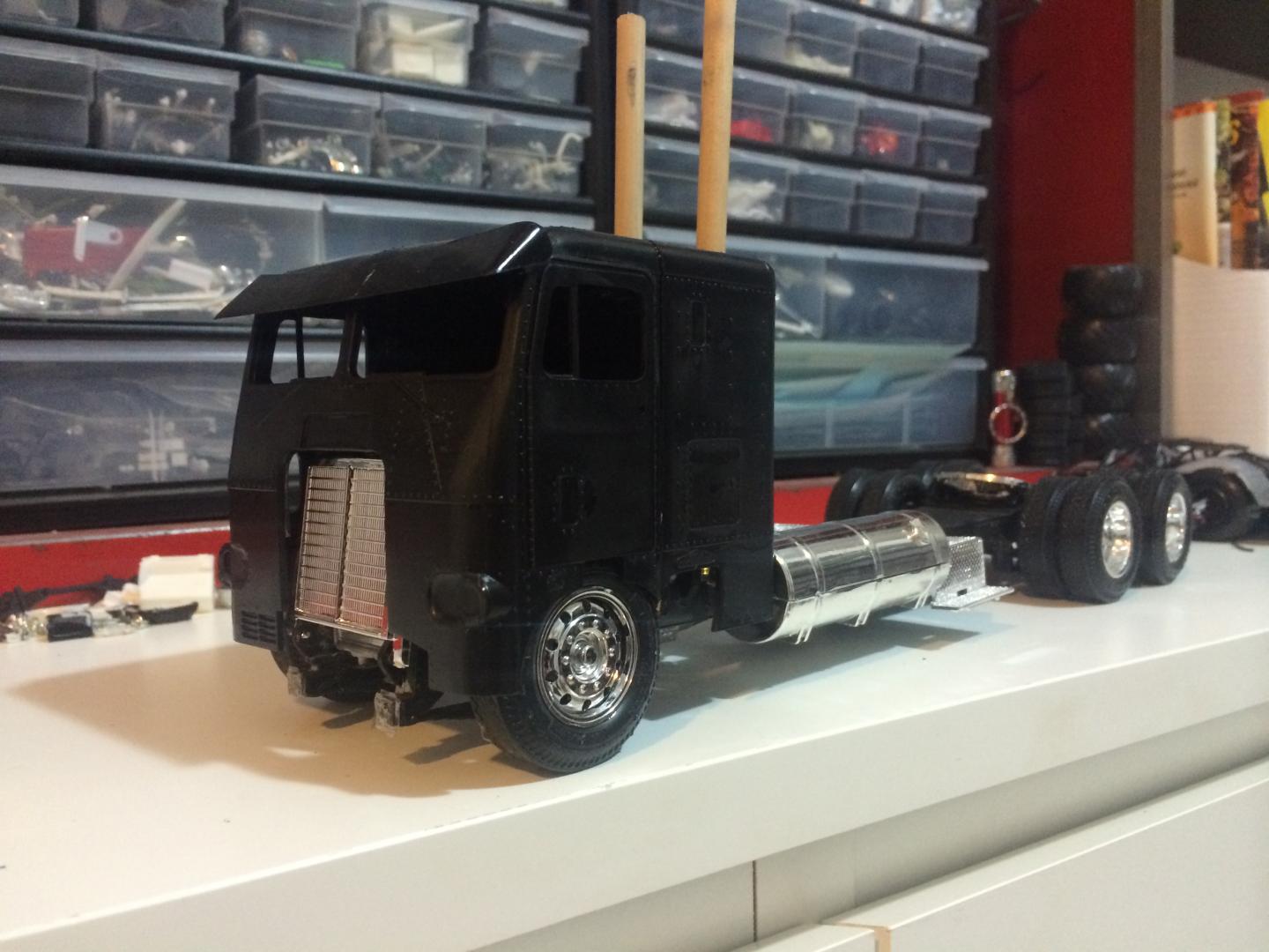 It is a revell kit that the back of the roof has been chopped about 3mm and the trunk was dropped down about 2mm. The engine is a gmc in-line 6 with the tri carb setup from the kits engine. Comments welcome