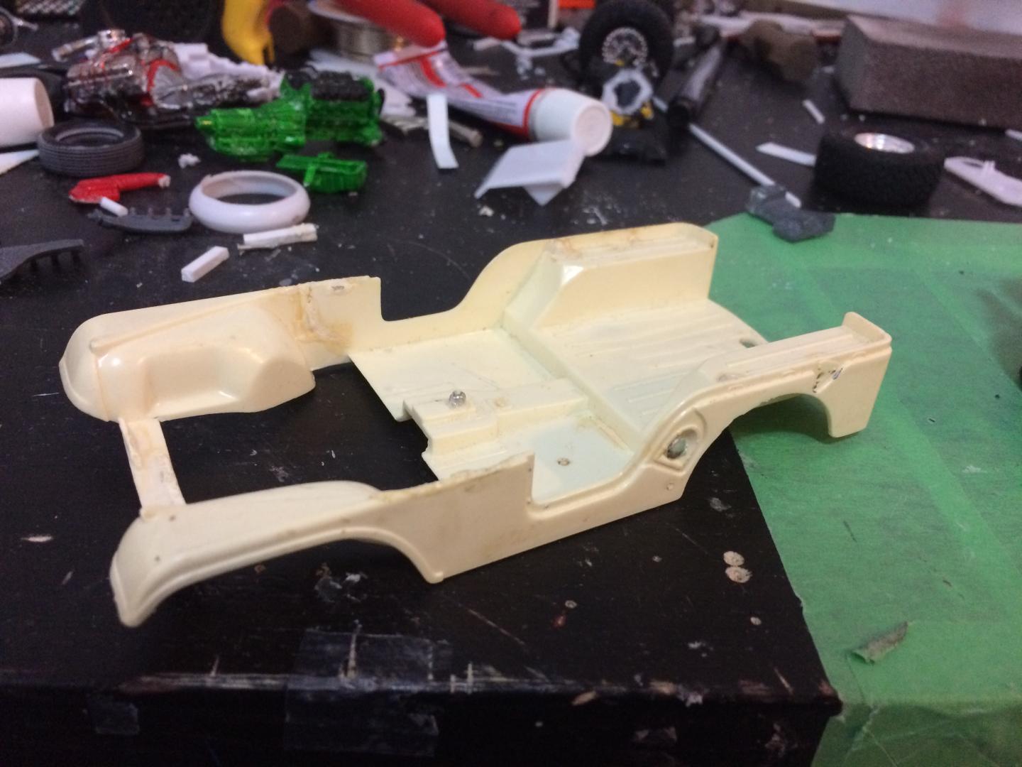 Jeep with a HEMI426 pack posted a topic in WIP: Model Trucks: Pickups, Vans, SUVs, Light Commercial It is the revell Jeep Wrangler Rubicon that I cut the hood open and will be putting a 09 Dodge Challenger HEMI. The tires and rims are from a tamiya Mitsubishi montero.