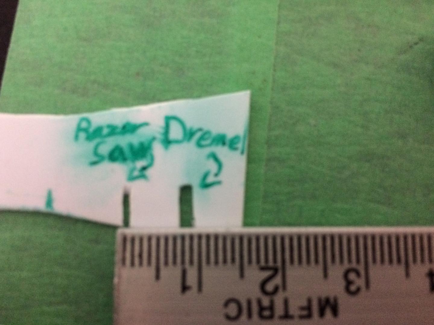 Today I biult my own razor saw using an old razor blade handle and mini hacksaw blade step 1 get mini hhacksaw blade and remove dowels it of each end step 2 put hacksaw blade on razor blade handle step 3 cut hacksaw blade down to the length wanted step 4 cut stuff with new razor saw it takes away about 1/2 of the material that the standard dremel cuting disk dose.