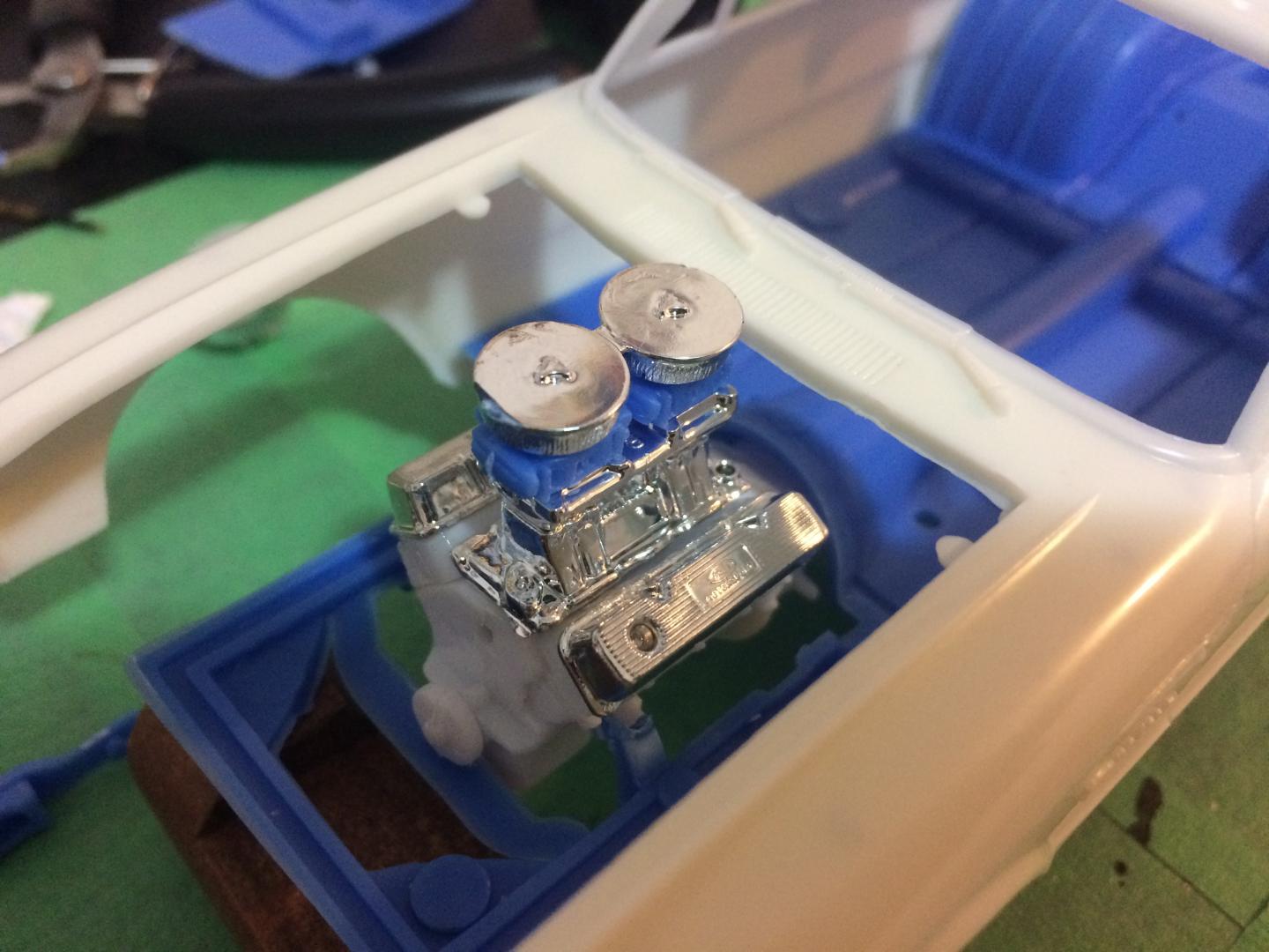 1960 ranchero pro street slump buster.... I hope.426 pack replied to 426 pack's topic in WIP: Drag Racing Models After looking through my engines that I have I couldn’t find anything that looked good that I’m not using for a different project. But I did find a cool looking intake setup from an amt 427 engine. Let me know what you think of it.