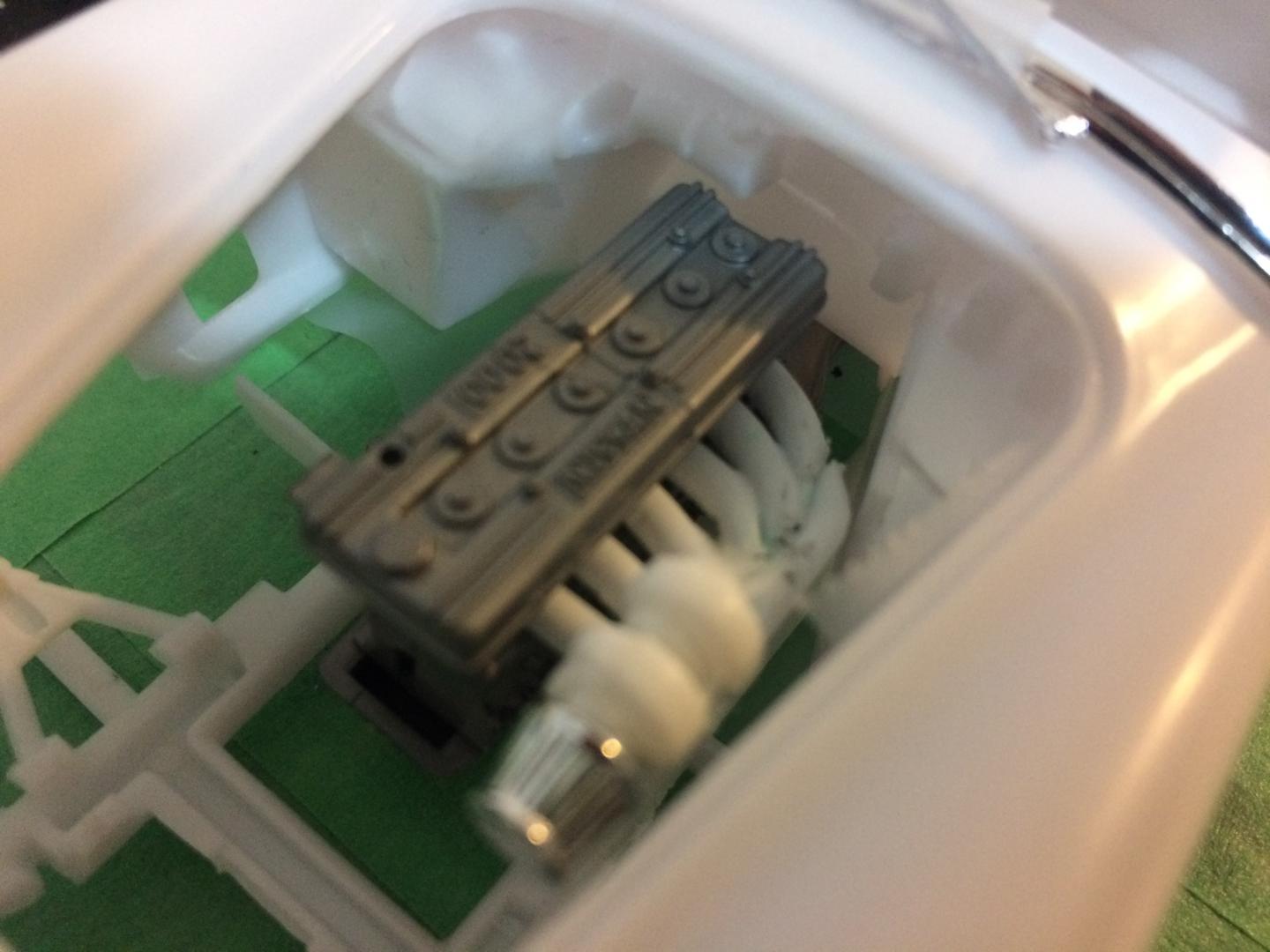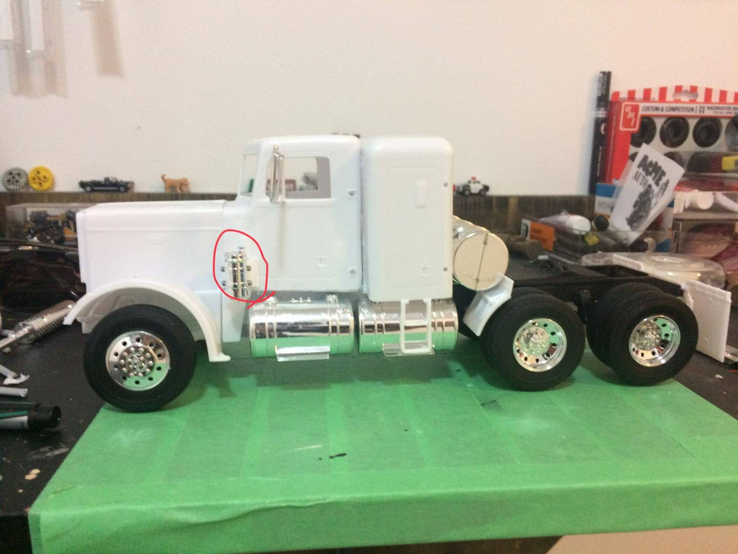 It is the revell 359 peterbiult and aside form the 3 turbos it is the kit engine. I have shortened the frame and added a different back half because I messed up the original rear suspension, added extra fuel tanks, triple turboed it and cut the sleeper of. The reason I have 3 turbos, extra1/2 of a frame and extra fuel tanks is because I have of 3 Thea’s kits, 2 of them I took parts from for other projects and one was in opened.
