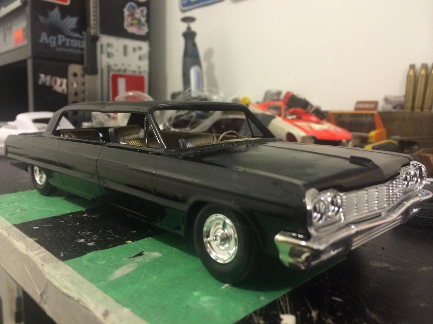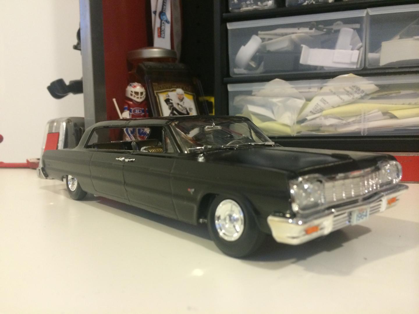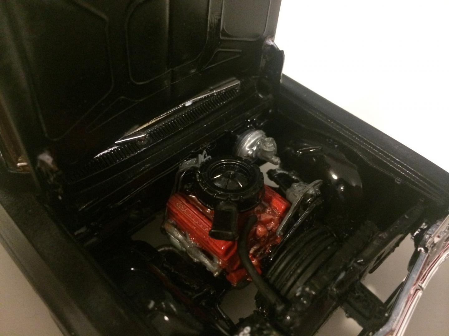 This was a combination of Revell's low rider and fosse impala kits. It has the factory 327 with the auto trans, it is lowered a little and is basically box stock other than the fact that it is 1.5" longer than normal. comments welcome