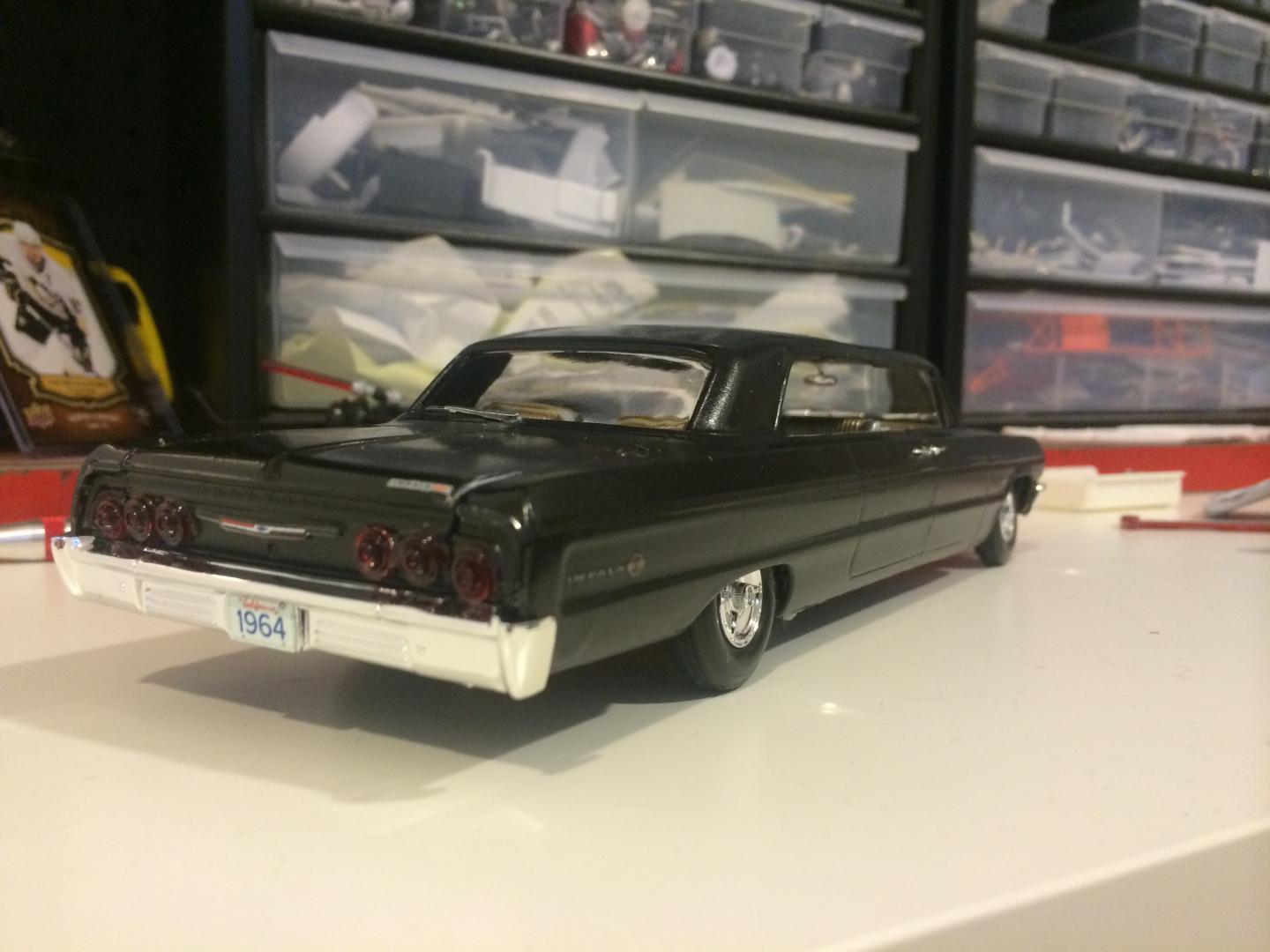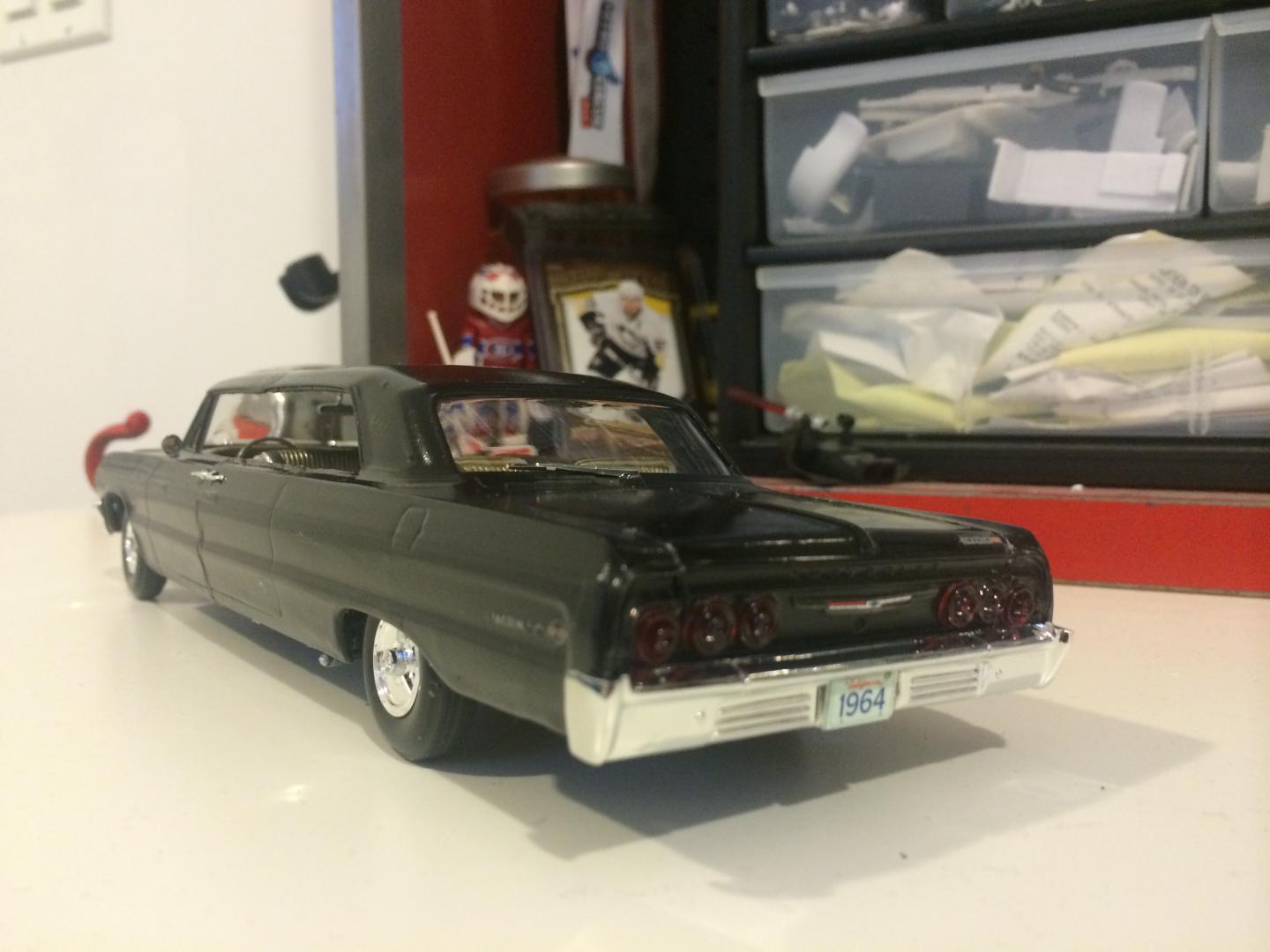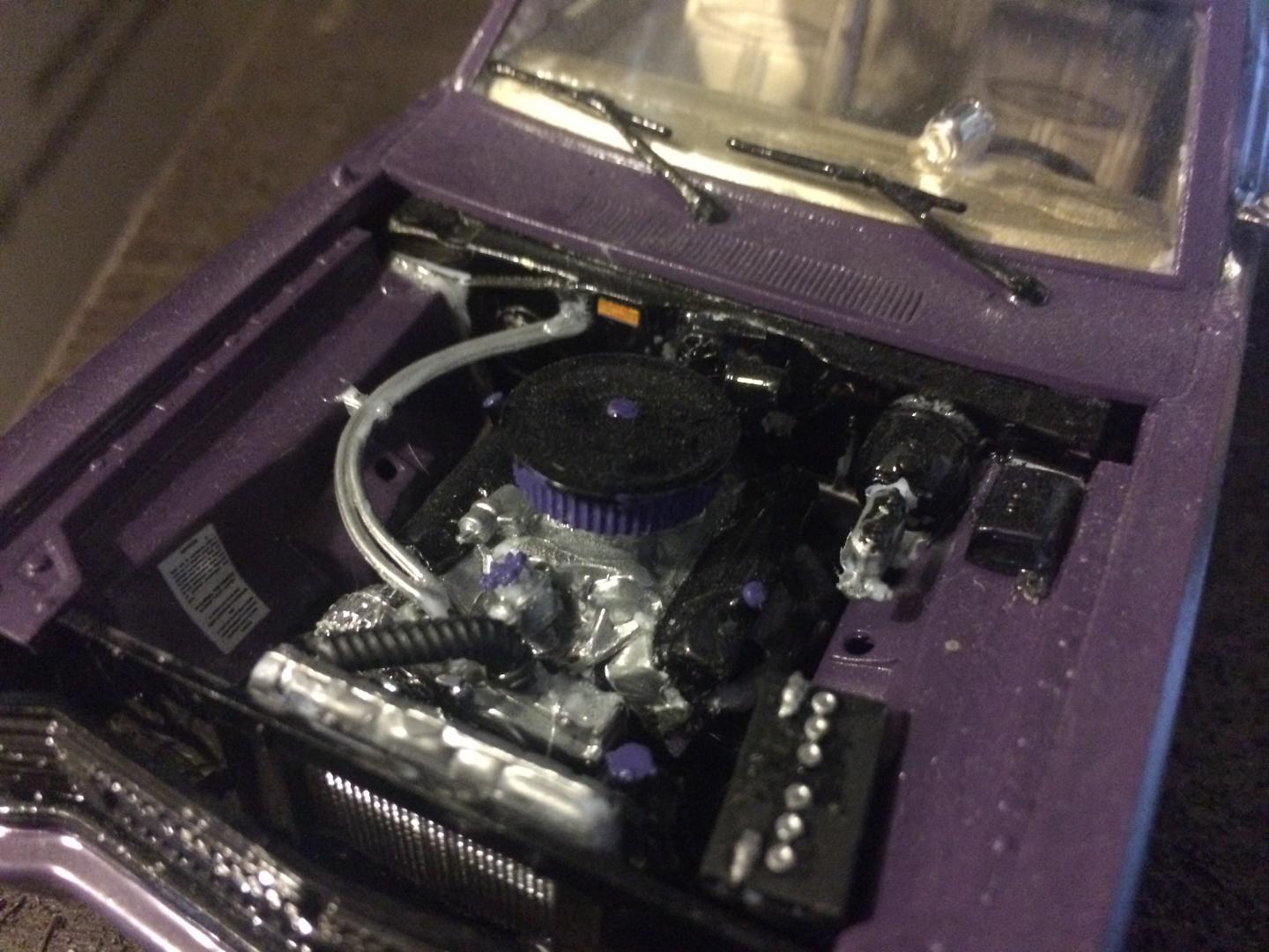 This was a combination of Revell's low rider and fosse impala kits. It has the factory 327 with the auto trans, it is lowered a little and is basically box stock other than the fact that it is 1.5" longer than normal. comments welcome
