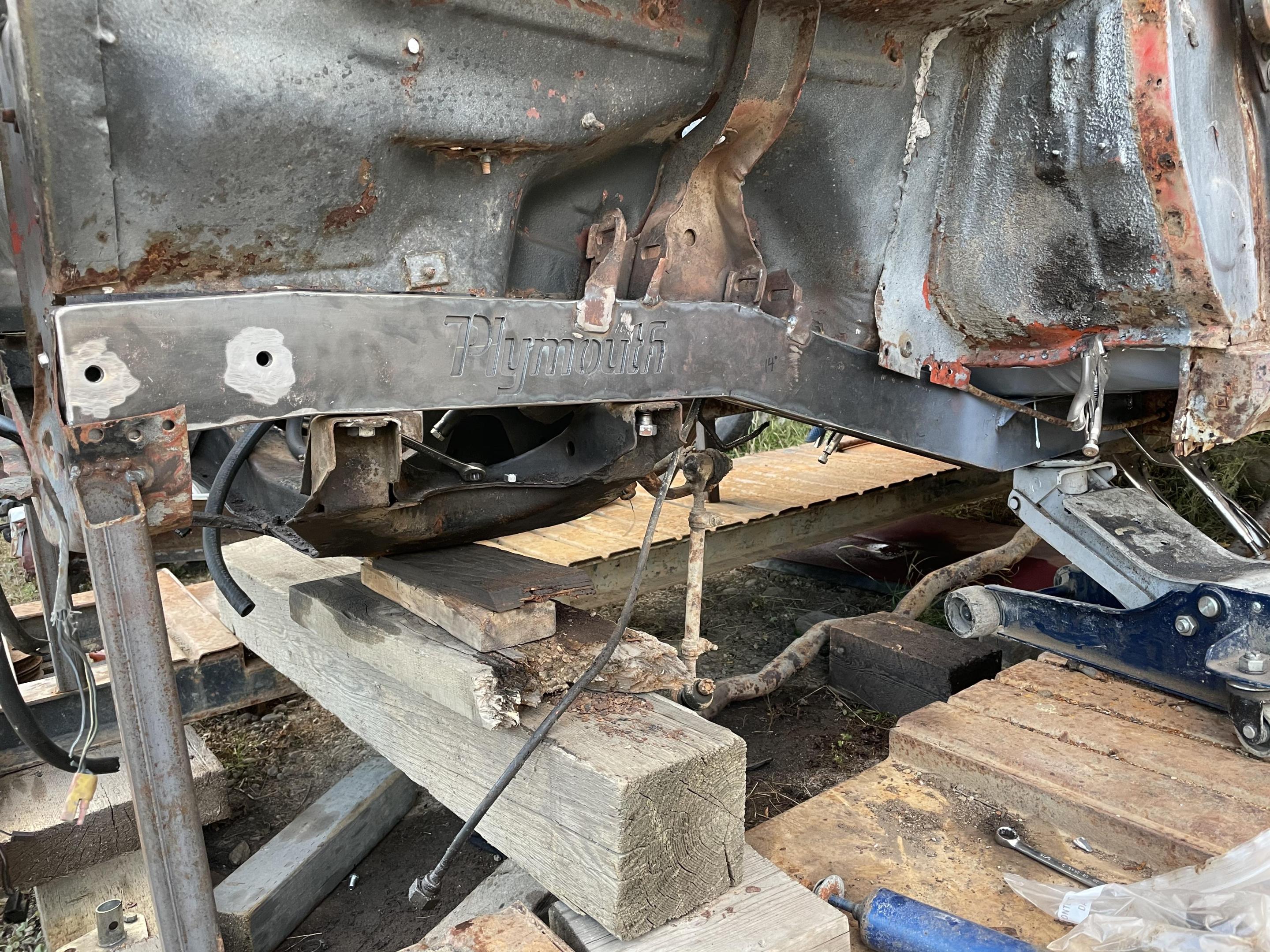 An unusually nice fall evening allowed me to get the frame rail and floor welded into my 71 Plymouth valiant