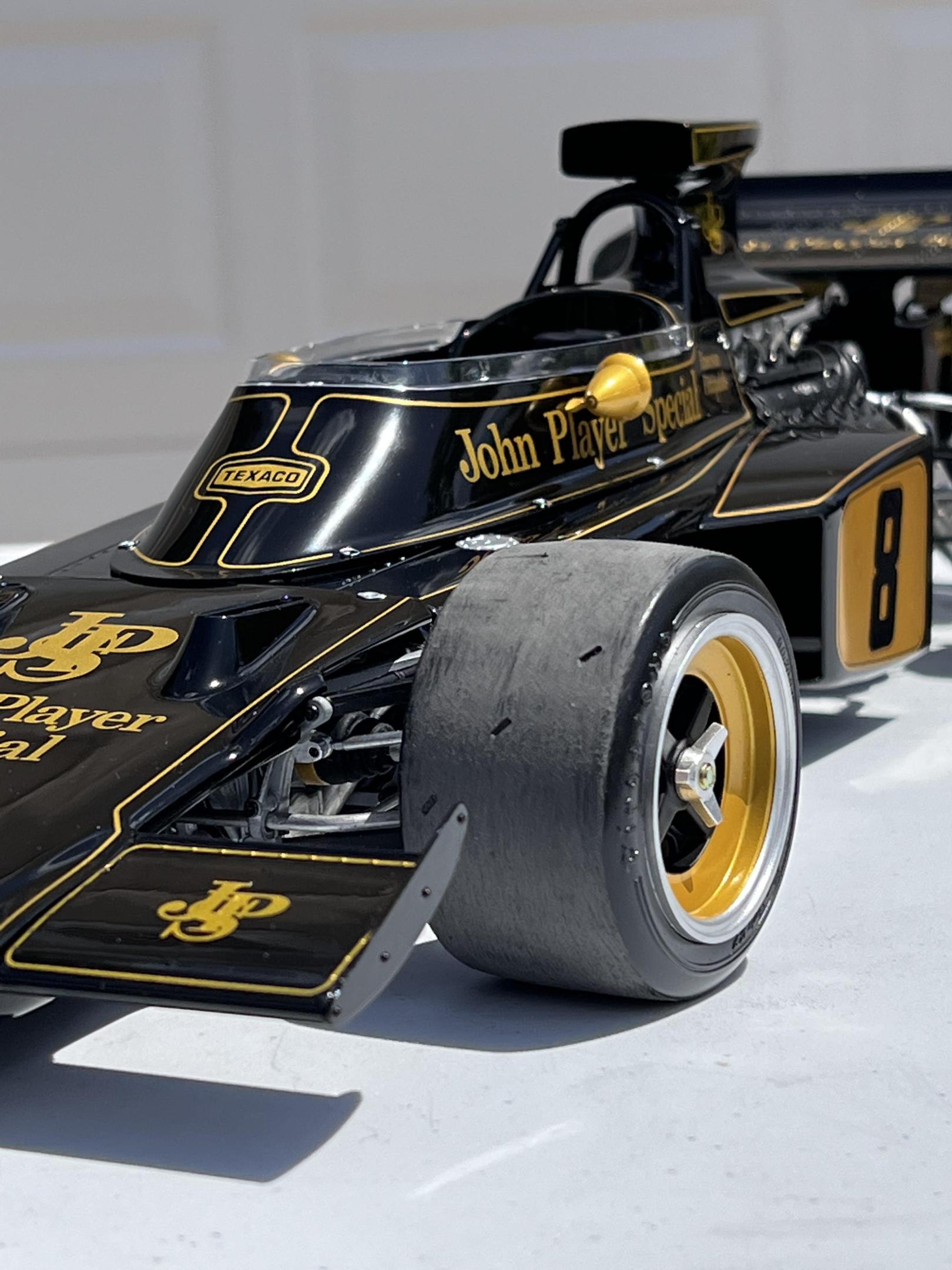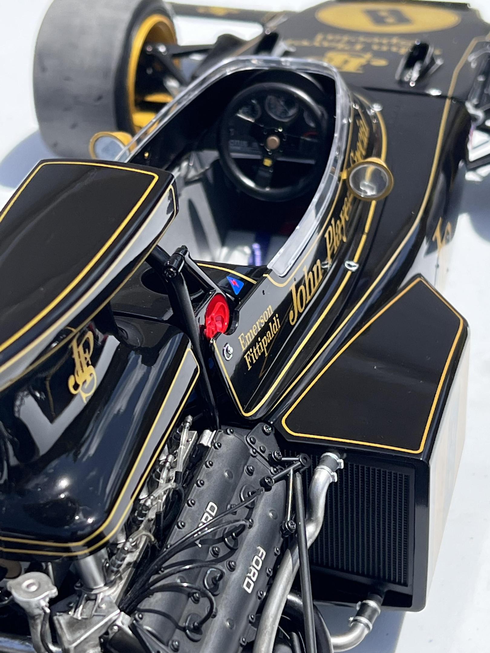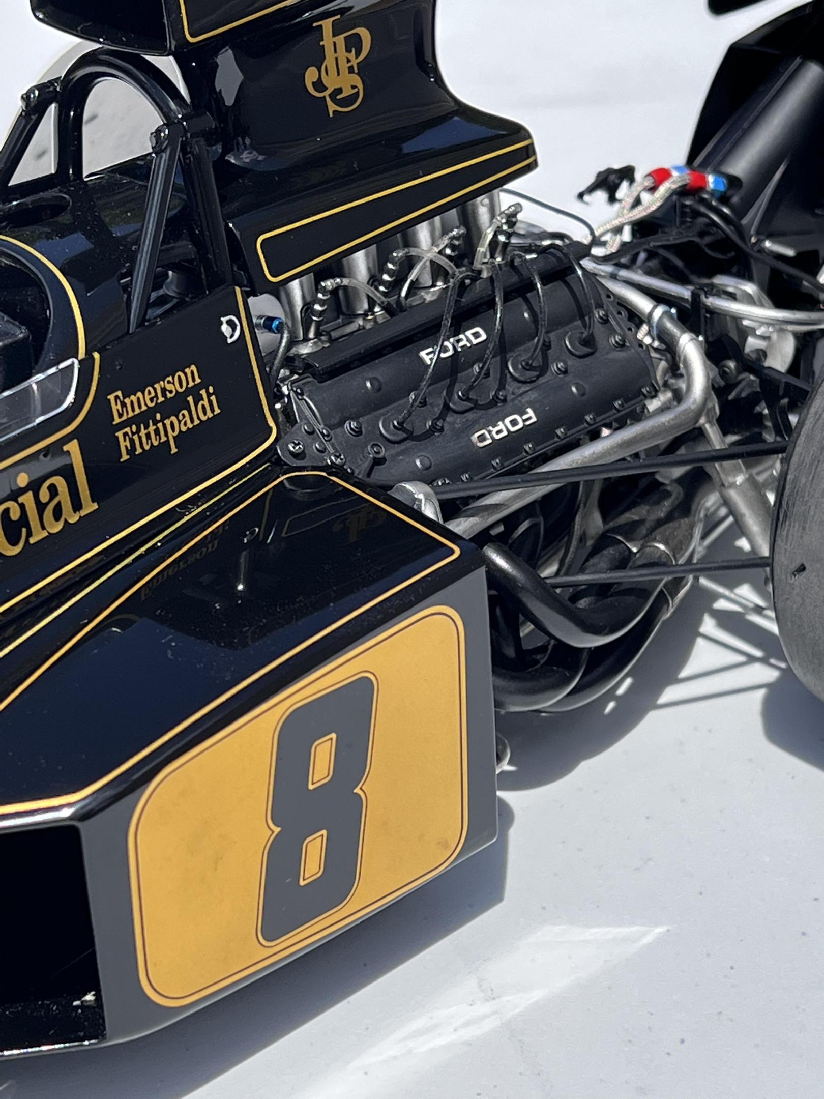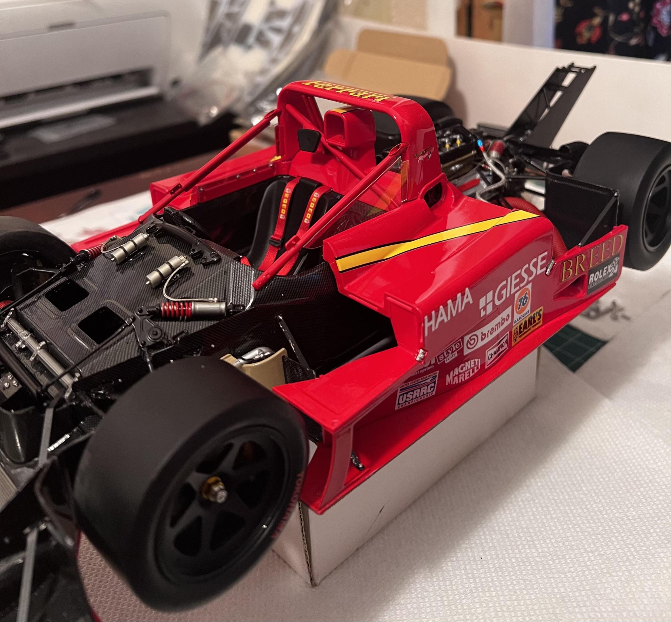 It’s been a wile since my last update. I hade to wait a couple weeks for a set of replacement decals, I re did the front, after looking at a couple other people’s build’s. I decided to add carbon decals to the bottom plate. As you can see the front suspension is installed and attached the engine to the tub. Then came all the little fiddley bits that add to the realism of the car. Next on the menu is to install the gearbox and start on the body panels. Till next time ? -
