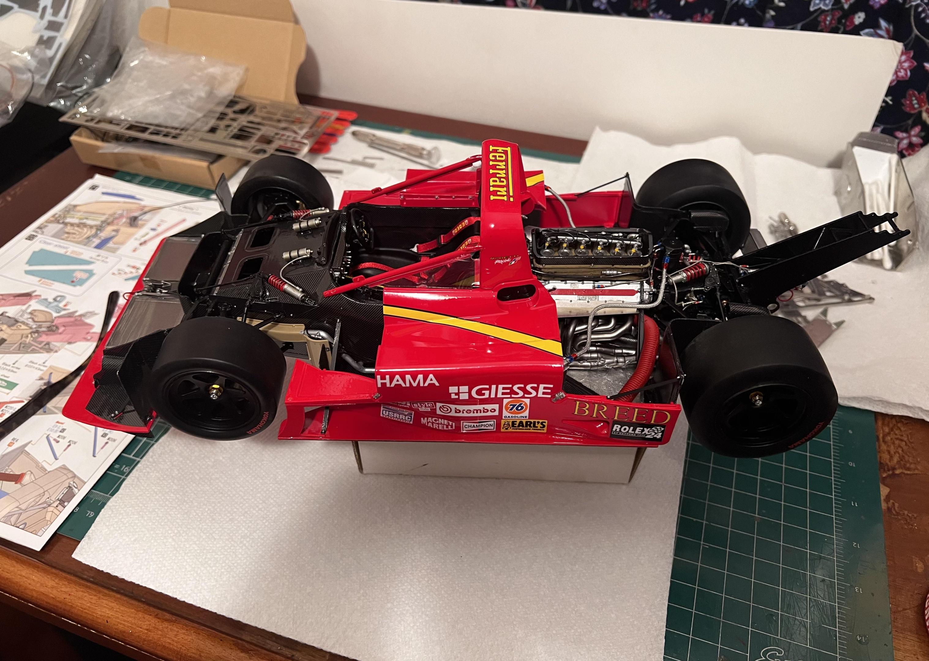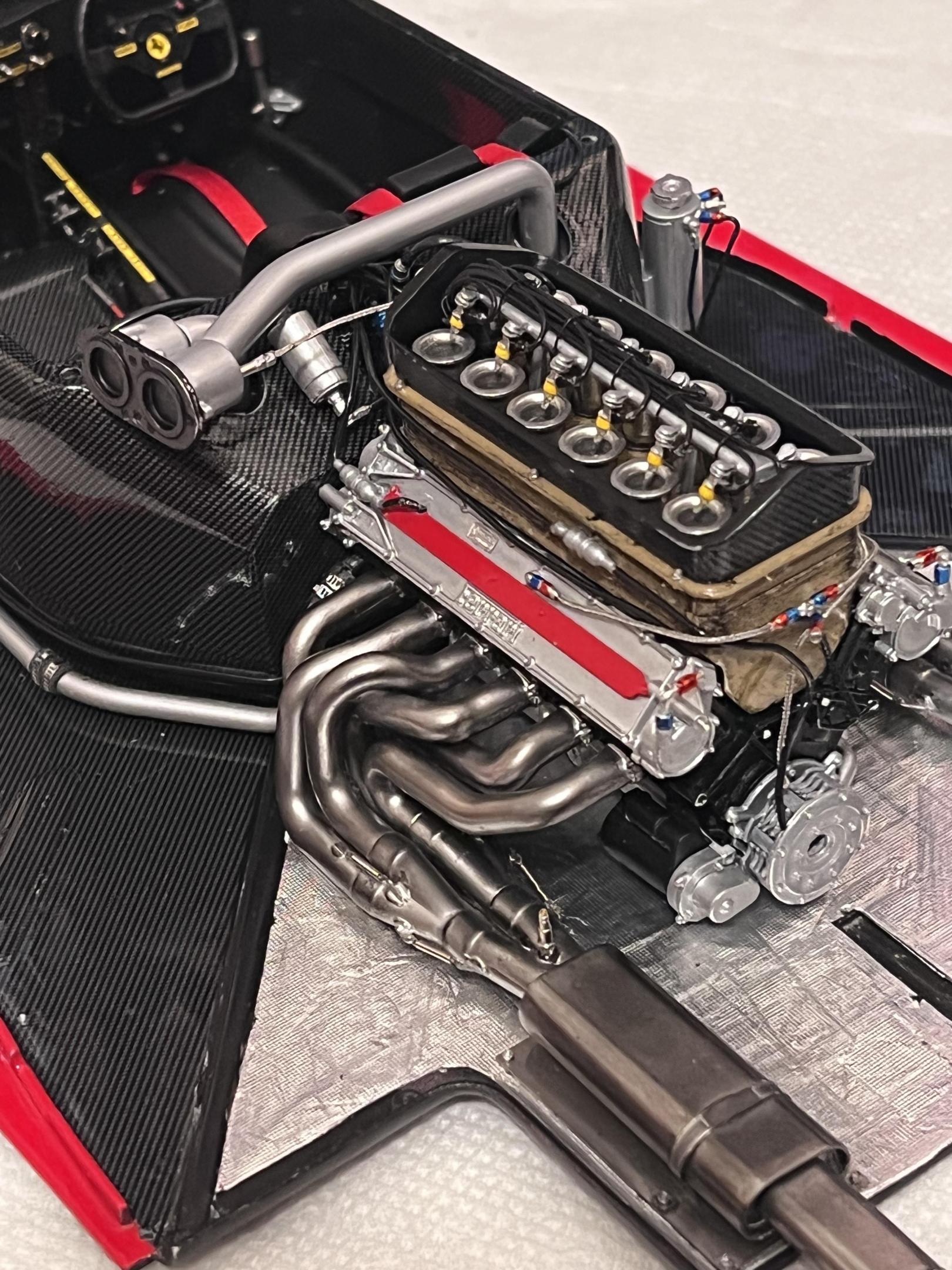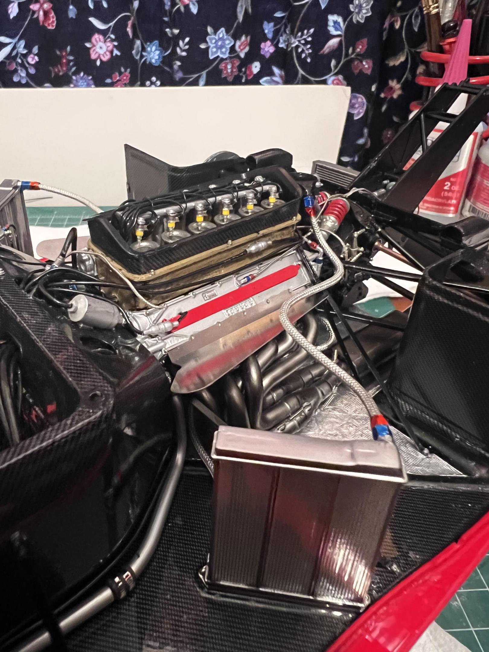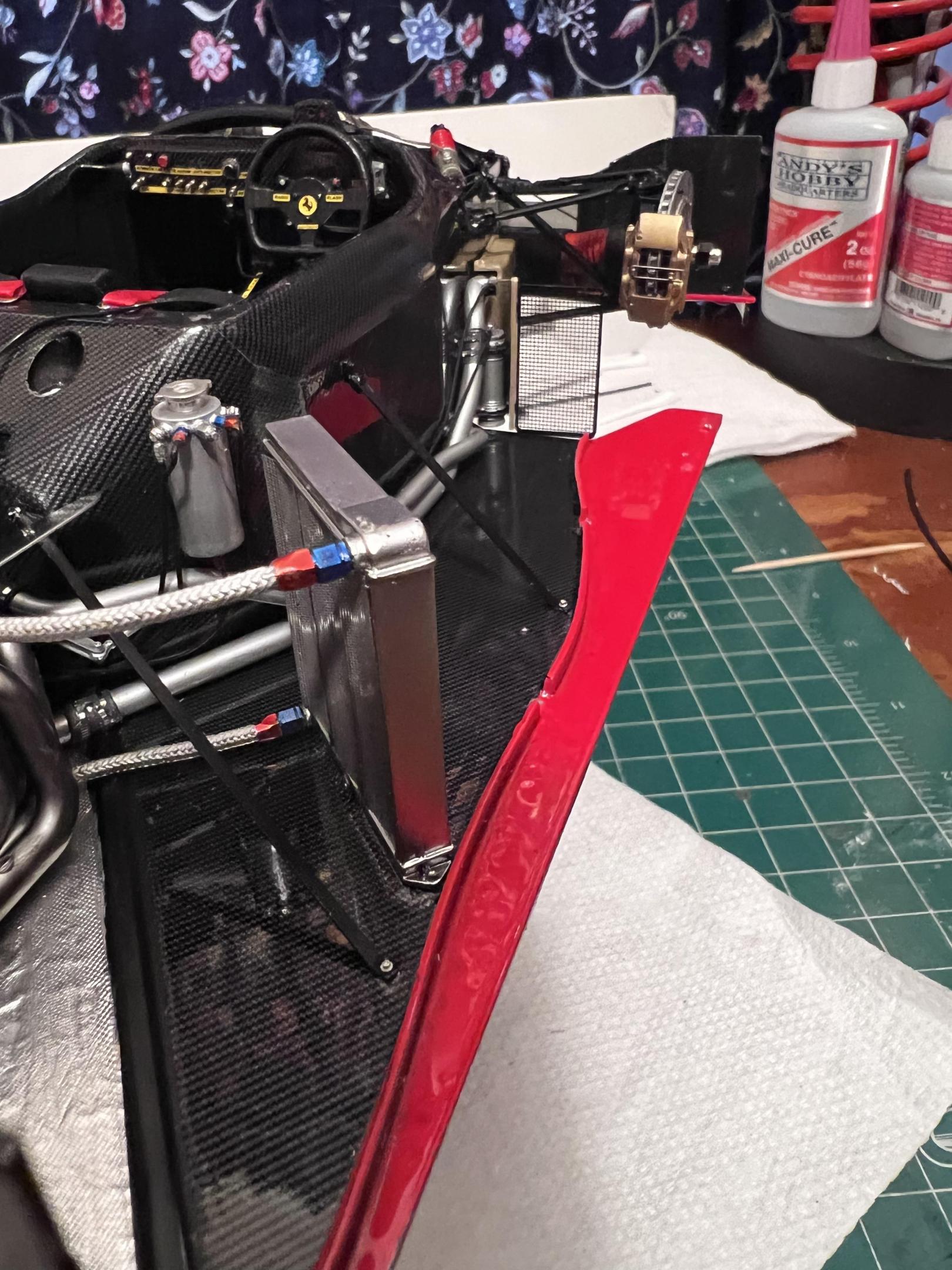 So now that the lotus is finished and I am back to the Ferrari! I managed to get the gearbox attached some support bracing and a bunch of little detail parts on. The side oil coolers also installed. Now onto the body panels ? -