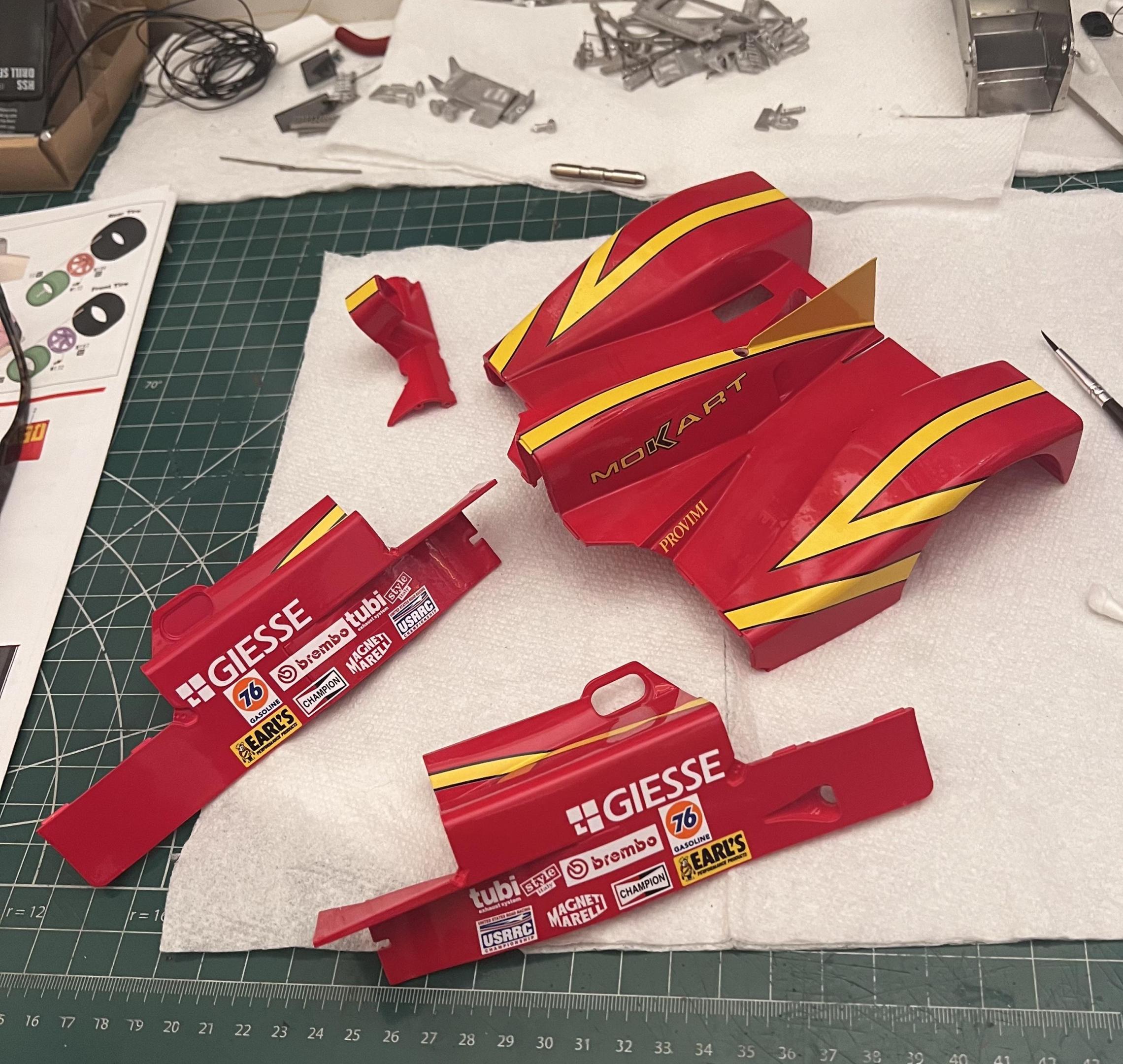 Well it’s been a minute since my last update, I have managed to put the wheels and tires on, got the body panels painted and cleared. Now a little decal session. I have been pre occupied with other projects, hopefully I can stay on this till it’s completion ? probably not …. -