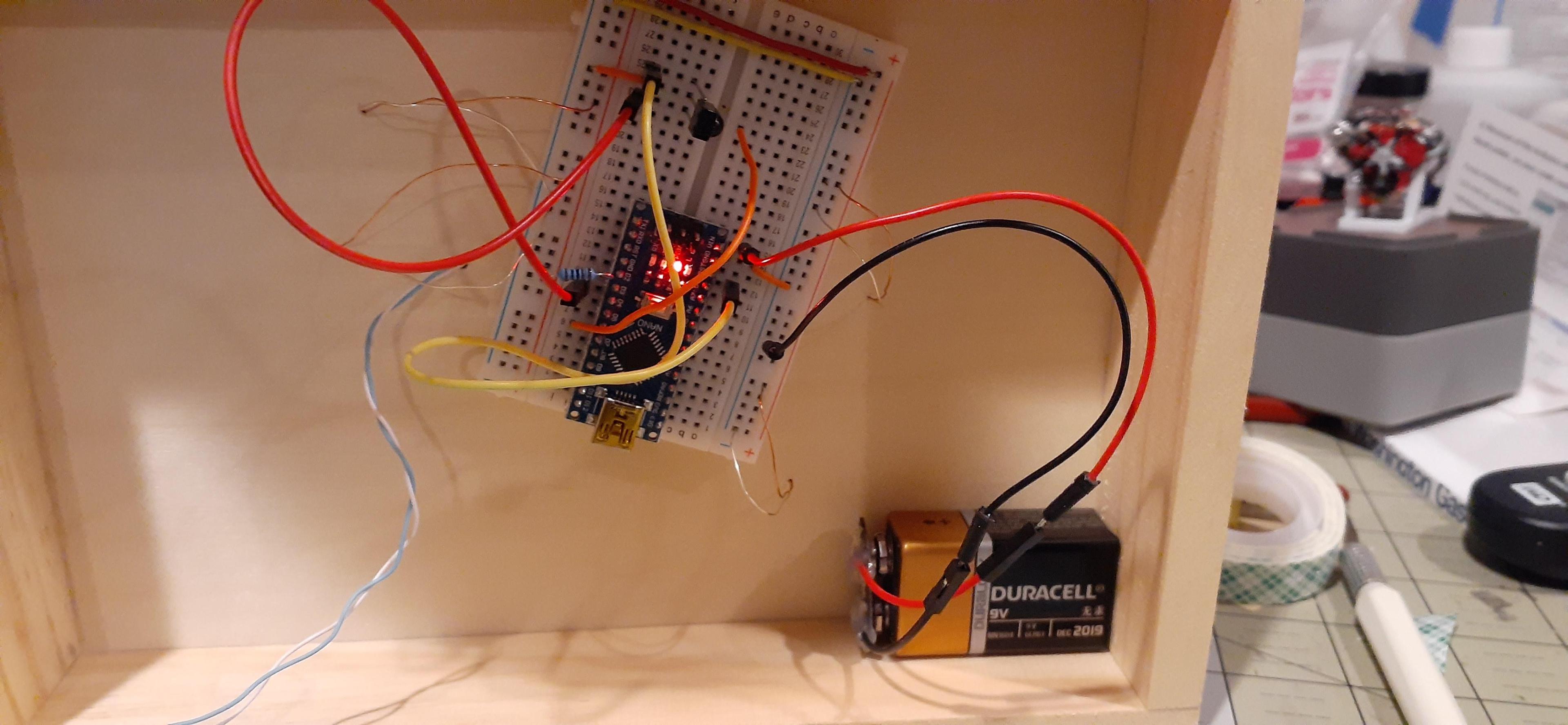 Stepping up my game just a bit... added a remote start using an Arduino mini and an old remote control. 4 lights working with a 20 second shut off. Its programmable so I can make each light come on and go off at will or in any sequence. The display box is from Michaels.