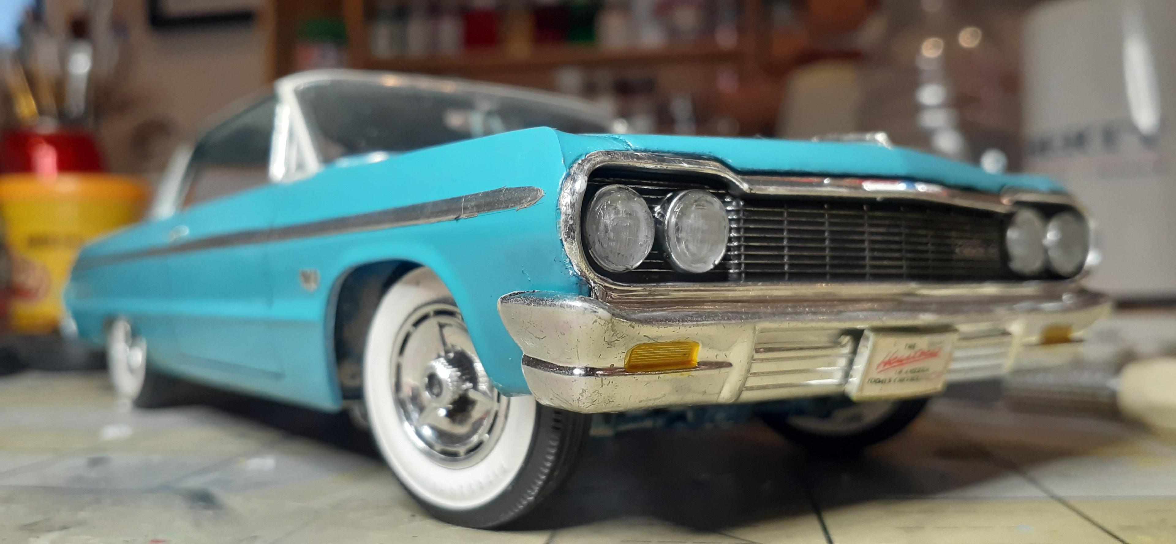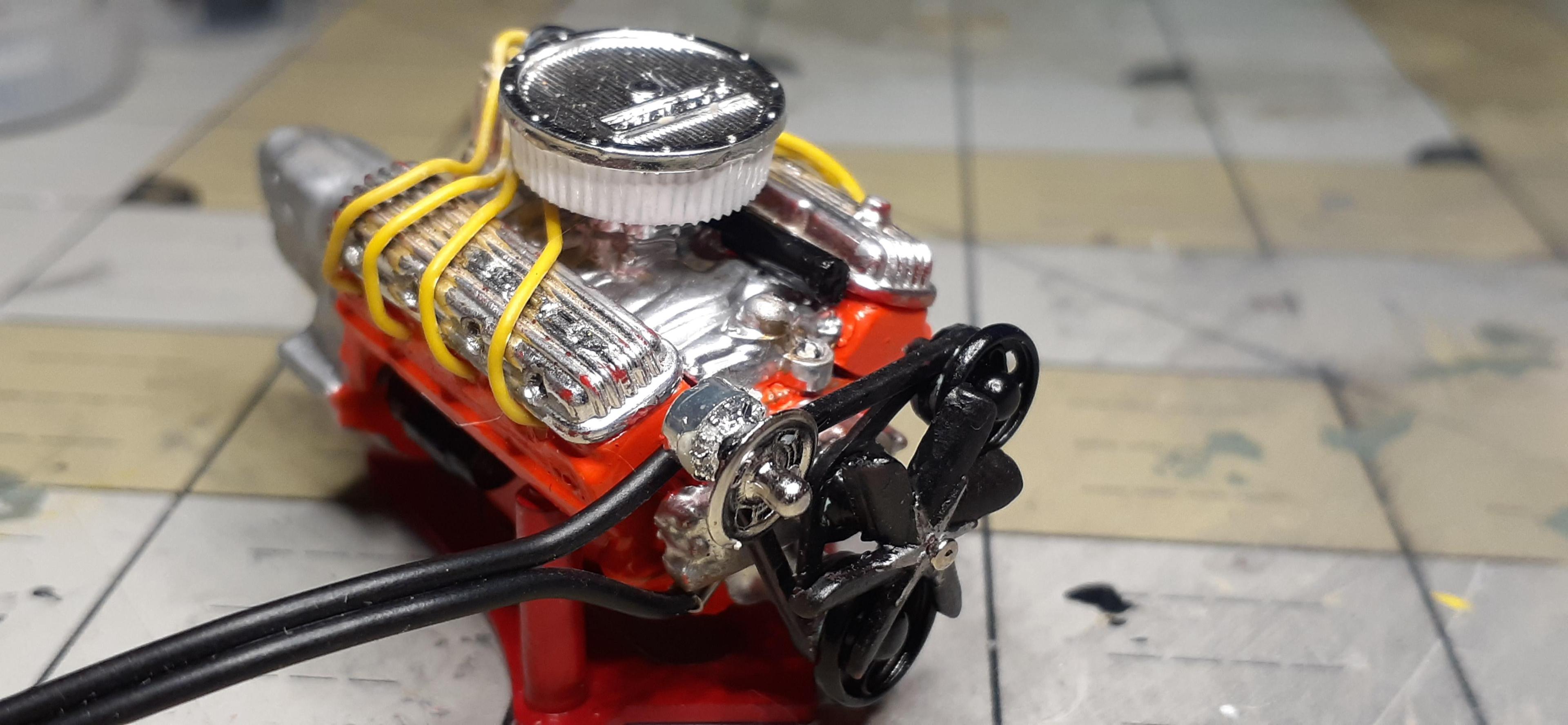 Decided to strip the interior and chassis. Interior will now be white with grey carpet. the original paint was enamel. It was thick and almost filled in the panel gaps. I did the best I could to try to reveal them. The paint has its flaws but i dont want to get into stripping it. I was hoping for a quick rebuild on this one. i went after the grille with flat black acrylic and some water to give it some depth Getting the engine sorted out. Added new wires, pulleys and heater hoses. I found these at Wally World. I'm using them as hose clamps. Pretty neat Stay Tuned...