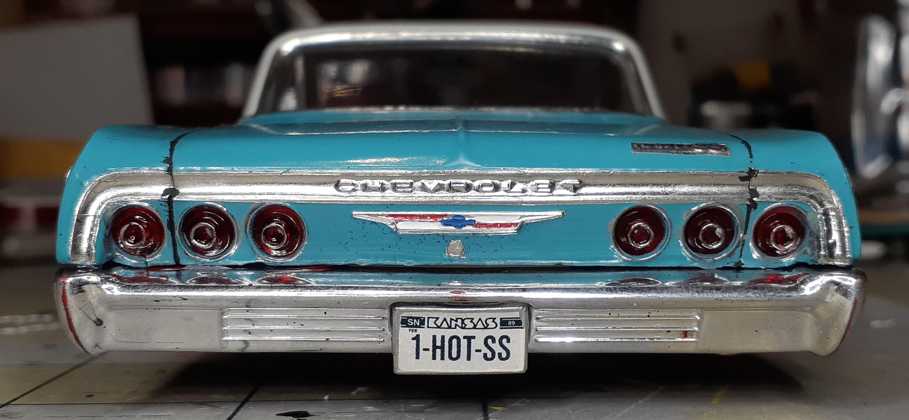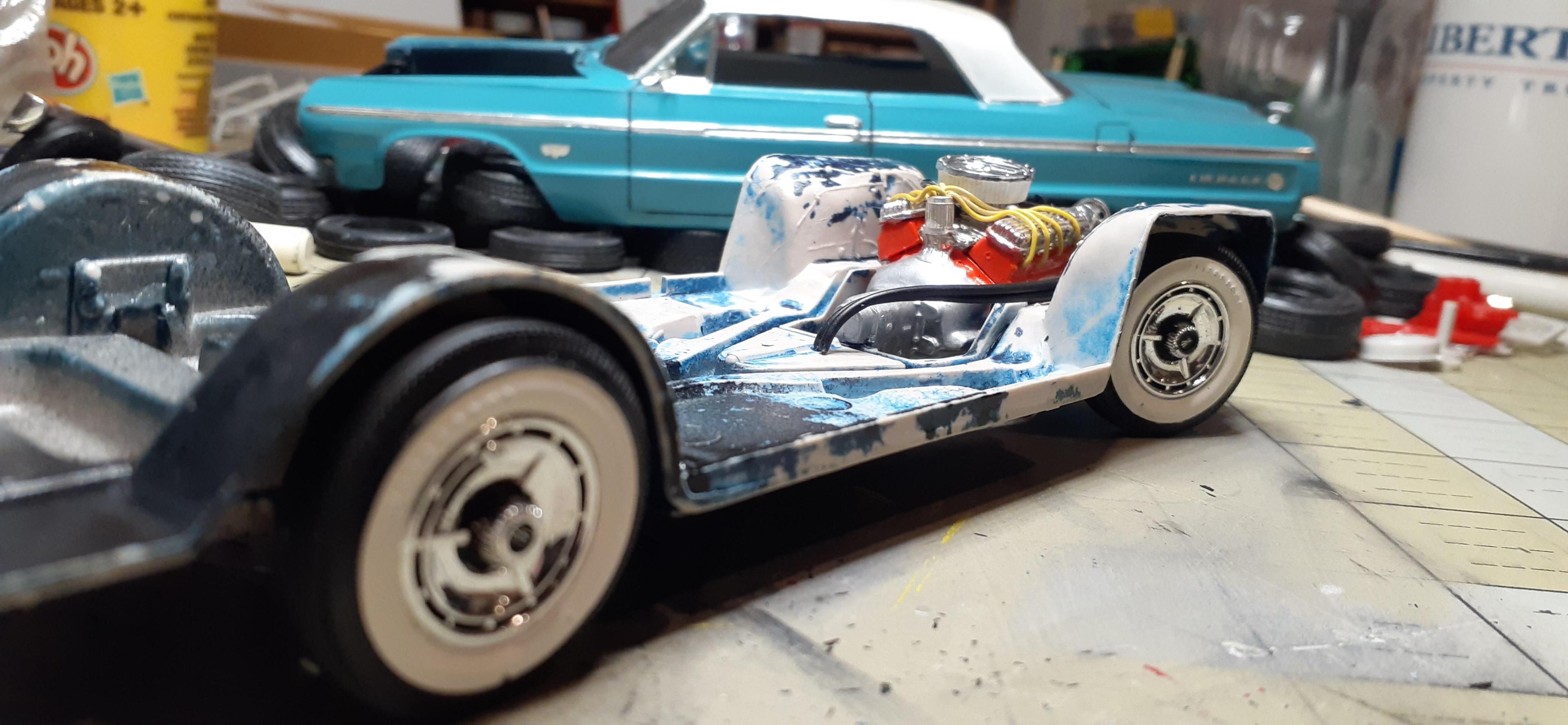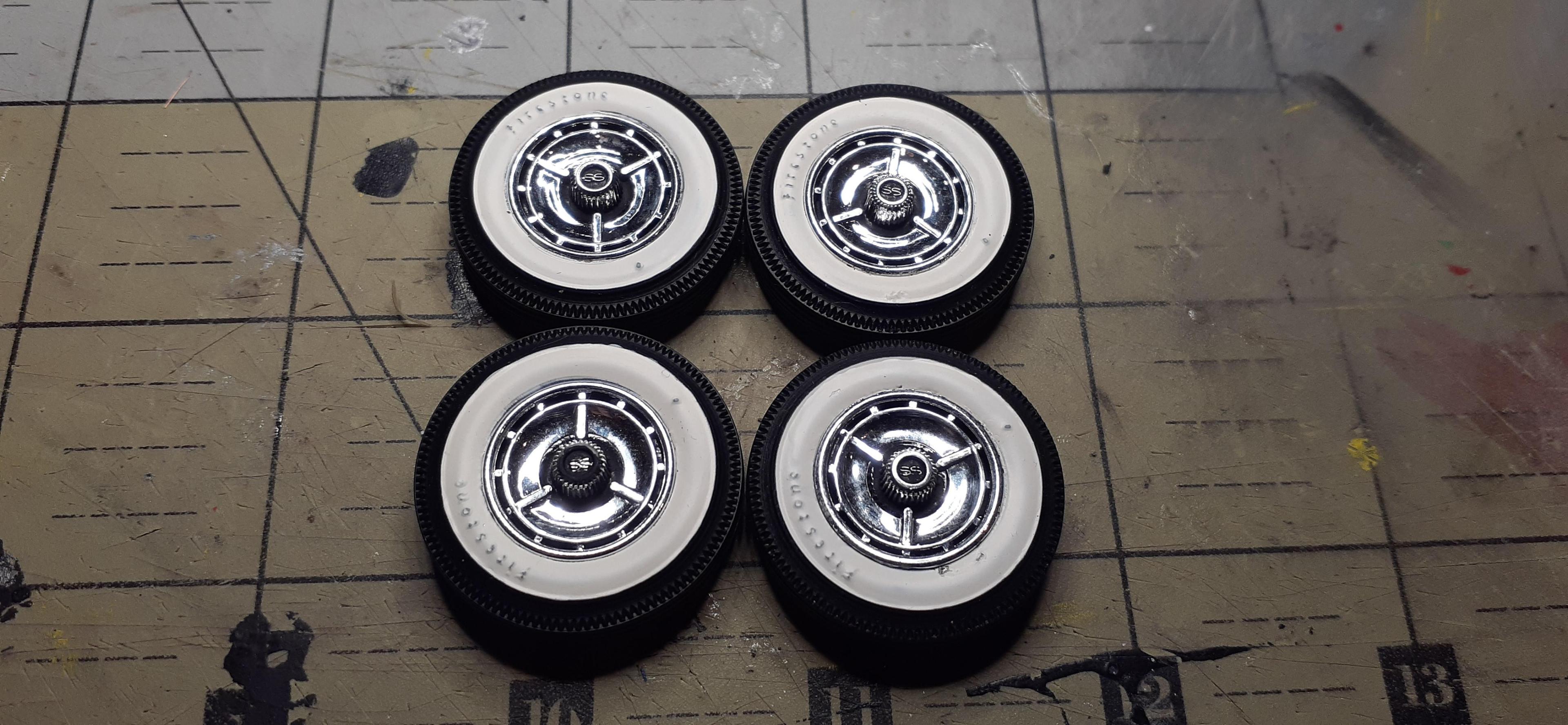 While the interior and chassis is in the stripper, I tried to take it one step further by detailing the emblems. Hard on these old eyes. Also tried to give some depth to the SS hubcaps. Also working on the steering components