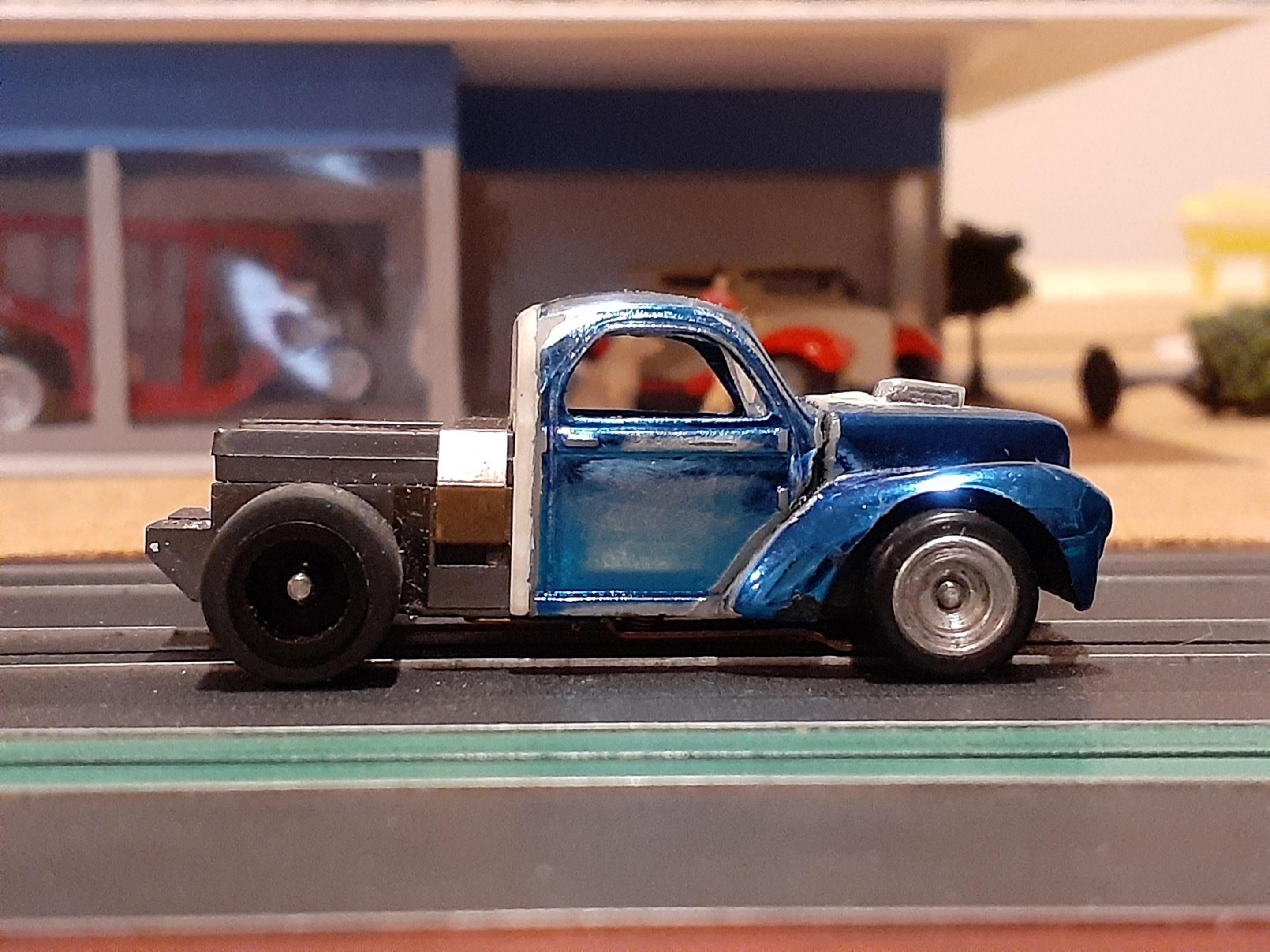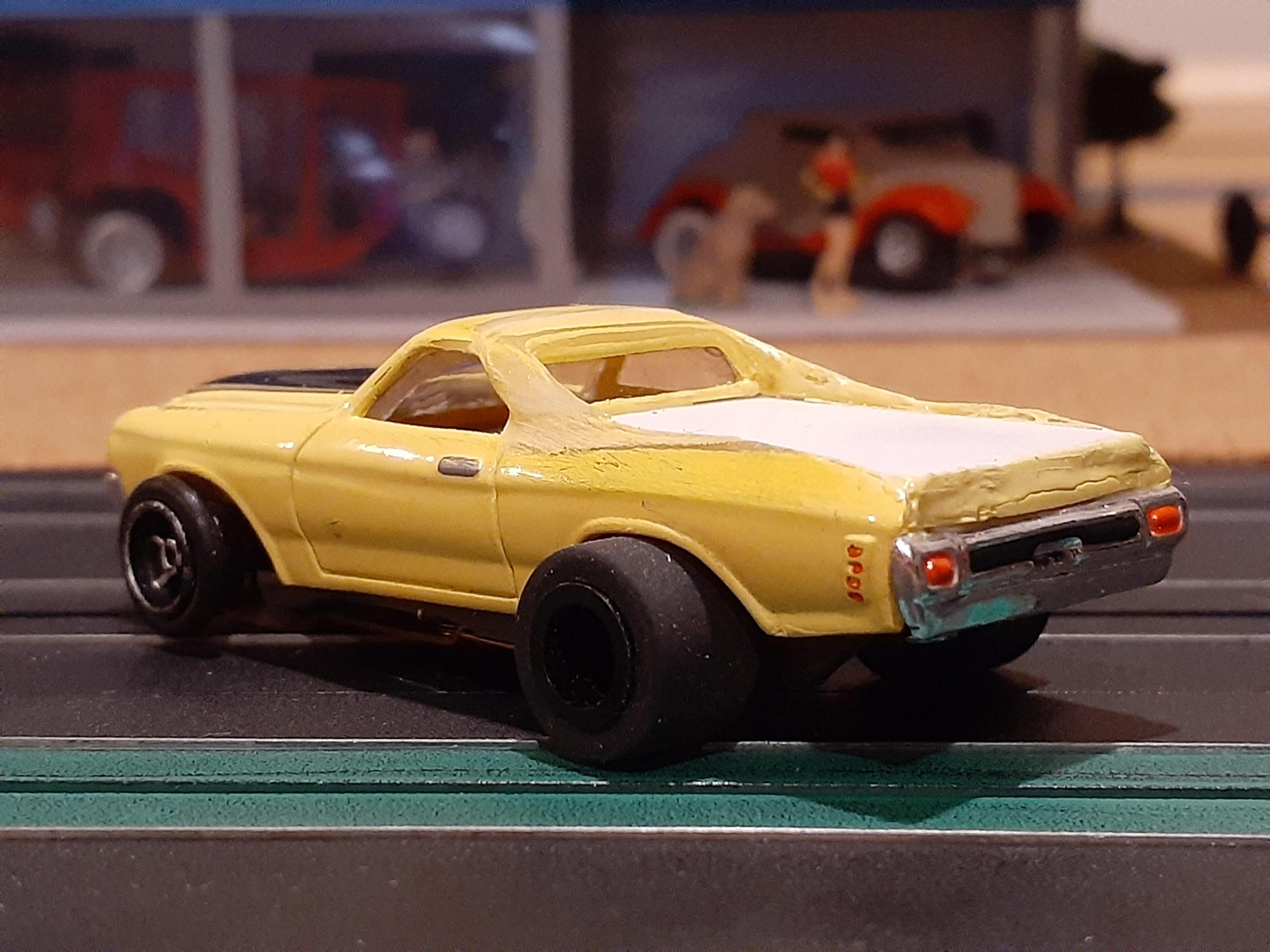 This started out life as an Aurora Model A Panel. I had a spare lying around so I cut off the back half, chopped the top and turned it into a truck.