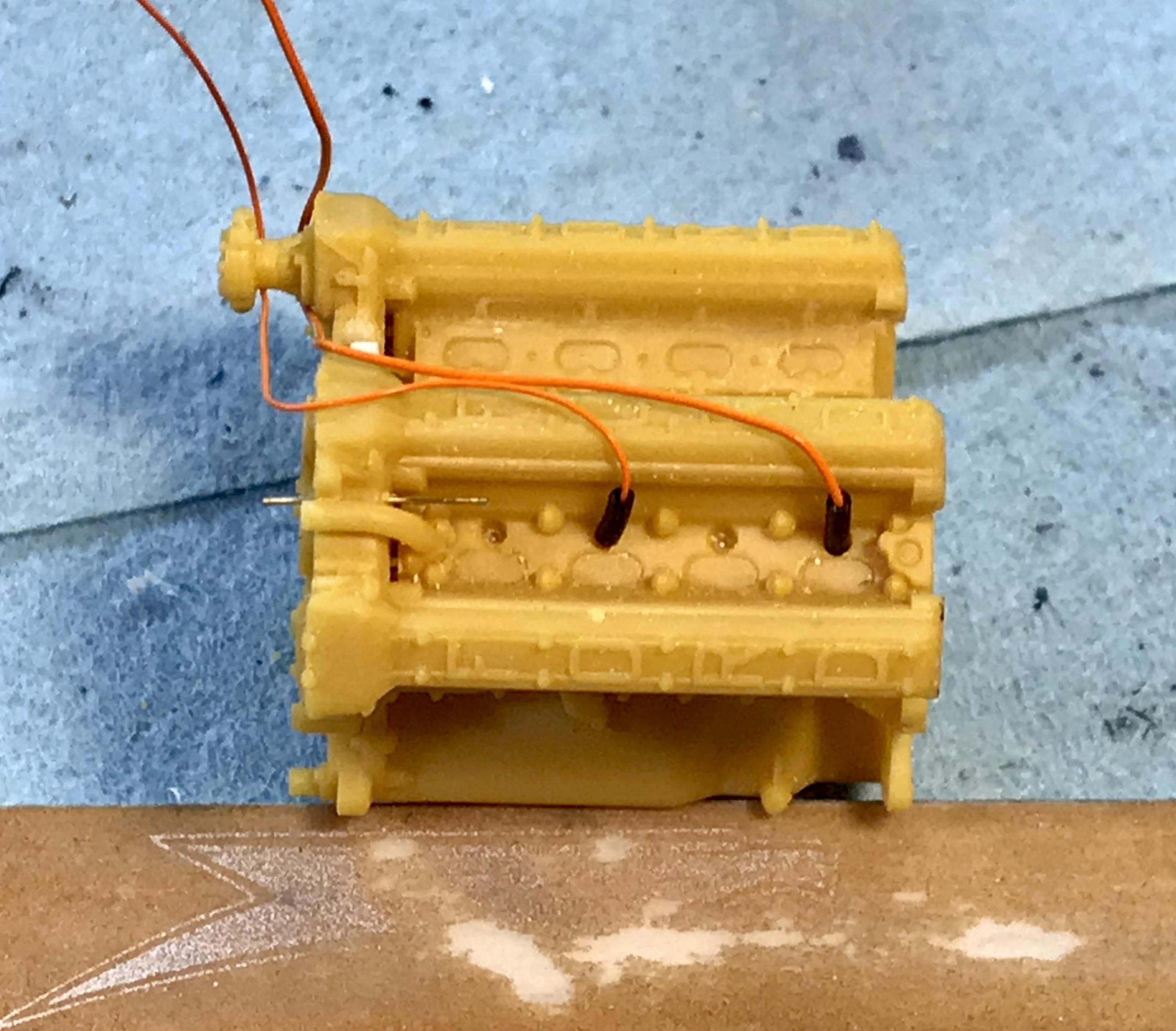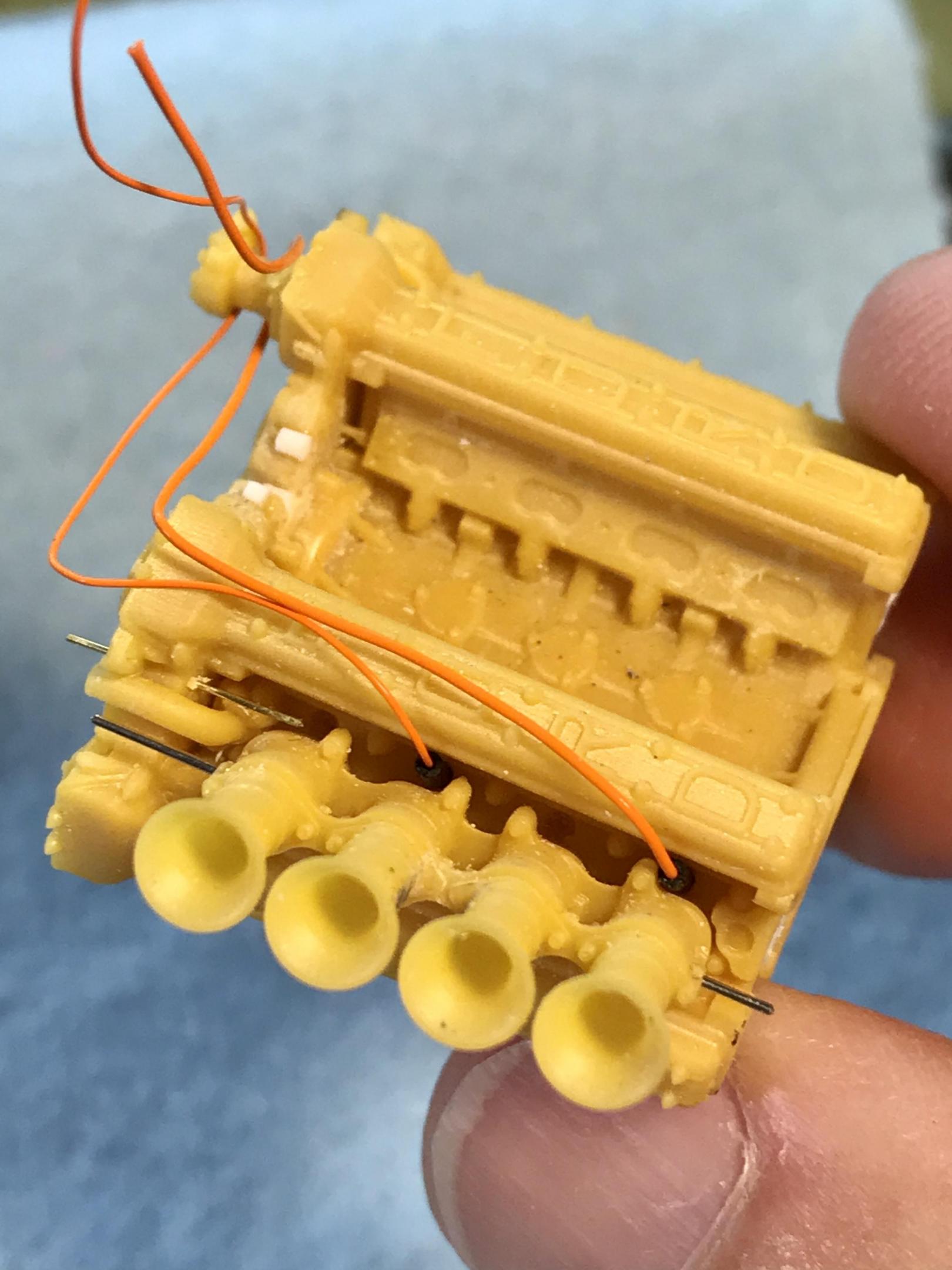 Just ordered mine. Was not aware of the reprint. Thanks again Some slow going. Removed some of the valve cover bolts and drilled .0125 holes for some .012 nickel rod- then cut and drilled .015 by .040 evergreen strip these will Serve as the bases for the plug looms - which are on their way from detail master. Also placed some .047 plastic plugs into the cylinder head to hold the base of the carbs and you’ll notice from the mock up shot the stagger of the cylinder heads. Not sure that the Gurney Eagle kit got this right. - will check