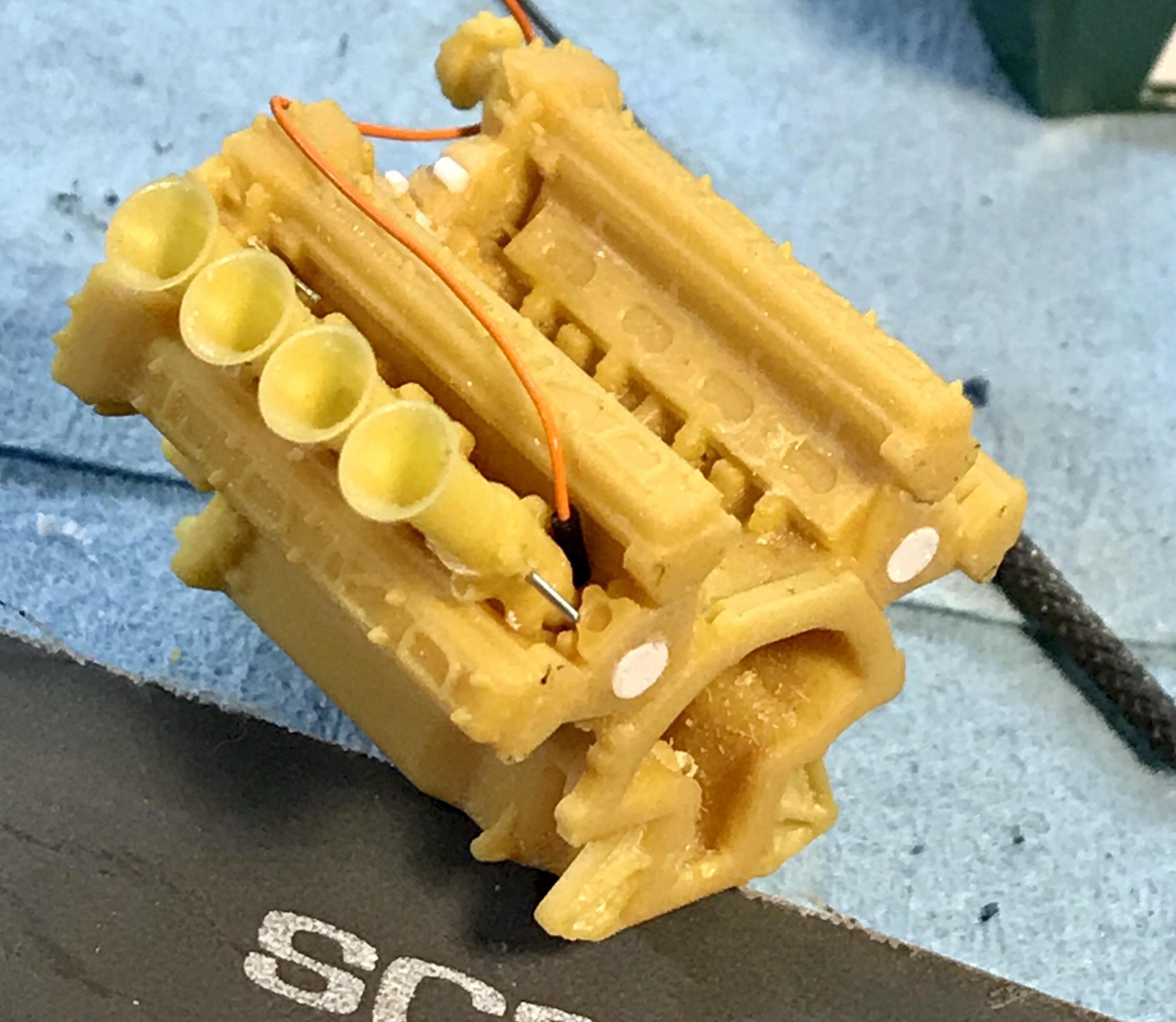 After an alcohol wipe, some toothpaste and an old toothbrush - both the headers and the engine block are ready to go. Once you cleanup the back of the engine the detail on the engine mounts is very good. Despite the fact that the engine is “printed” from this projection ...