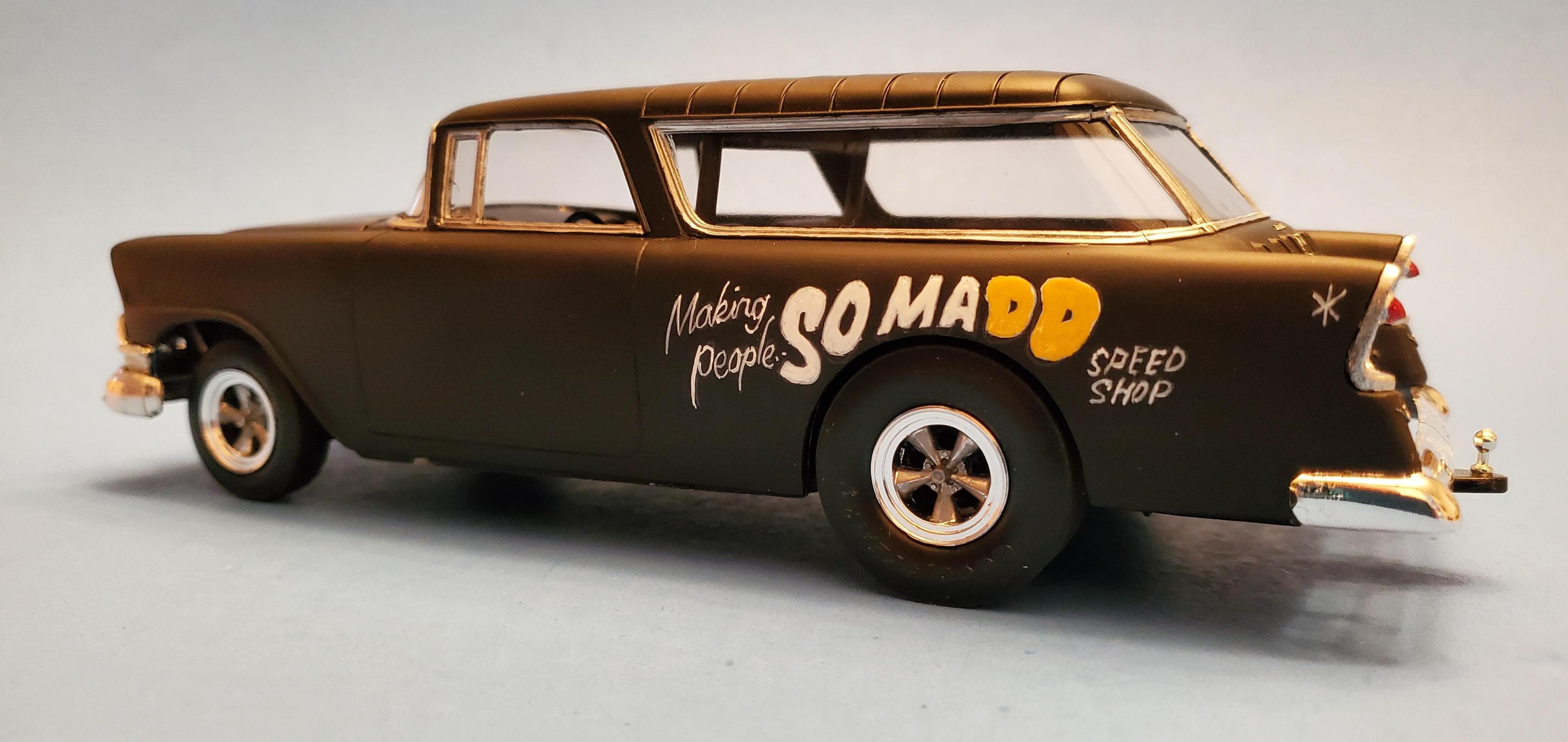 I built this Nomad as part of a group build and to practice lettering. It's the tow vehicle used by DD Speed shop on his YouTube channel. He specializes in tri-fives. Check out the channel if you have a minute. His 1:1 car is actually a 55, but this 56 was all I had to work with!