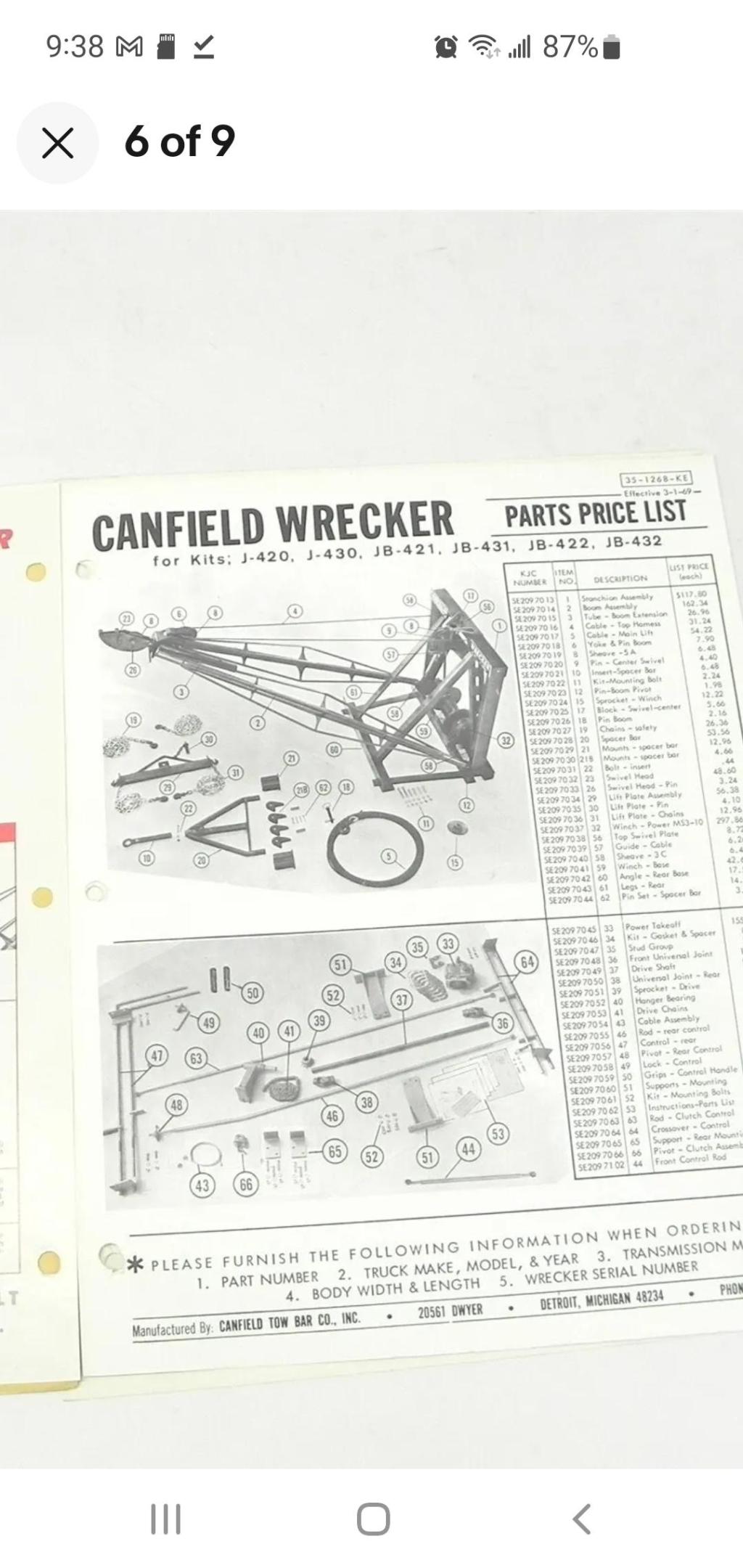I researched the wrecker as much as I could before attempting the project. Here is a parts list from Canfield Wreckers. It is the closest I could find to the 1:1. Apparently they were mostly used on Jeeps. -