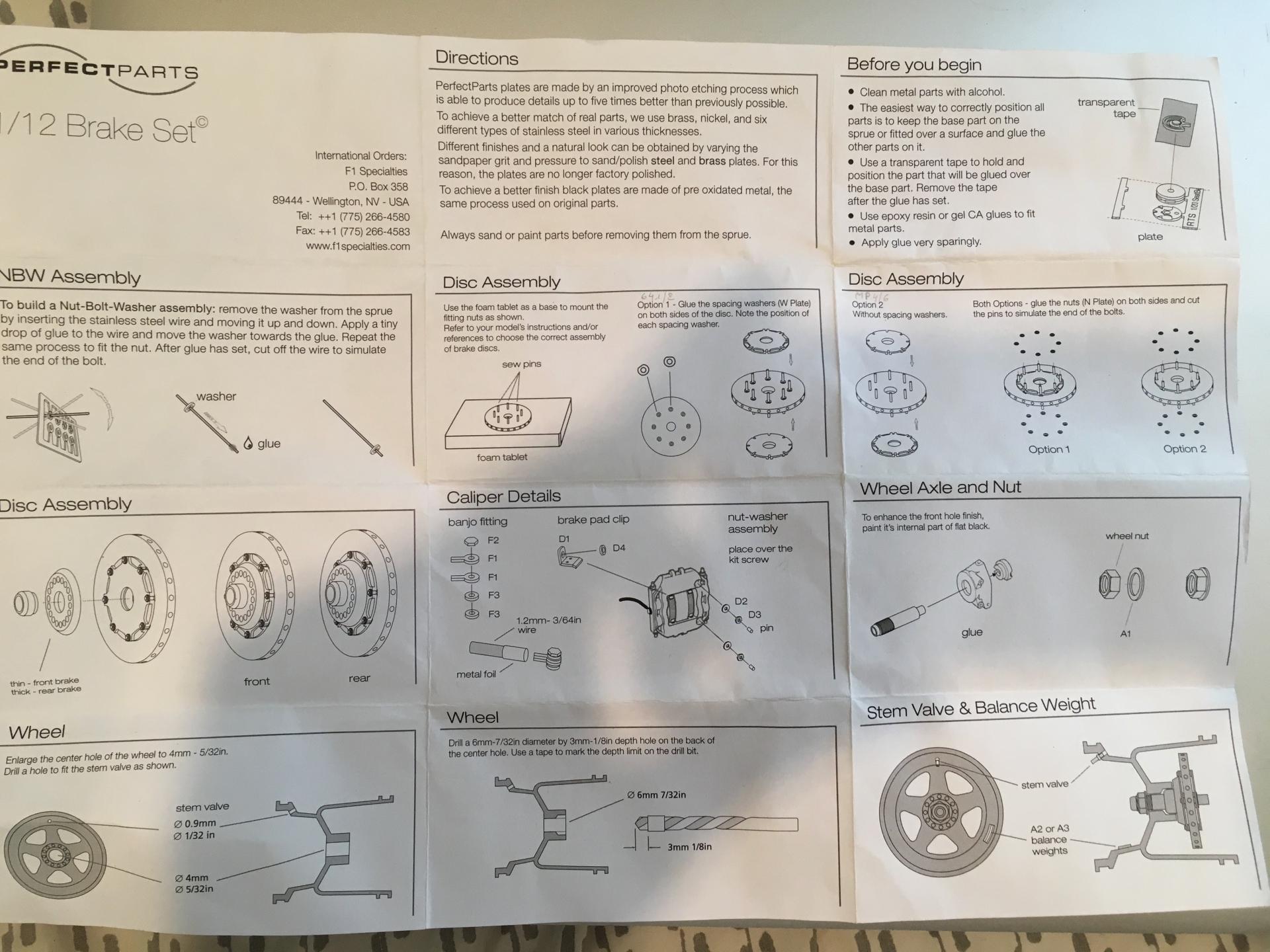 Hello! I very much appreciate the bump and the interest in this project. Residency has been very time consuming and I have not had much opportunity to get to the workbench. However, I have been devoting a bunch of thought to the project behind the scenes. Lots of research and mentally planning out this project. I have resumed construction recently and will be posting new photos. I have been in touch with Paul Raterink over the months, too. Very nice guy. We spoke in December. He sent me a bunch of parts that I also plan to use; among which are his really nice anodized aluminum rims: I am completely re-doing the wheels I built above. I bought a second kit ($140) for new tires and to have a full complement of spare parts. Paul's rims fit the kit and his own brake set, but not the PP set. Thus, I have asked him to use his machining equipment to modify my rims for me so that they can fit with the perfect parts brake components (essentially I have asked him to machine as per the PP instructions above). In my research, I realized there were several versions of the 641: the vortex diffuser on the front wing was +/- Prost and Mansell had their own windscreens and headrest cushions, as is made obvious by the kit instructions The cowling had airscoops near the rear wheels that were +/-. The example at the MOMA has these. A few rear wing types were used (discussed later). The outboard camera wing was +/- I am planning on building the version of the Ferrari 641 that Alain Prost drove when he and Senna crashed at the 1990 Japanese Grand Prix. To model this car, three major modifications will be need to be made to the kit: 1. The rear wing will need to be modified [1] by making the side wings rectangular rather than trapezoidal and [2] adding a custom AGIP logo on the lower wing, as well as adding an extra wing to the overall assembly. I am in touch with Indcyals about the decal. 2. Air scoops on the upper cowling over the engine will need to be cut out on each side. 3. A camera pod on the starboard side will need to be scratch-built. Thanks