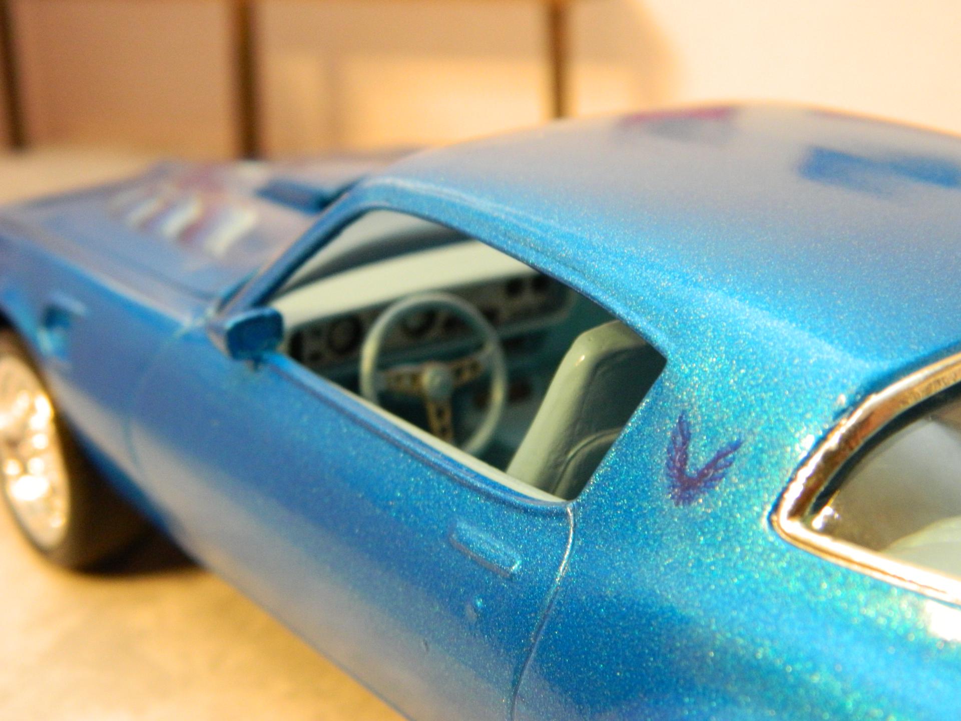 Thanks David. I used micro mesh pads after the paint, starting at 4000, then 6000, 8000 and 12000, then Novus #2. I then applied the decals and cleared. I used 6000, 8000, and 12000 on the clear, then Novus #2 again. There are still some scratches on the clear, but I think it looks good enough for me. I haven't waxed it yet, but I will eventually after I get ahold of the Trans Am scripts and get them on. All the engine detailing is molded in except the plug wires. I just used a couple of different sharpies and traced over the outlines. I was very impressed with the details on this kit, and it was pretty easy to make it look good.