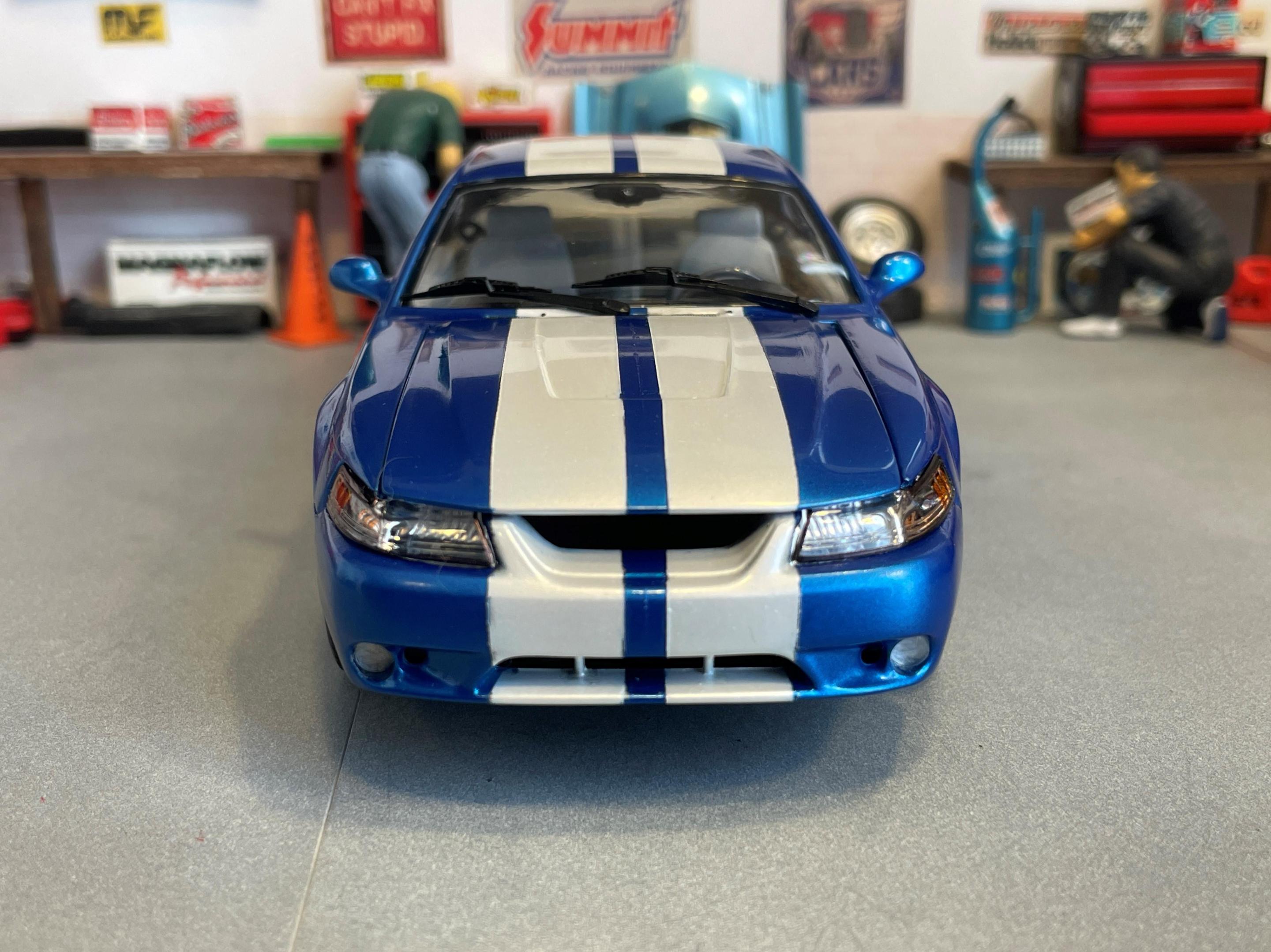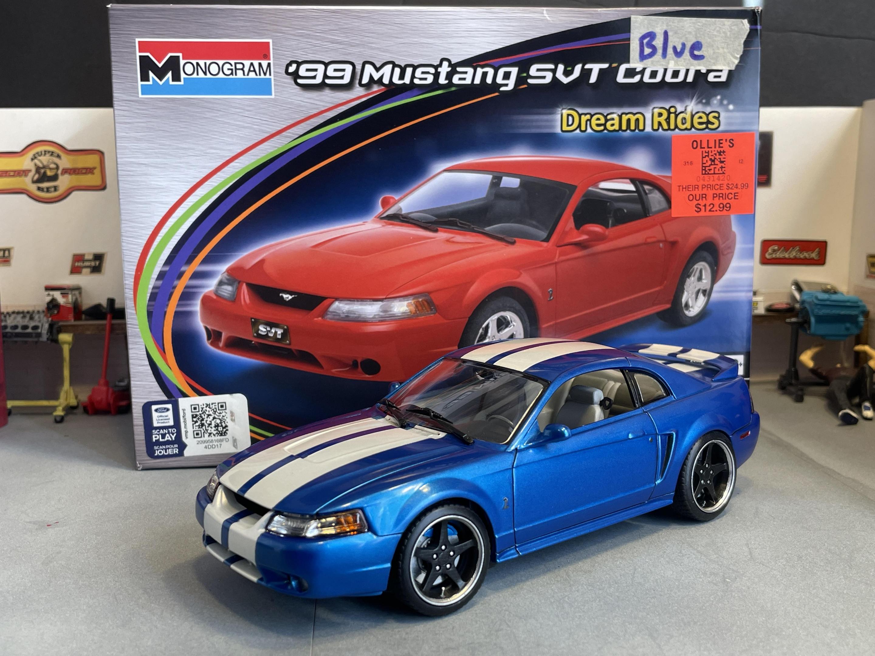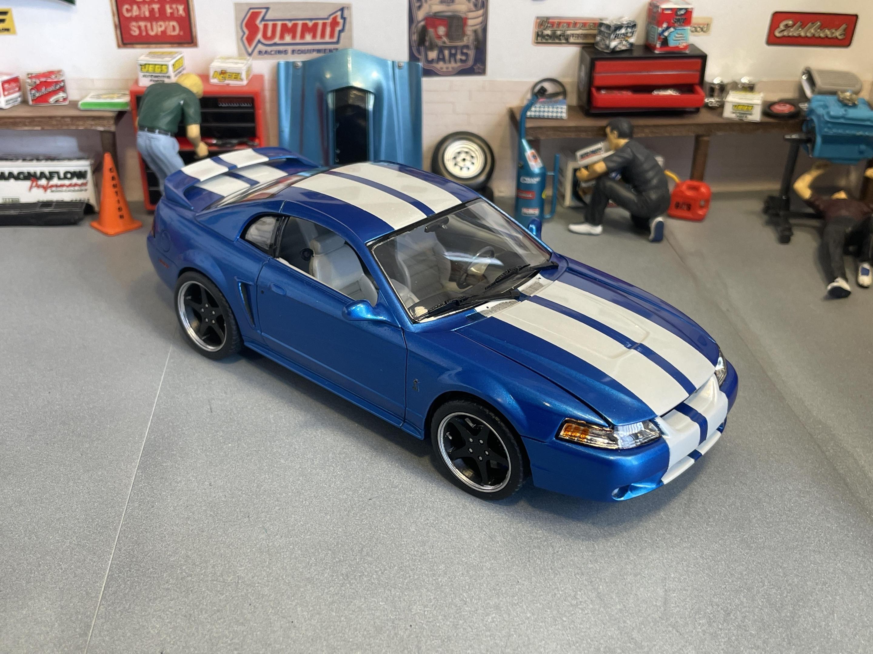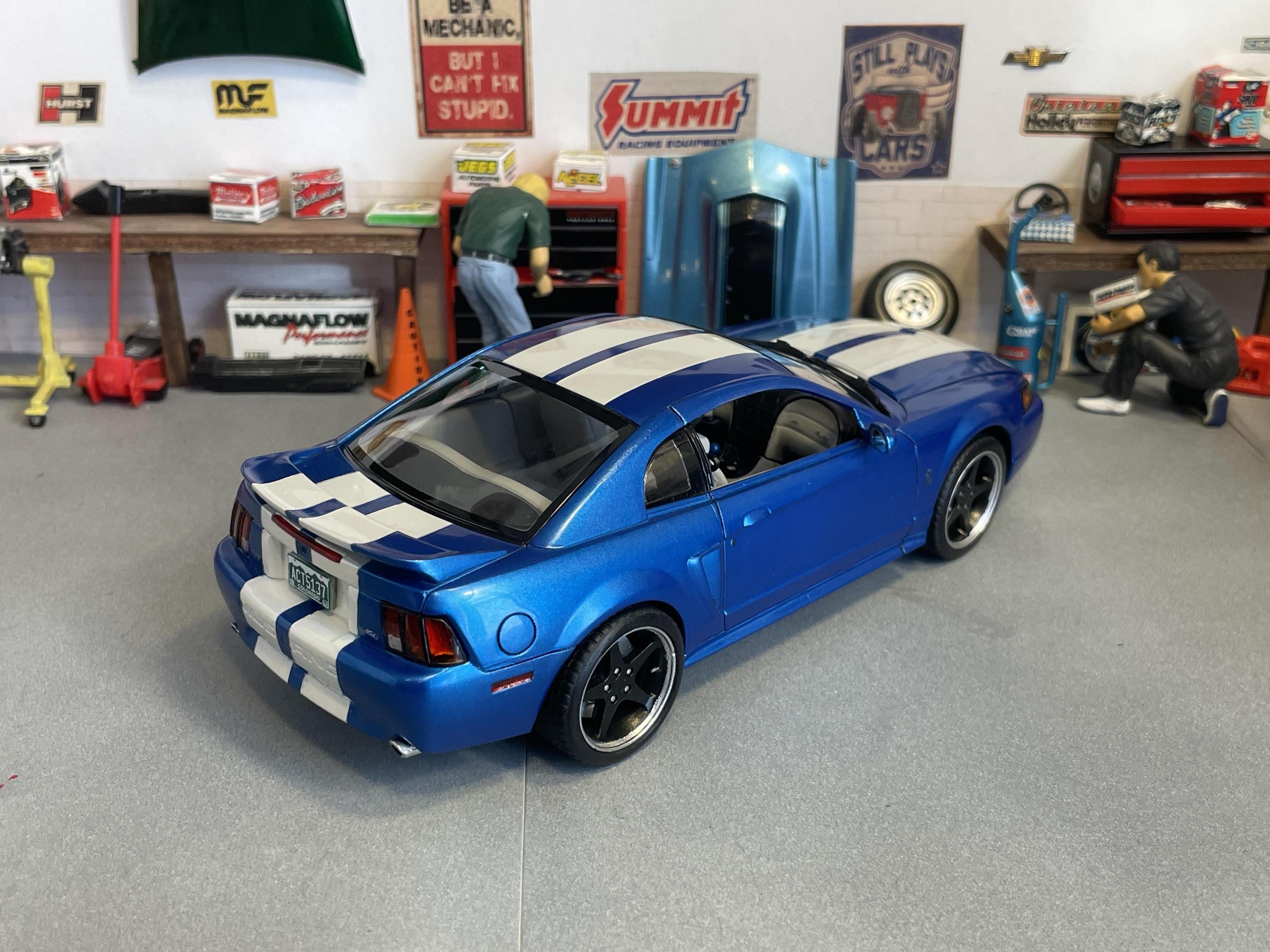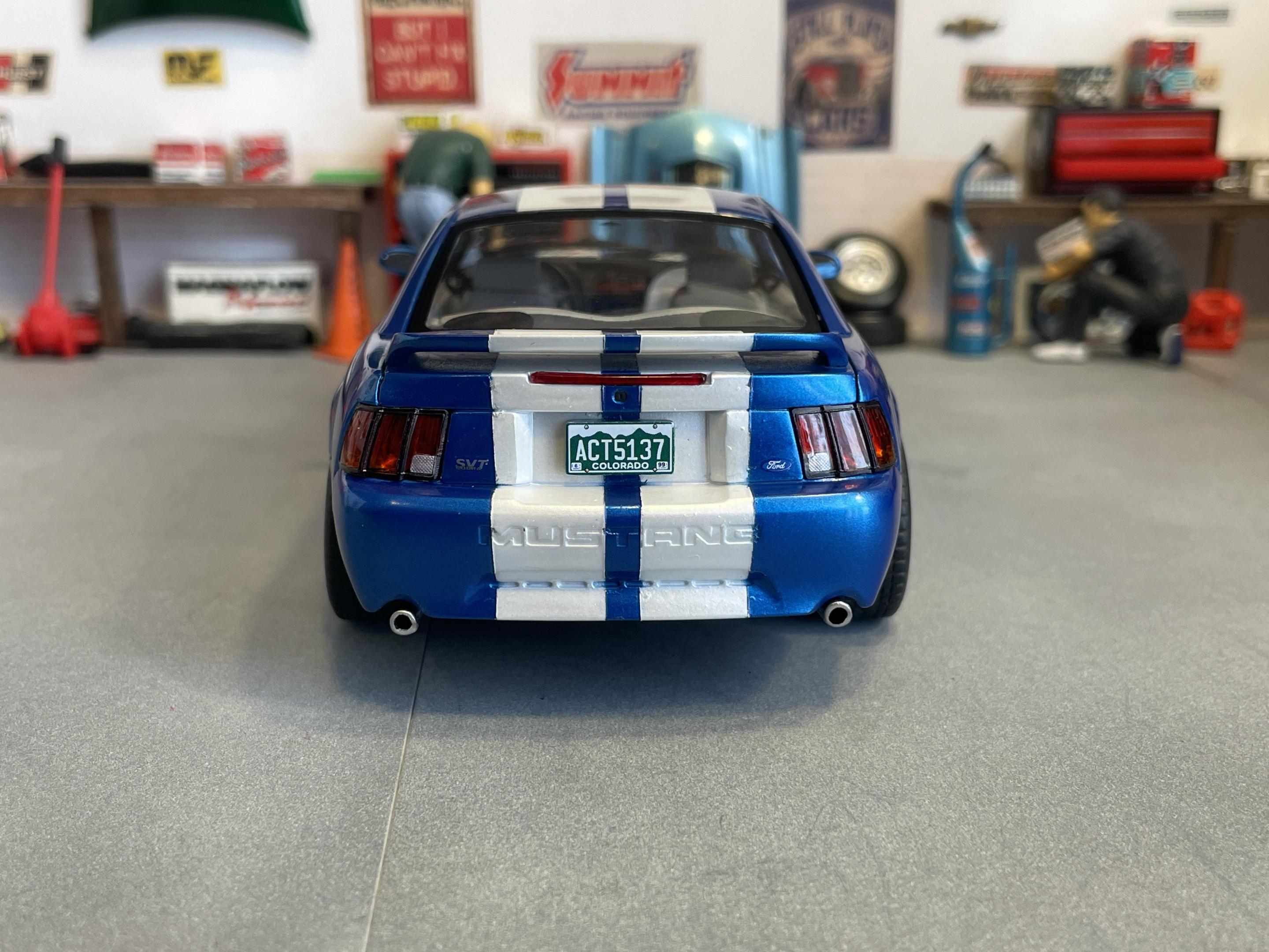 Here's my version of the Monogram '99 Mustang SVT Cobra. The paint is Createx Pearl Blue with Anita's Metallic White