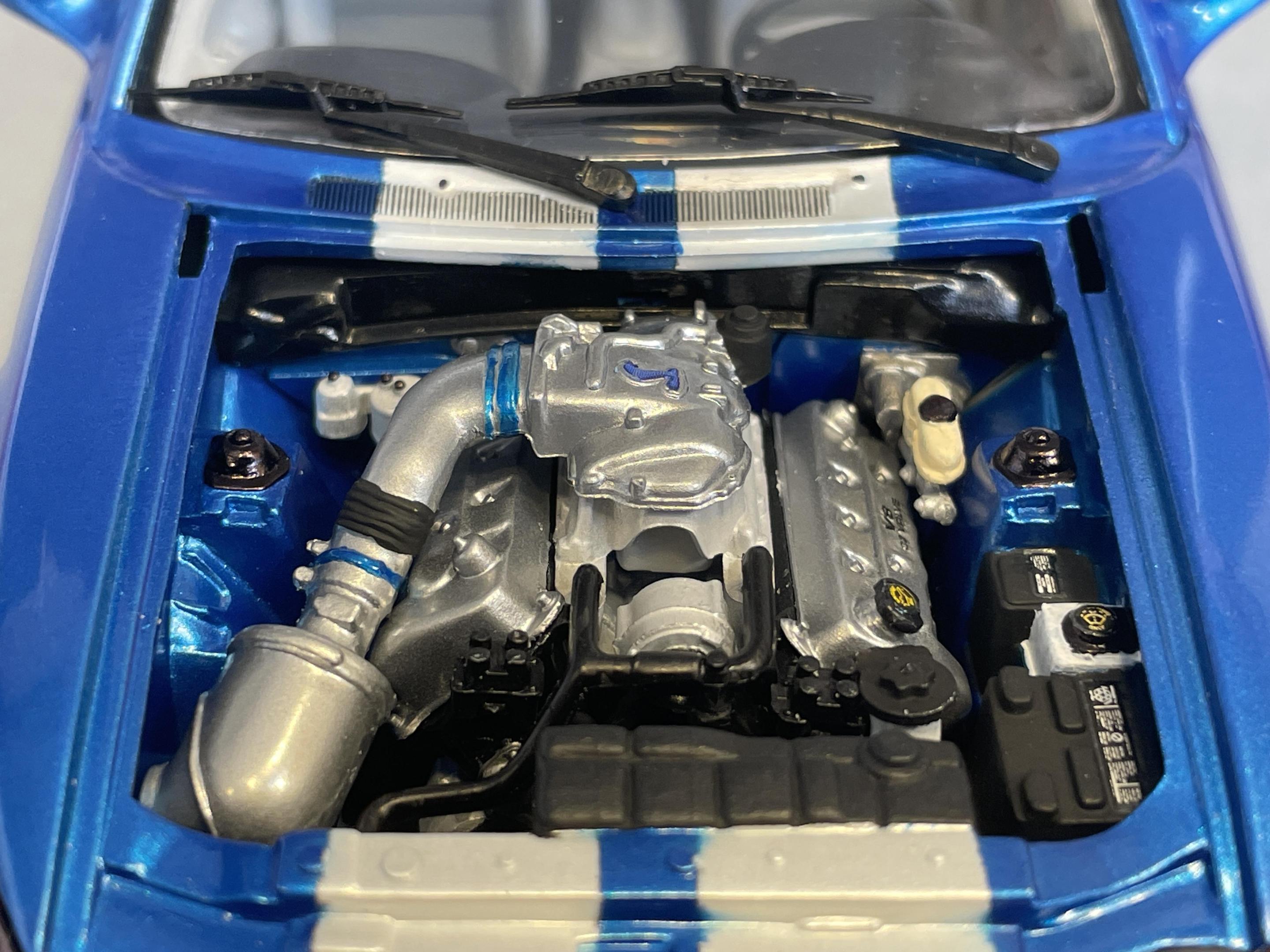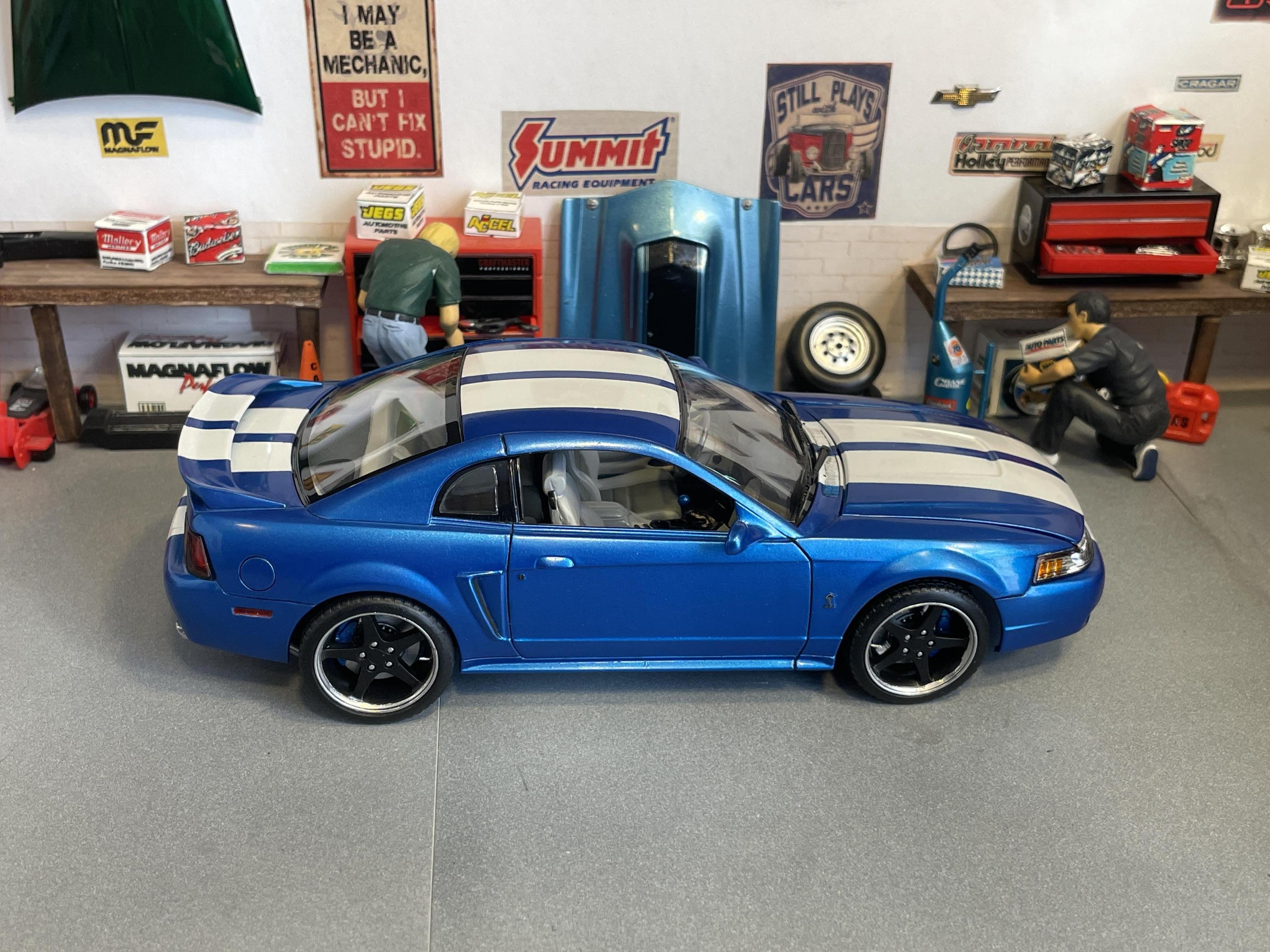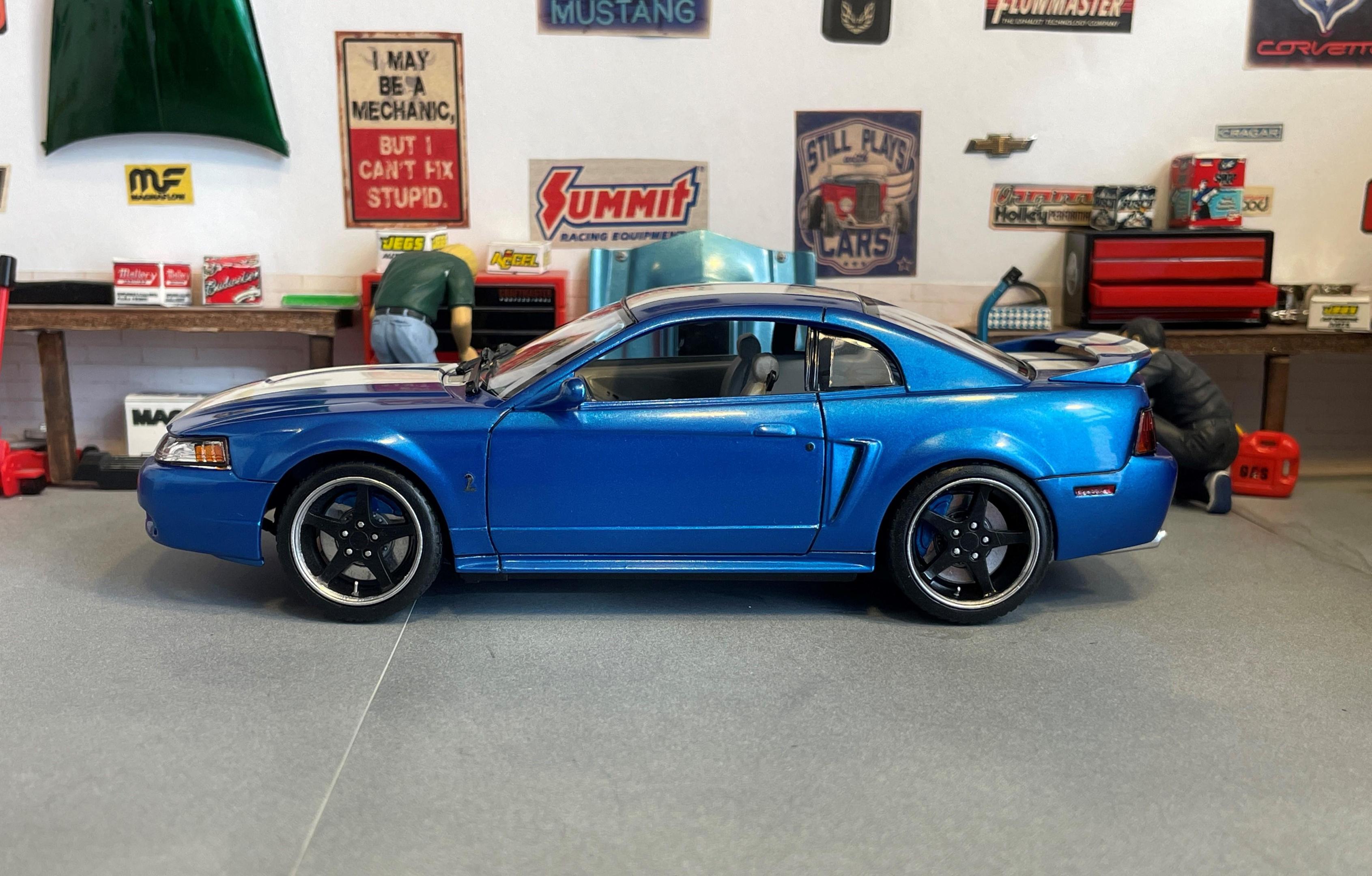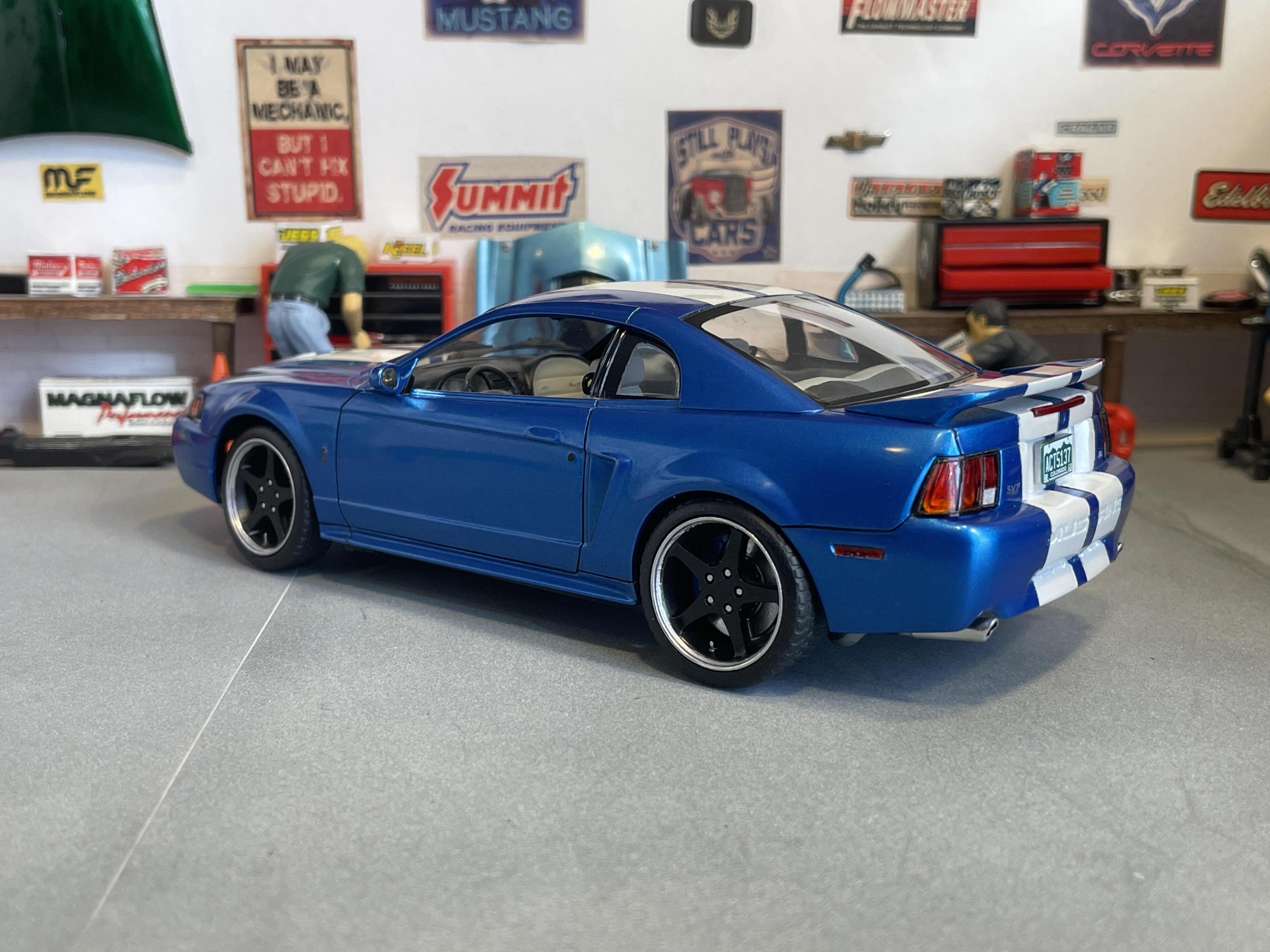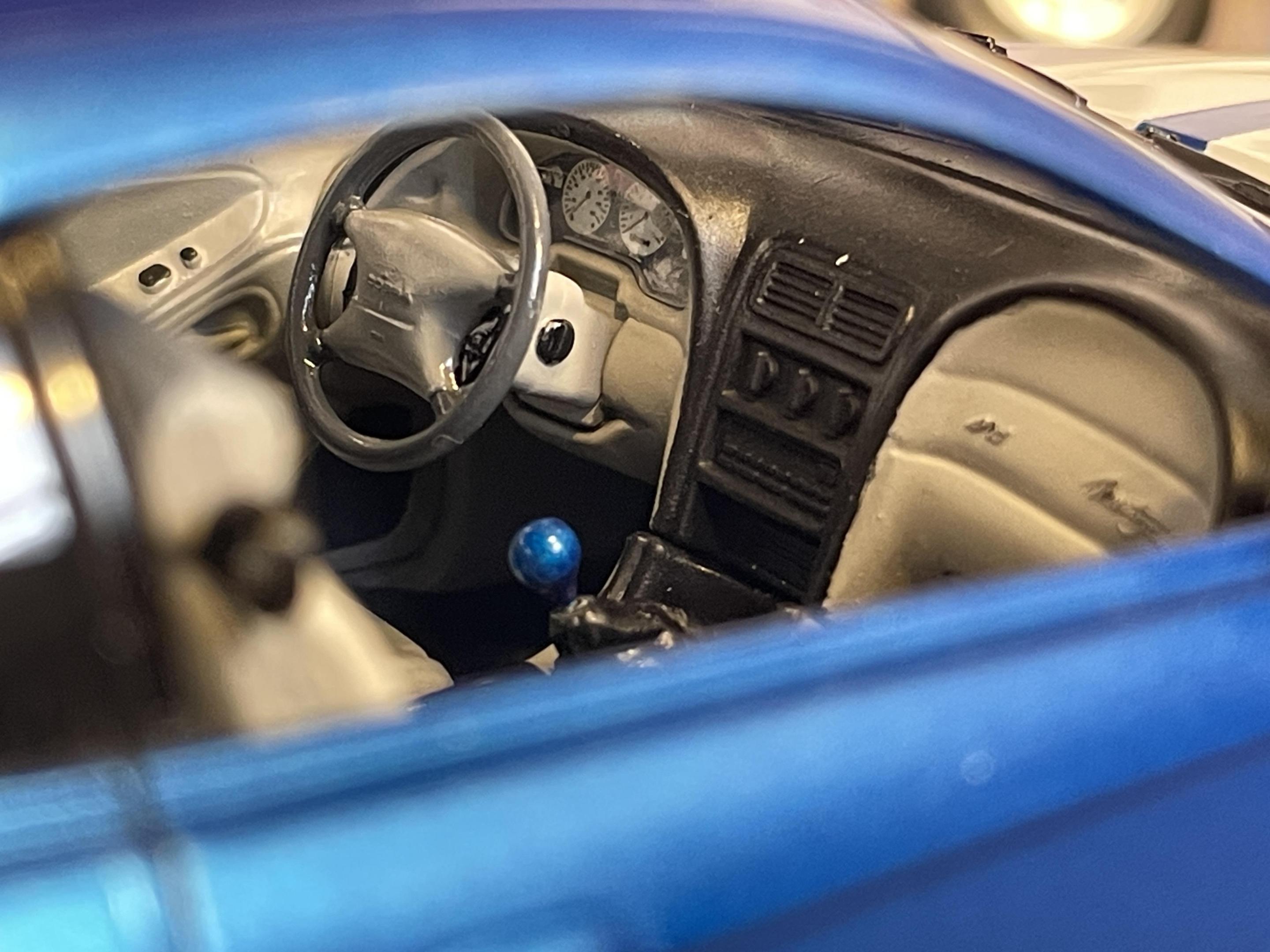 Here's my version of the Monogram '99 Mustang SVT Cobra. The paint is Createx Pearl Blue with Anita's Metallic White