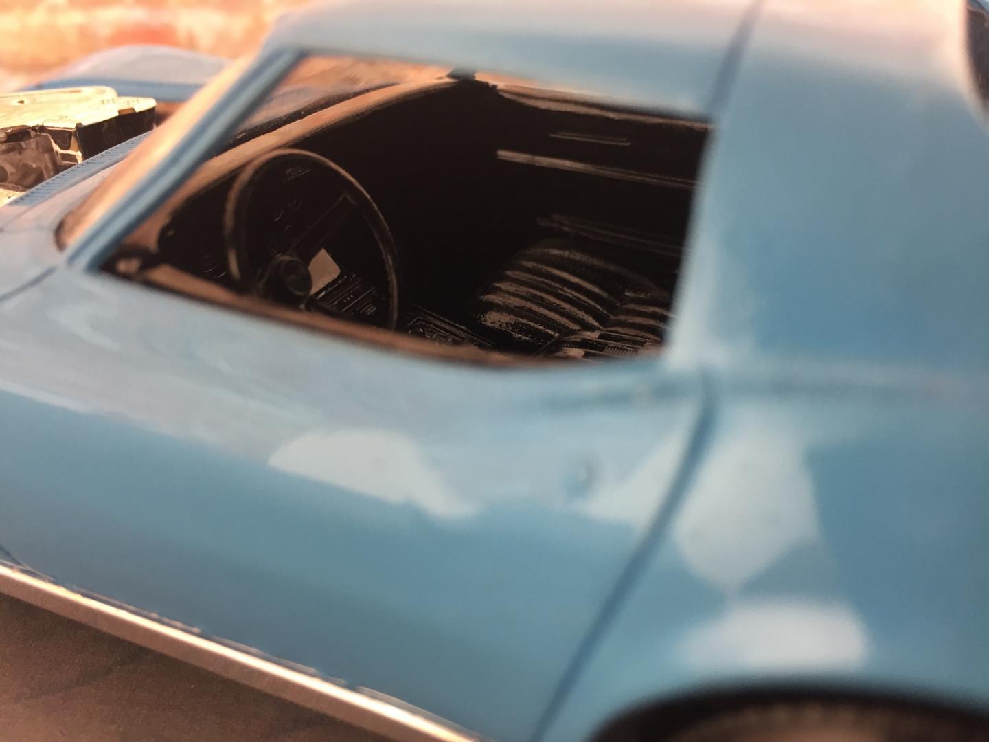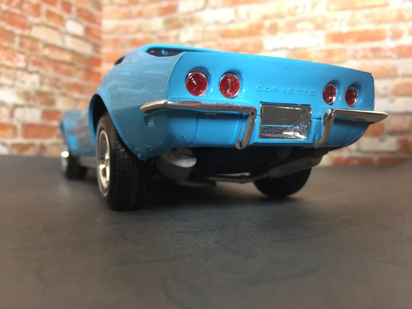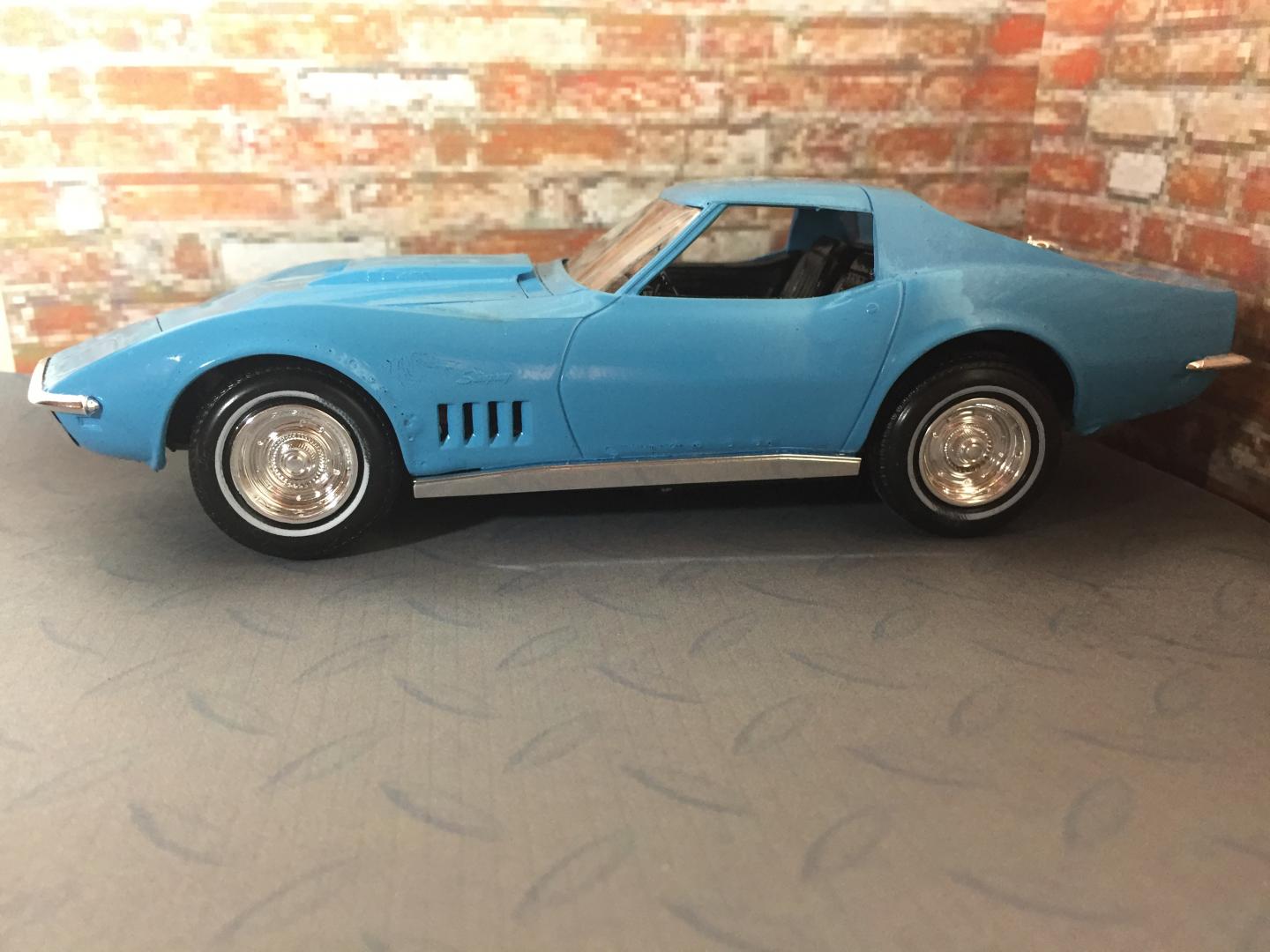 Here's my revell '69 stingray corvette with a 427 size engine. This is an older build of mine so it is not near the quality I would like, but I still take great pride in this as a part of me is invested. If anyone sees anything I could improve upon or do better please say something. I want to get better