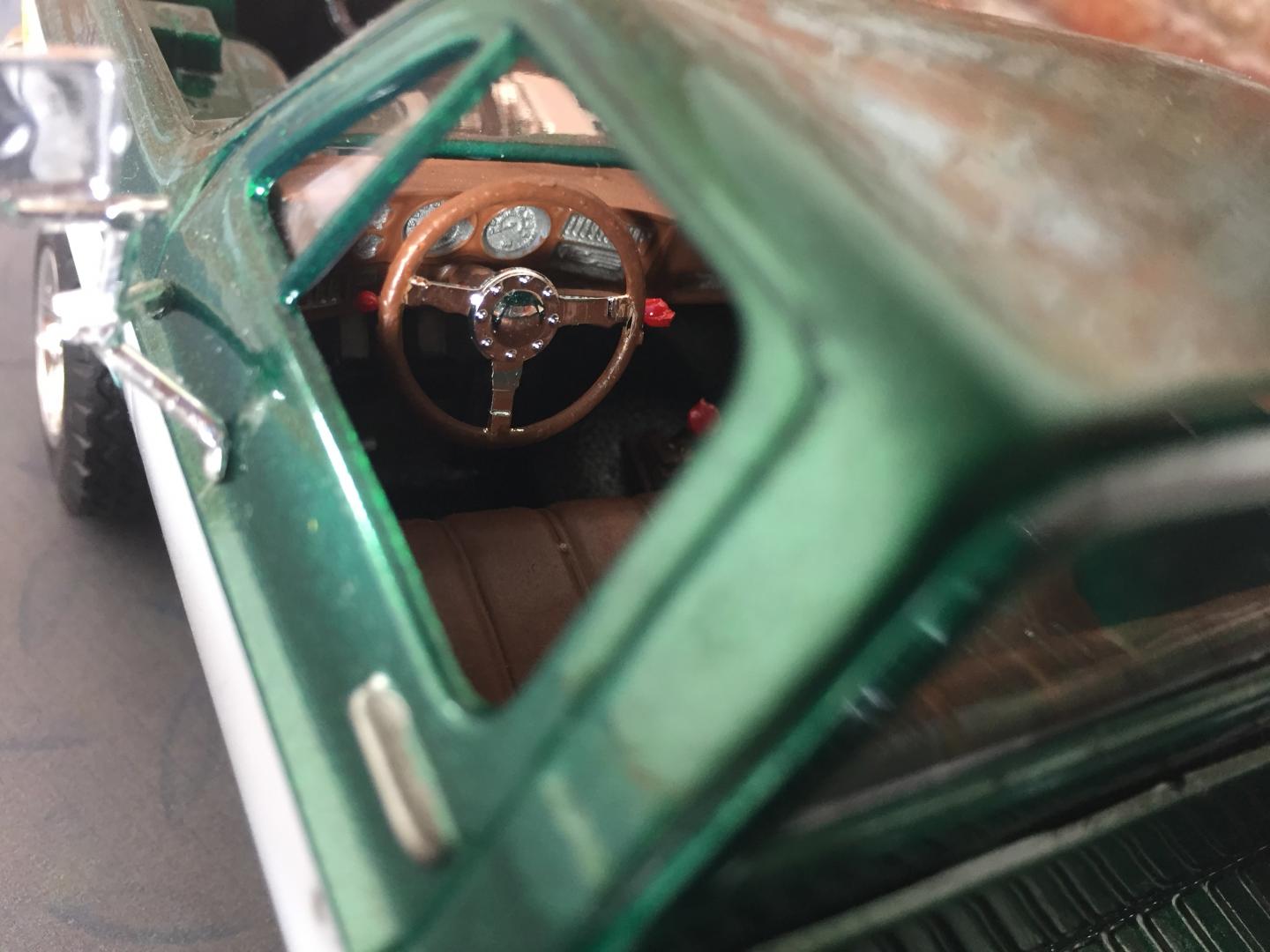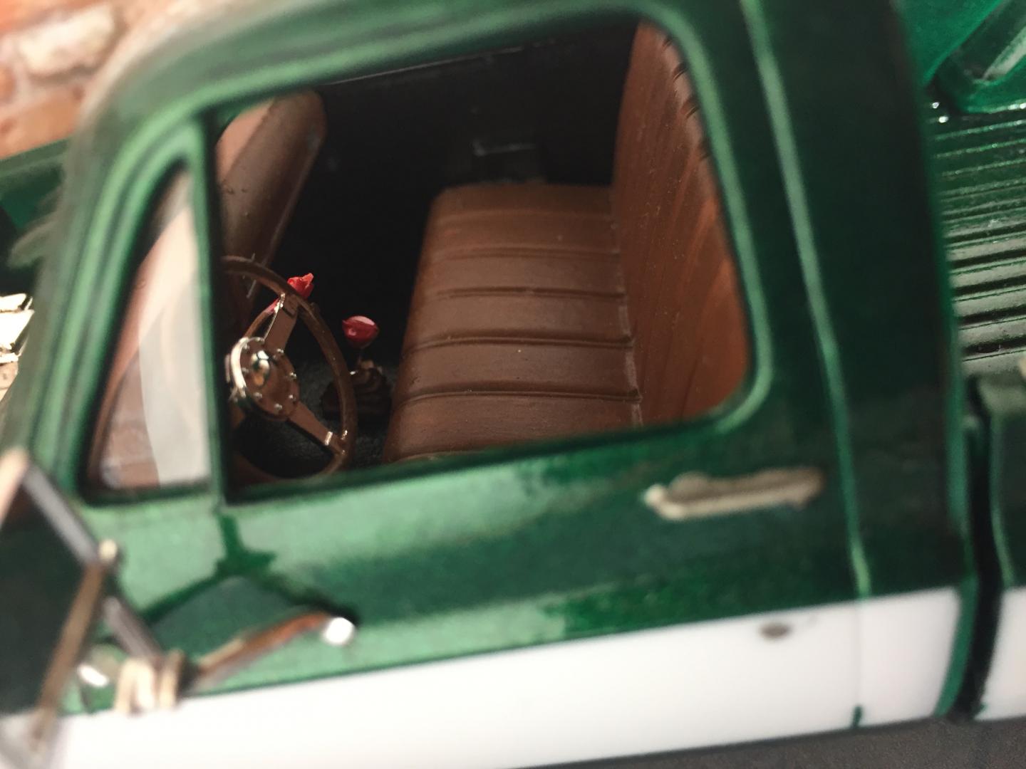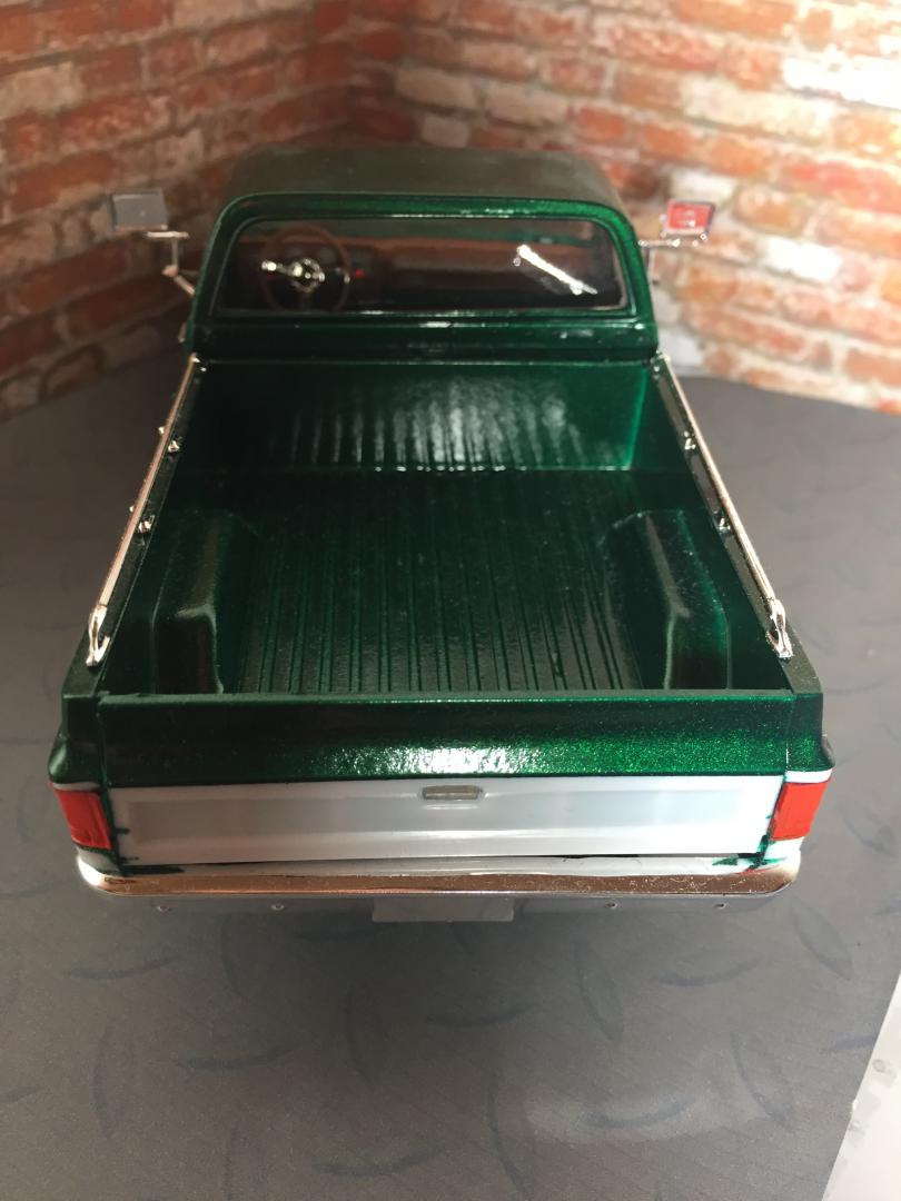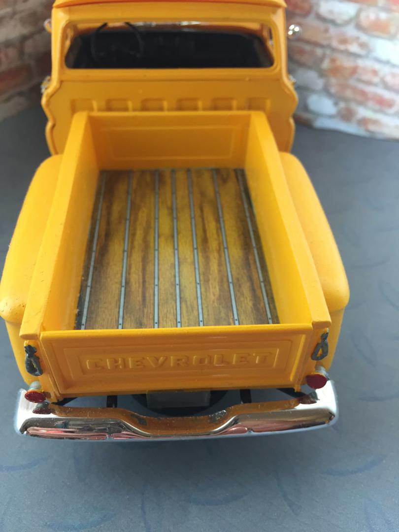 My '65 Chevy c-10 stepside. This was the second model car I ever built. I actually went back & redid a lot of the paint but as you can tell I'm sure, all of the glass is missing. Glue was smeared all over it so I thought it looked better without it. Very proud of this & I'm very happy that my builds have only gotten better as time has gone on